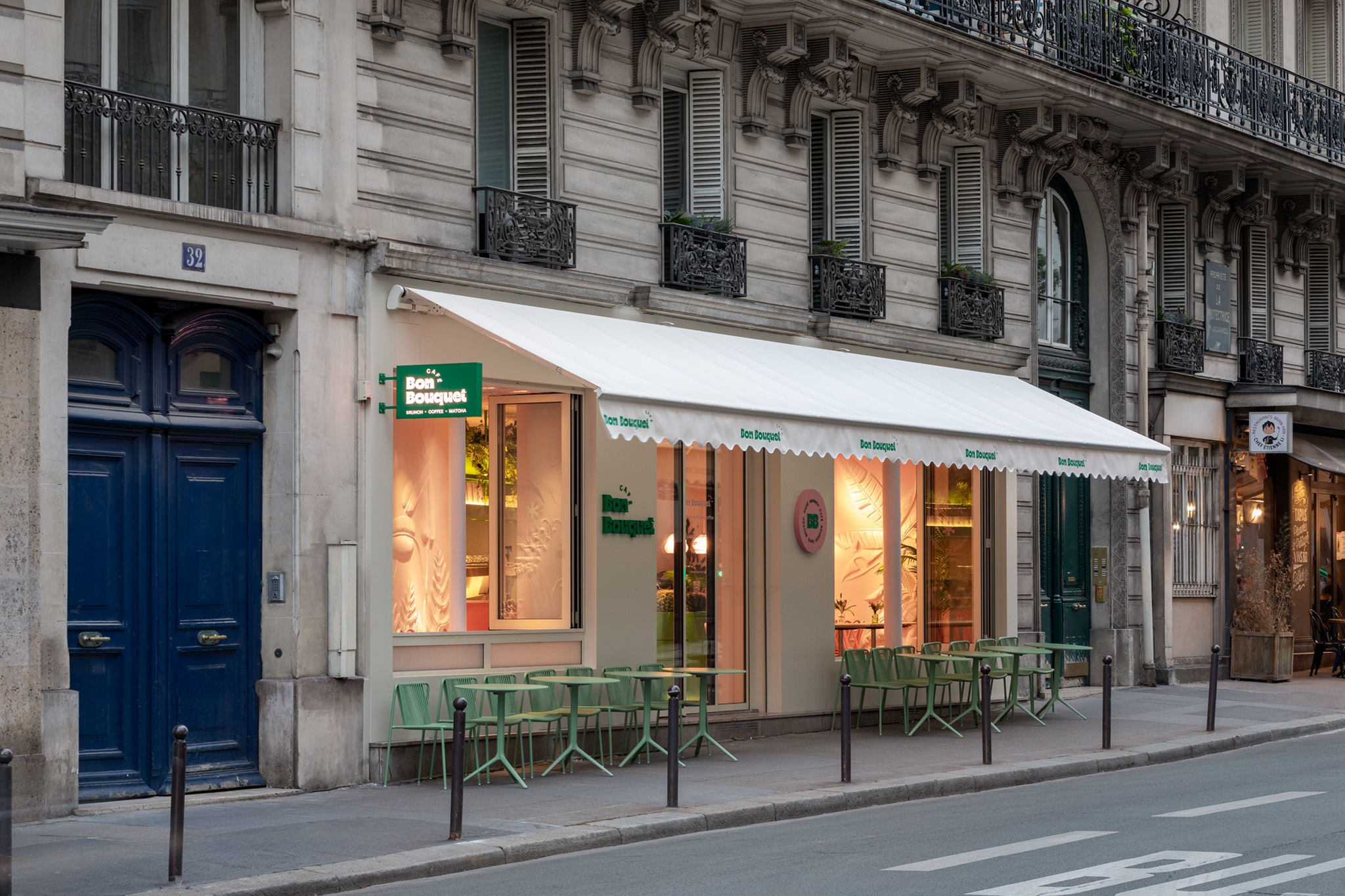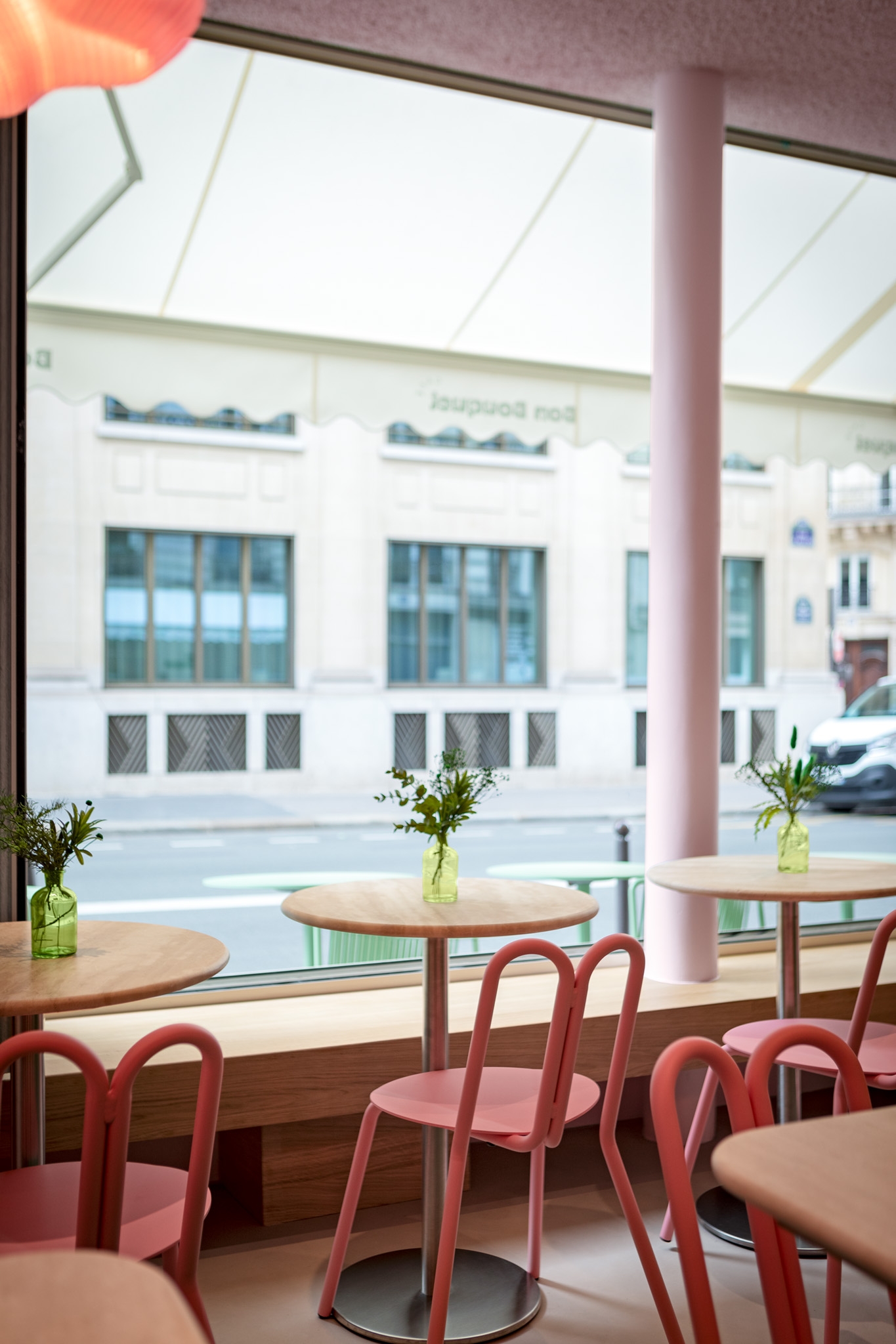 Between the Walls studio presents its second project in Paris — Bon Bouquet Cafe, a standout addition to The Hungry Family's portfolio. This café redefines Parisian aesthetics, replacing traditional elements with sleek, modern design. The exterior is calm and understated, but inside, vibrant pinks and bold features create a lively atmosphere.
