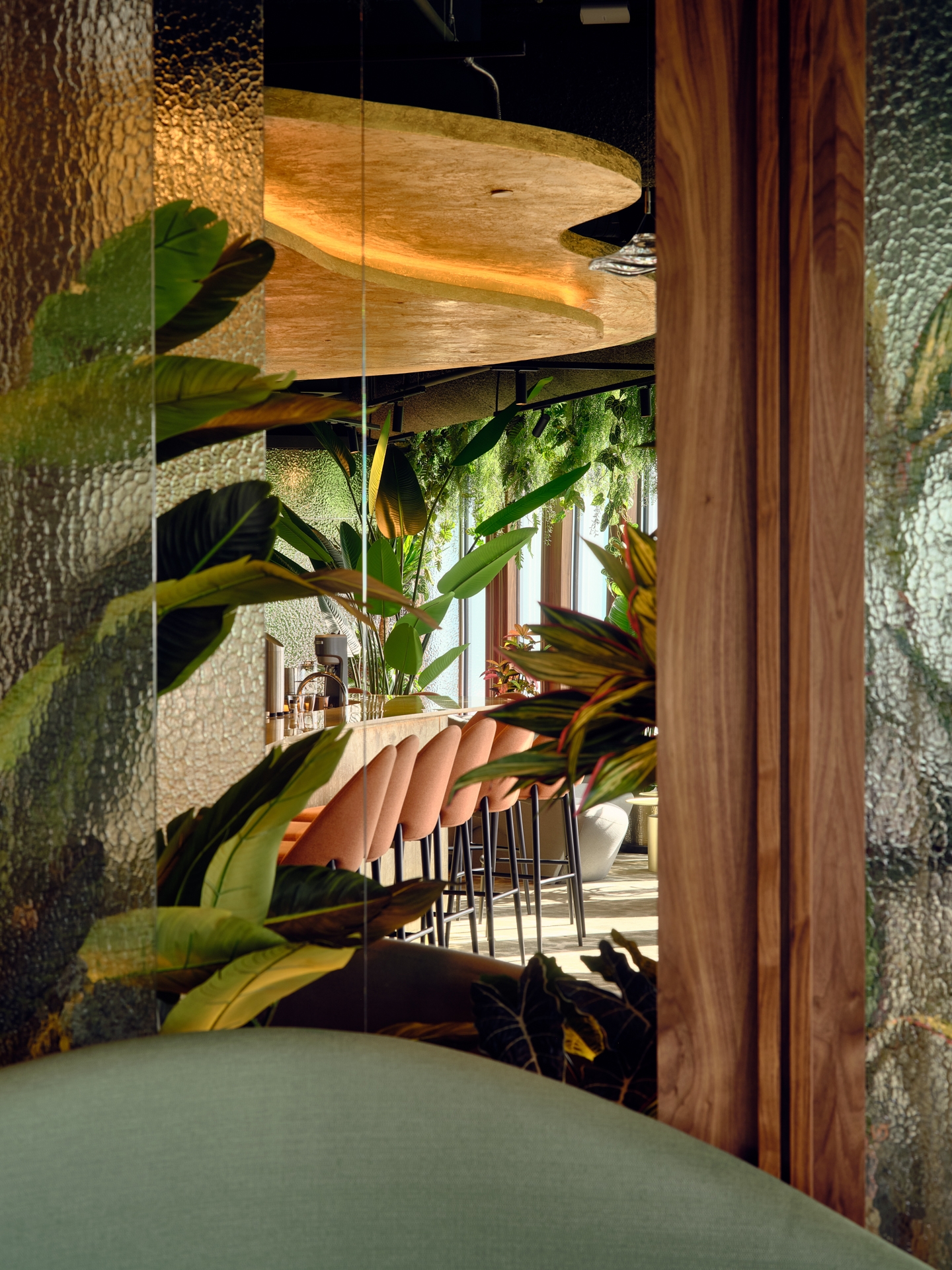 From the beginning, we understood that one of the main challenges would be ensuring the bar, typically the focal point of any cocktail bar, could stand out against the views.