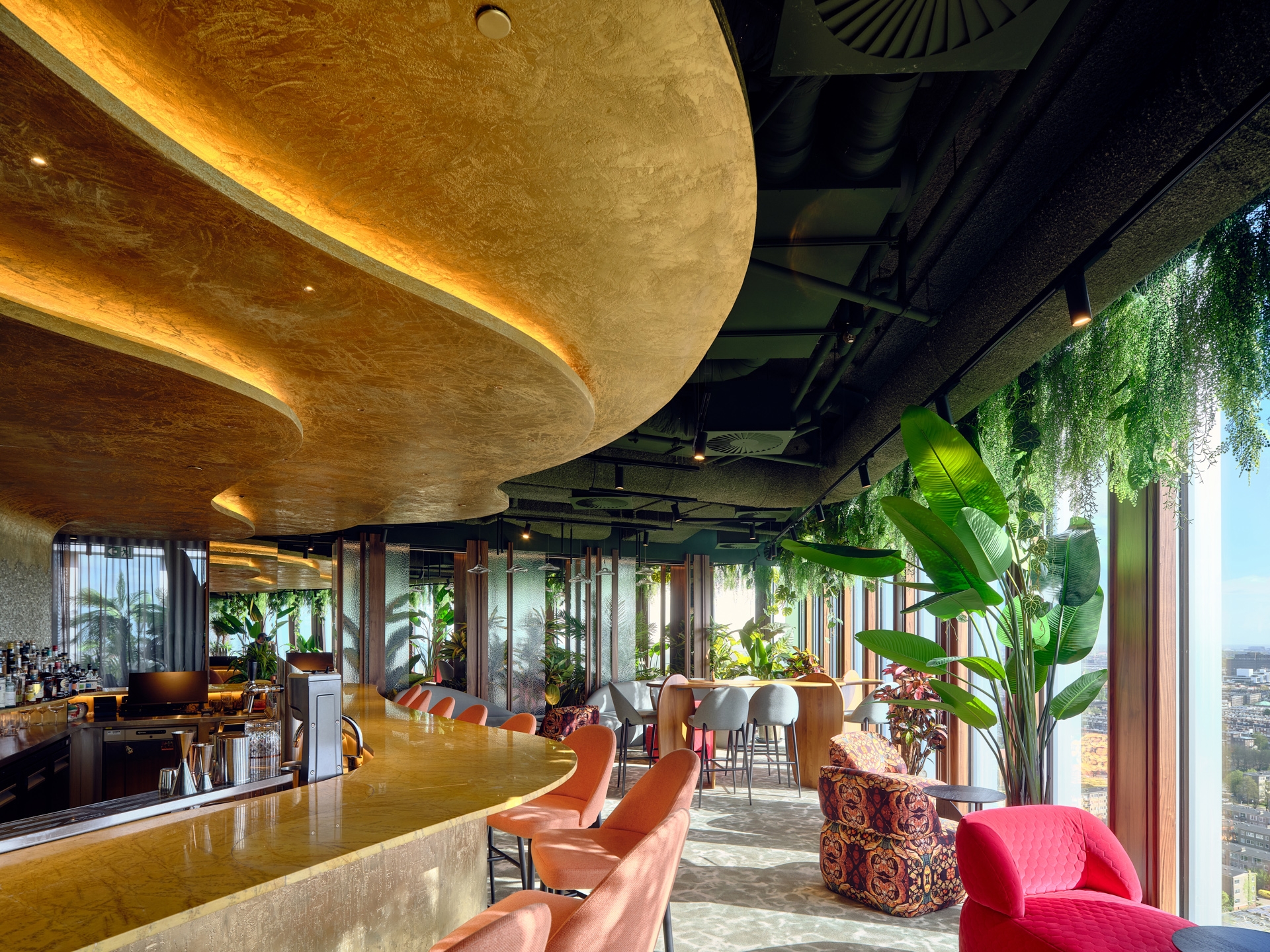 Perched on the top 24th floor of Nhow Hotel in Amsterdam, Sonora Cocktail Bar offers bold tropical cocktails inspired by Latin America, complementing its culinary counterpart, Selva restaurant, which shares the 24th floor in separate spaces.