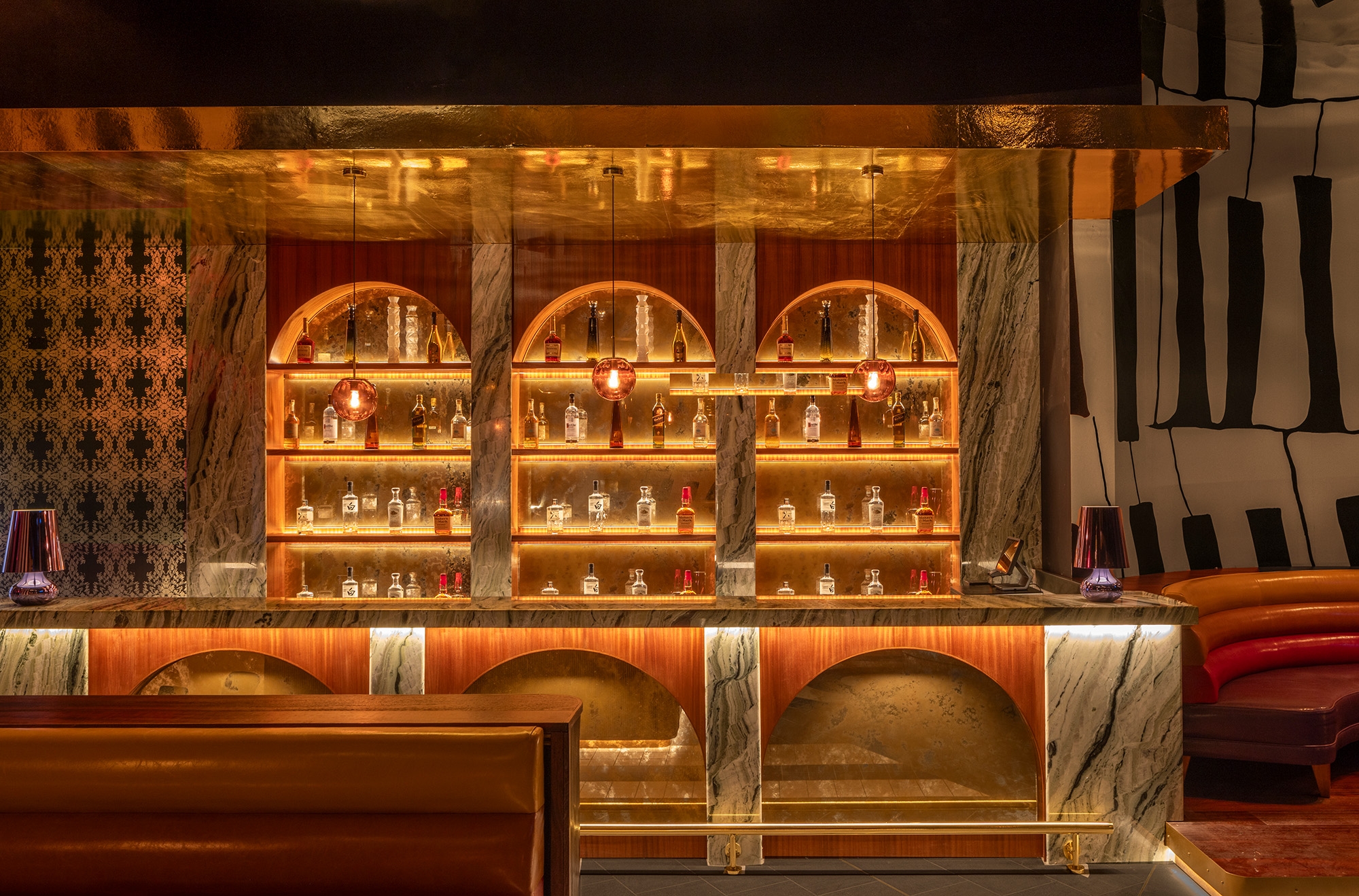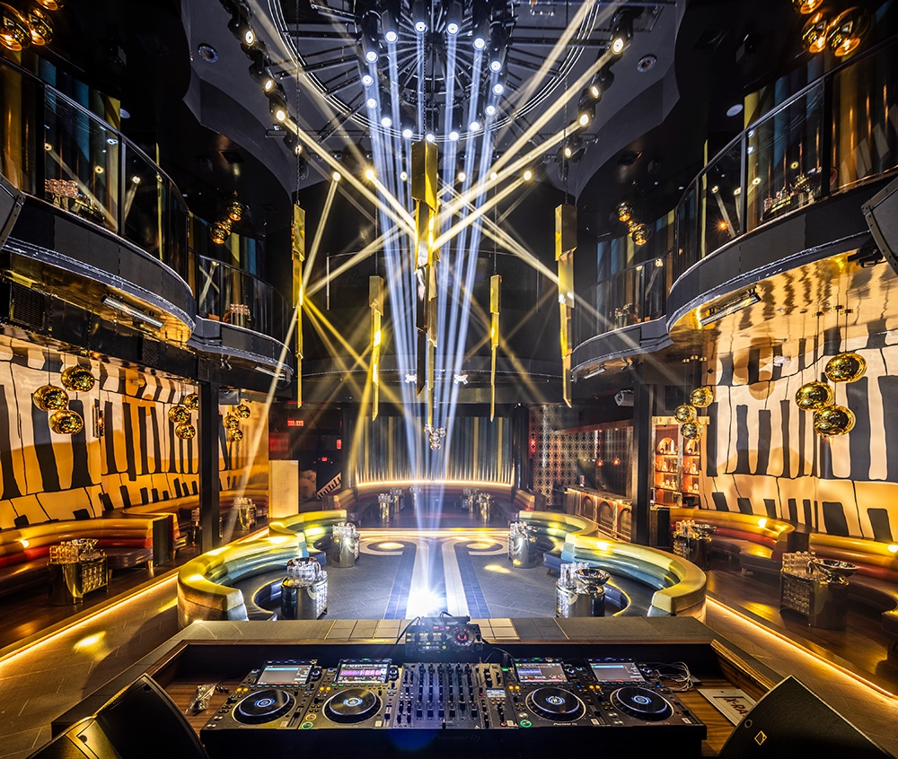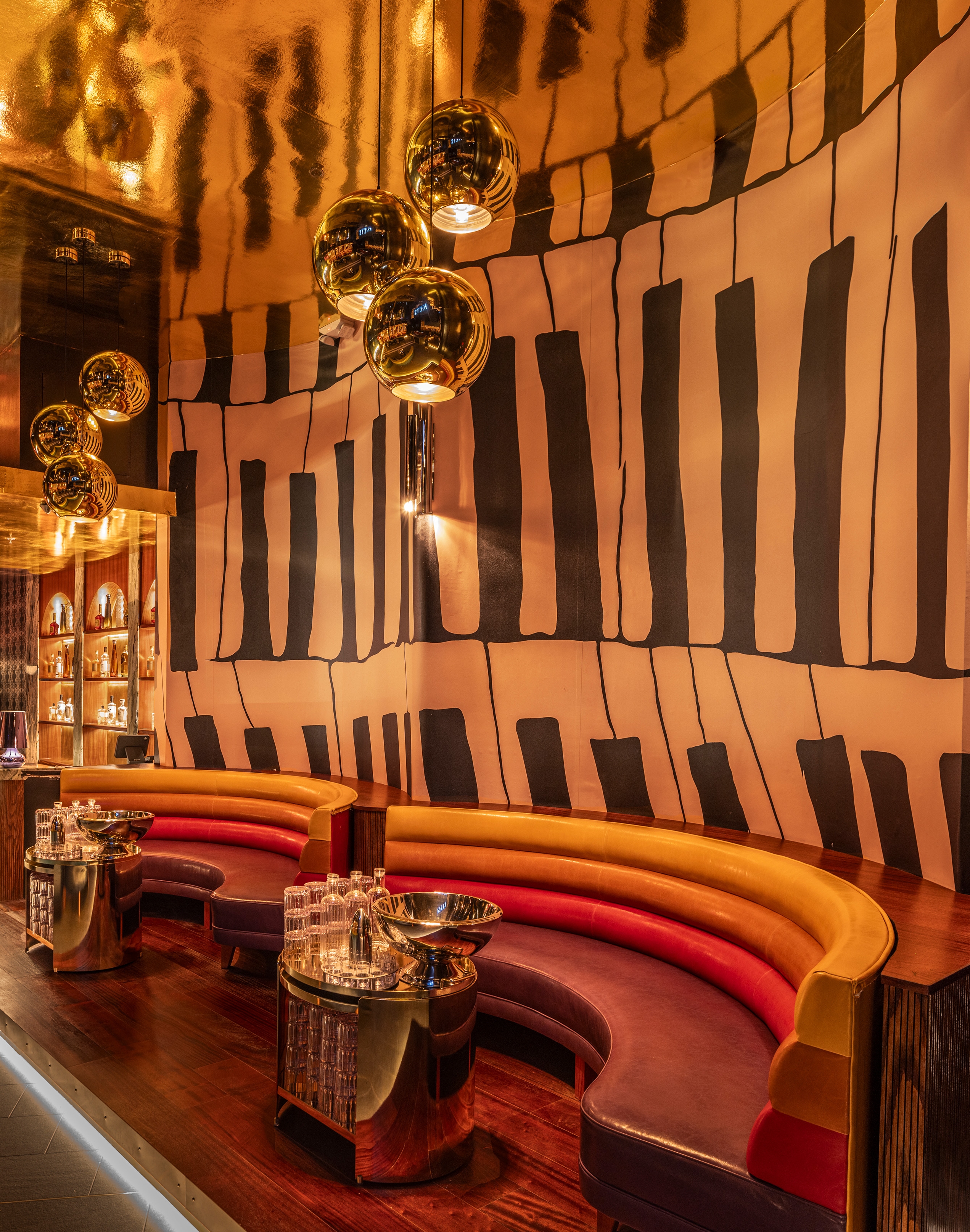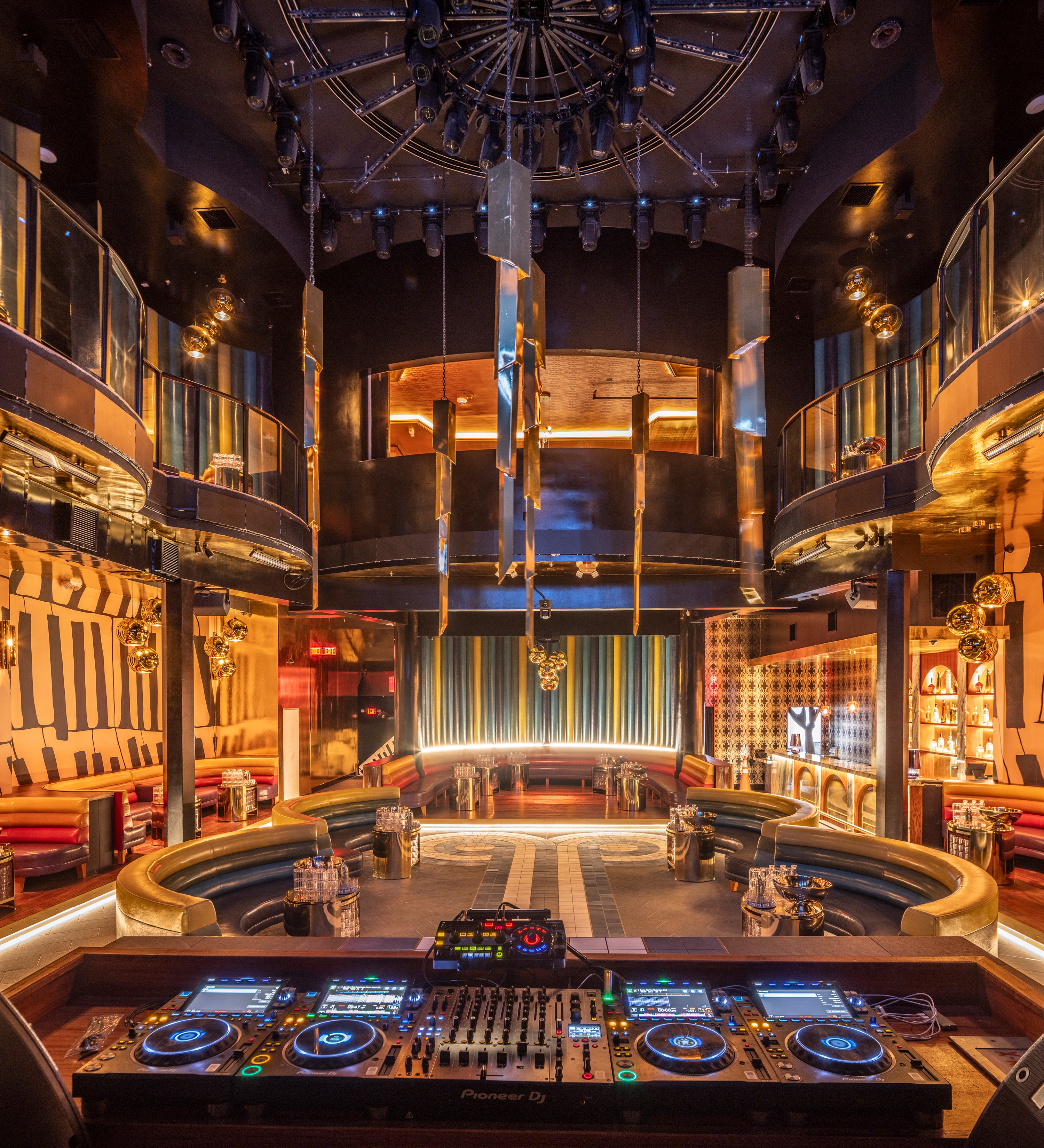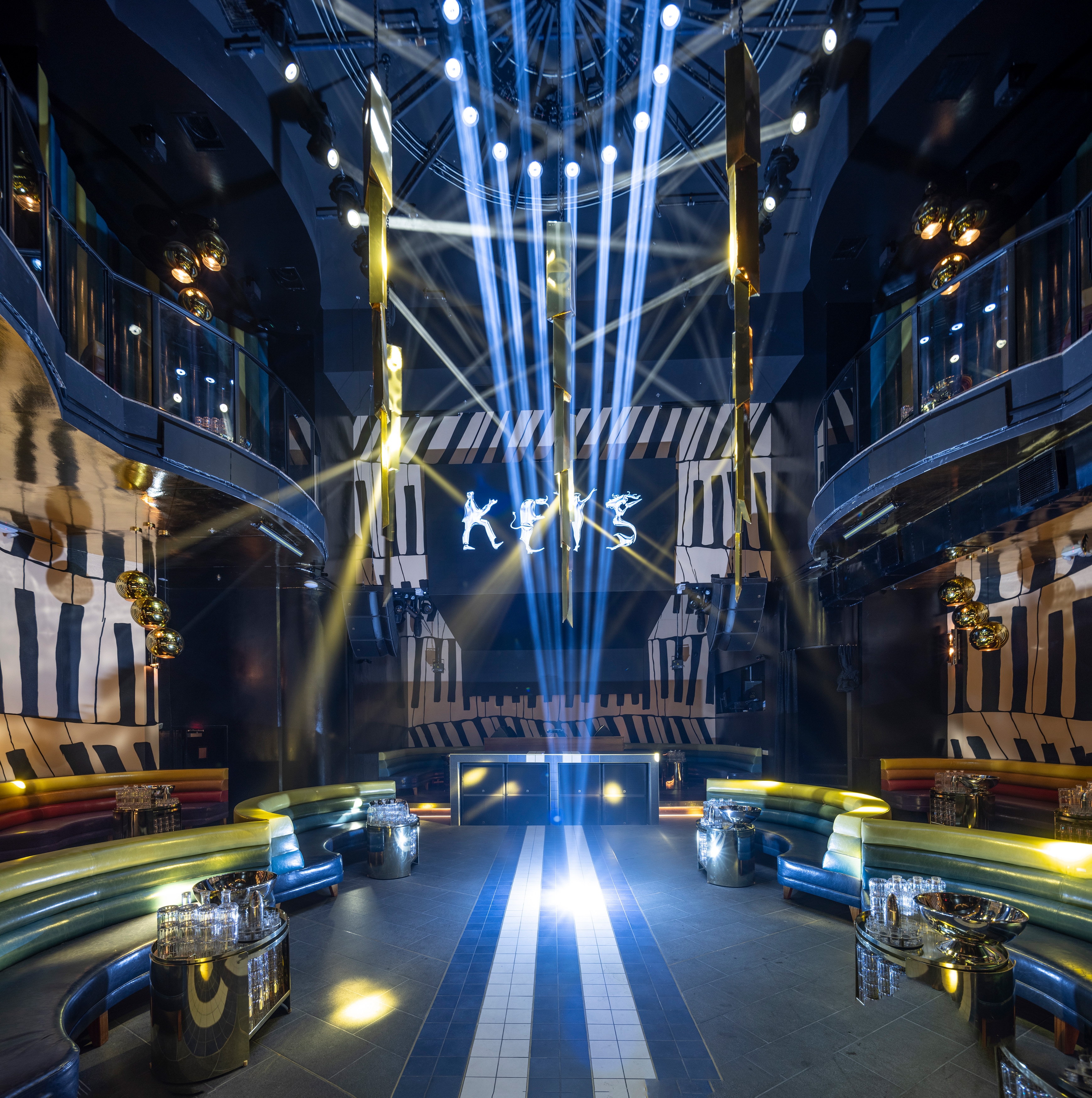An iconic element of Keys is the large-scale, theatrical piano keys wallpaper. Seen throughout the space, it creates an immersive experience for the guests.The LED screen at Keys is a large folded plane that drapes over the DJ booth in the main room. Super high res at 1.2mm, the magnetic LED panels enable insanely vibrant visuals throughout the night.