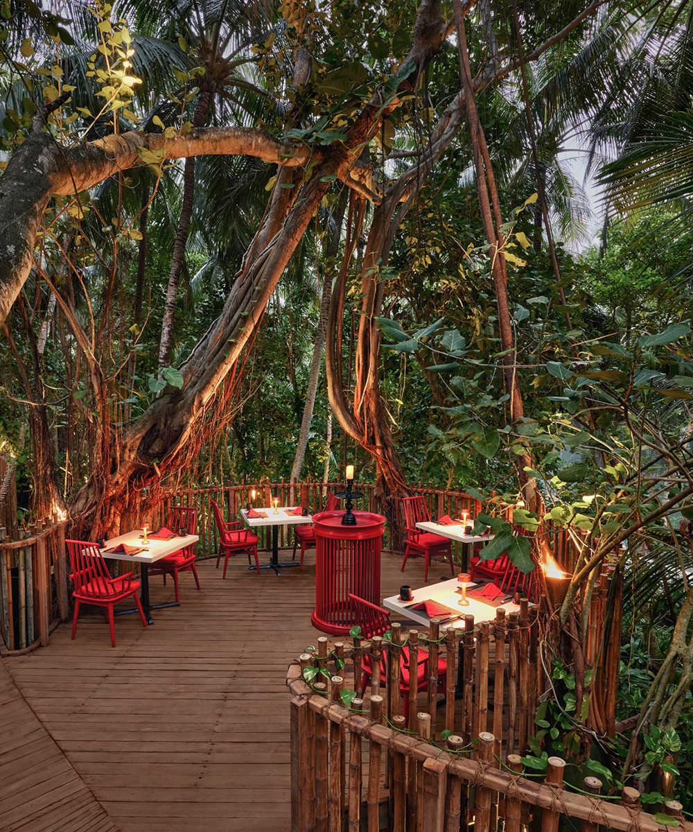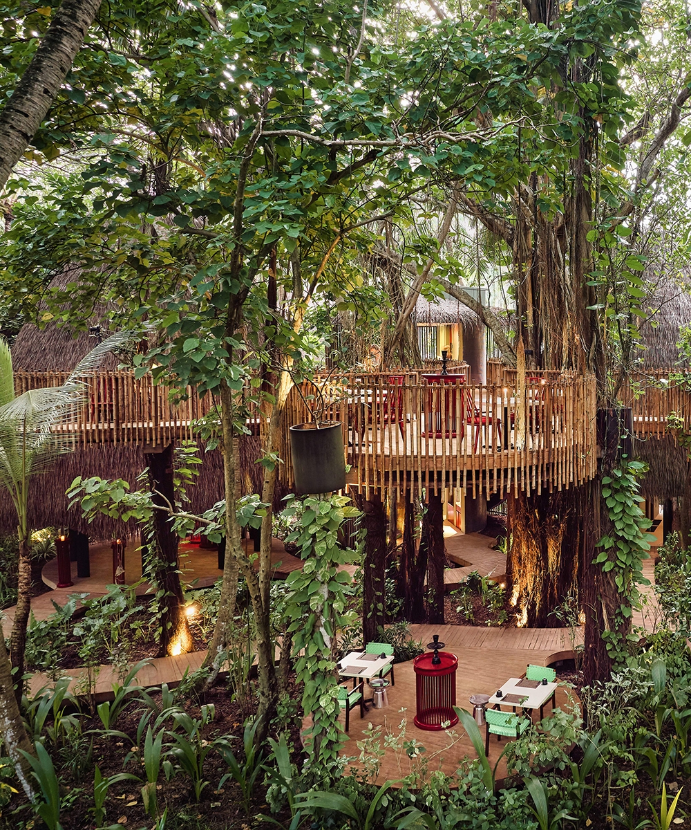 • Treehouse dining pods: Elevated pods provide an immersive dining experience high within the forest canopy • Sustainable materials: Bamboo, thatch, and wood integrate with the natural surroundings, reducing environmental impact • Asian Avant Garde culinary excellence: A diverse, curated menu draws inspiration from Asian flavors,fresh, seasonal, and local ingredients.