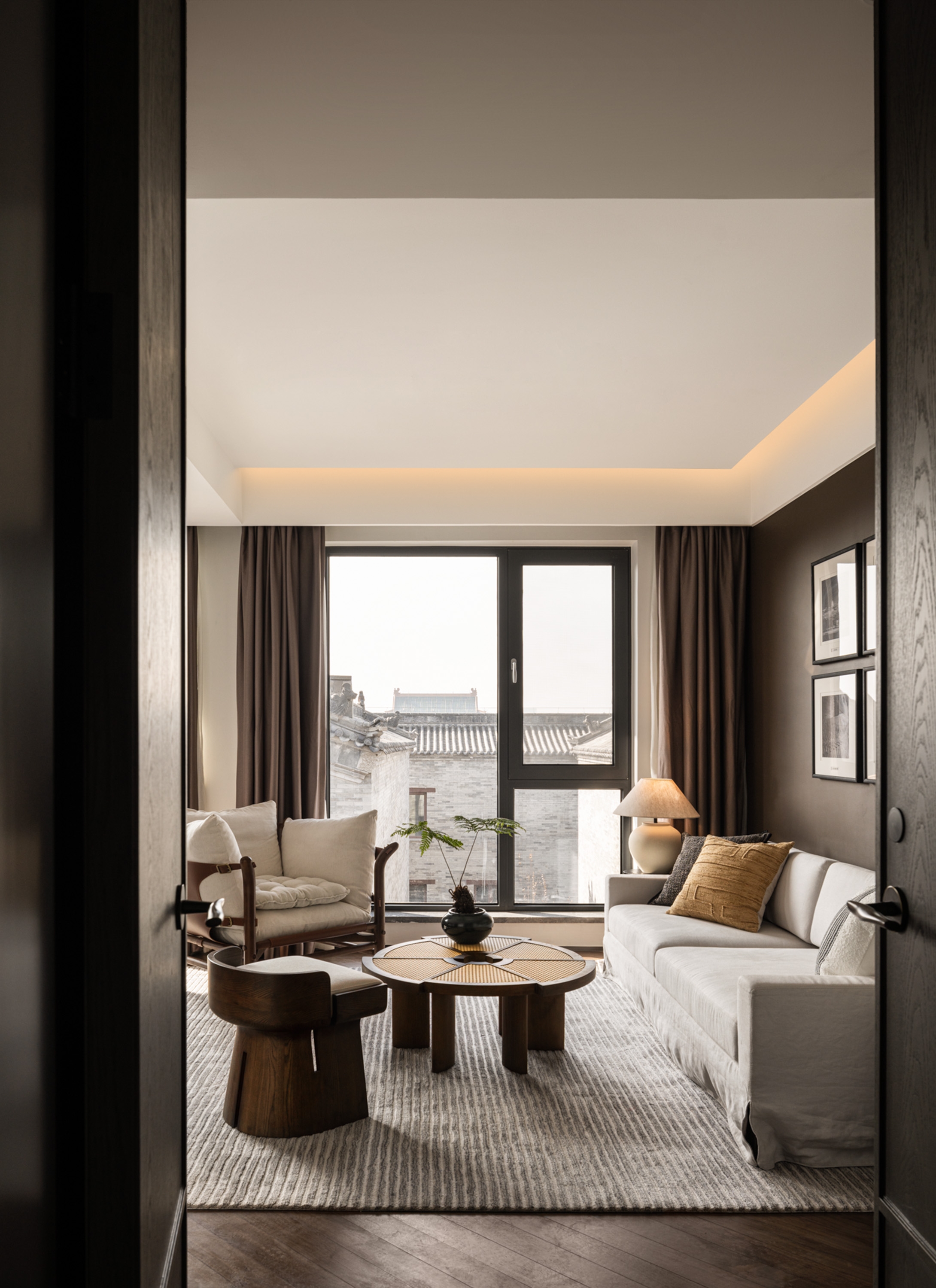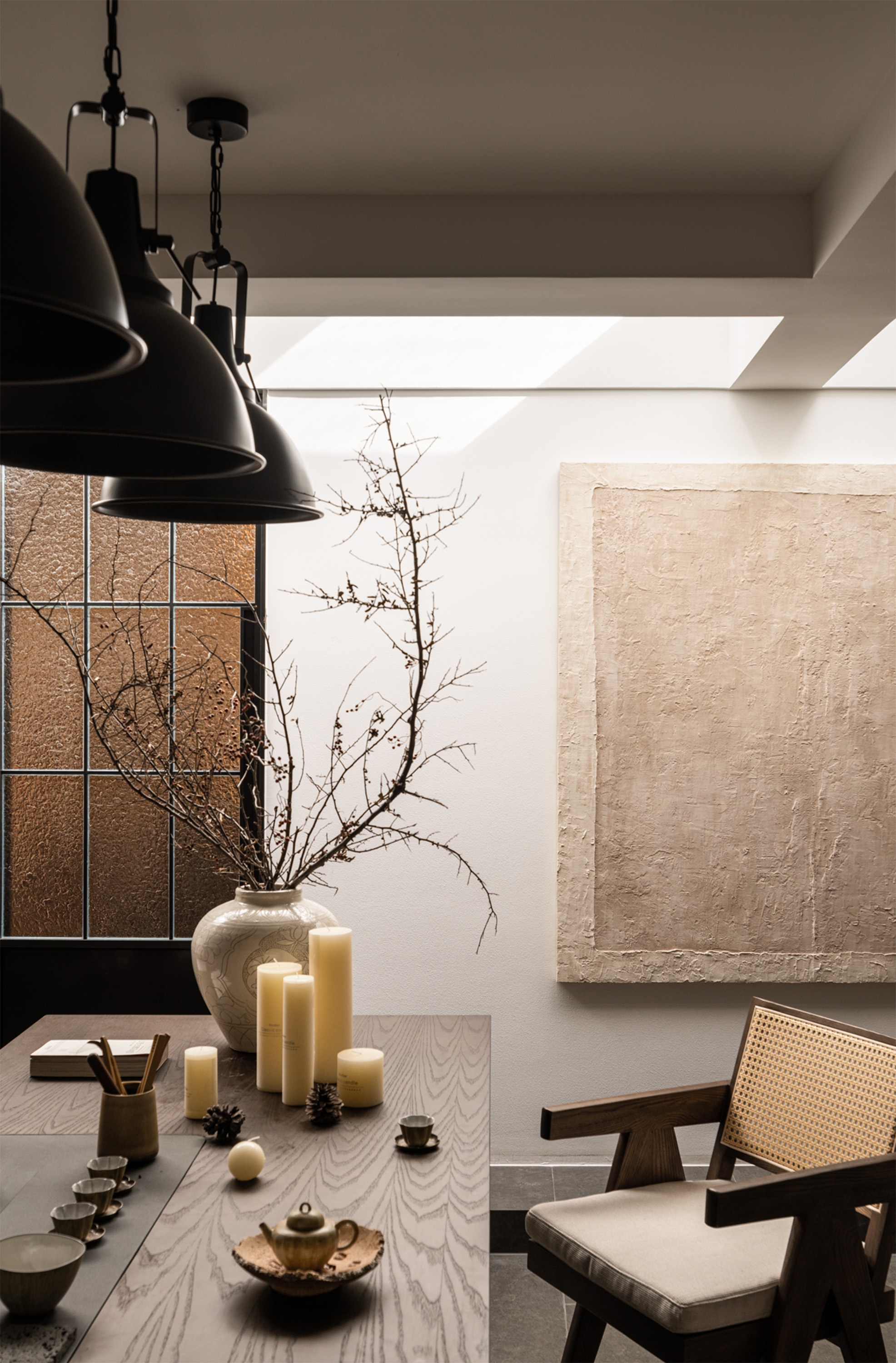 A high quality homesthouse must construct the structural beauty of the space, and the sense of design and order are the means of constructing and organizing the space, thus generating the sequence, proportion, rhythm and primary and secondary of the space. But the sense of design is not our purpose, too deliberately emphasize it, and will make the space produce not relaxed and too deliberate feeling, which runs counter to the sense of relaxation. Therefore, in Mu Qingchen's design, the external expression of the sense of design is weakened, the order control as a means is hidden, and it becomes a kind of "internal force", if there is no appearance, it can be transformed in the atmosphere of material, color, light and shadow changes, creating a relaxed, quiet, elegant and peaceful sense of relaxation.