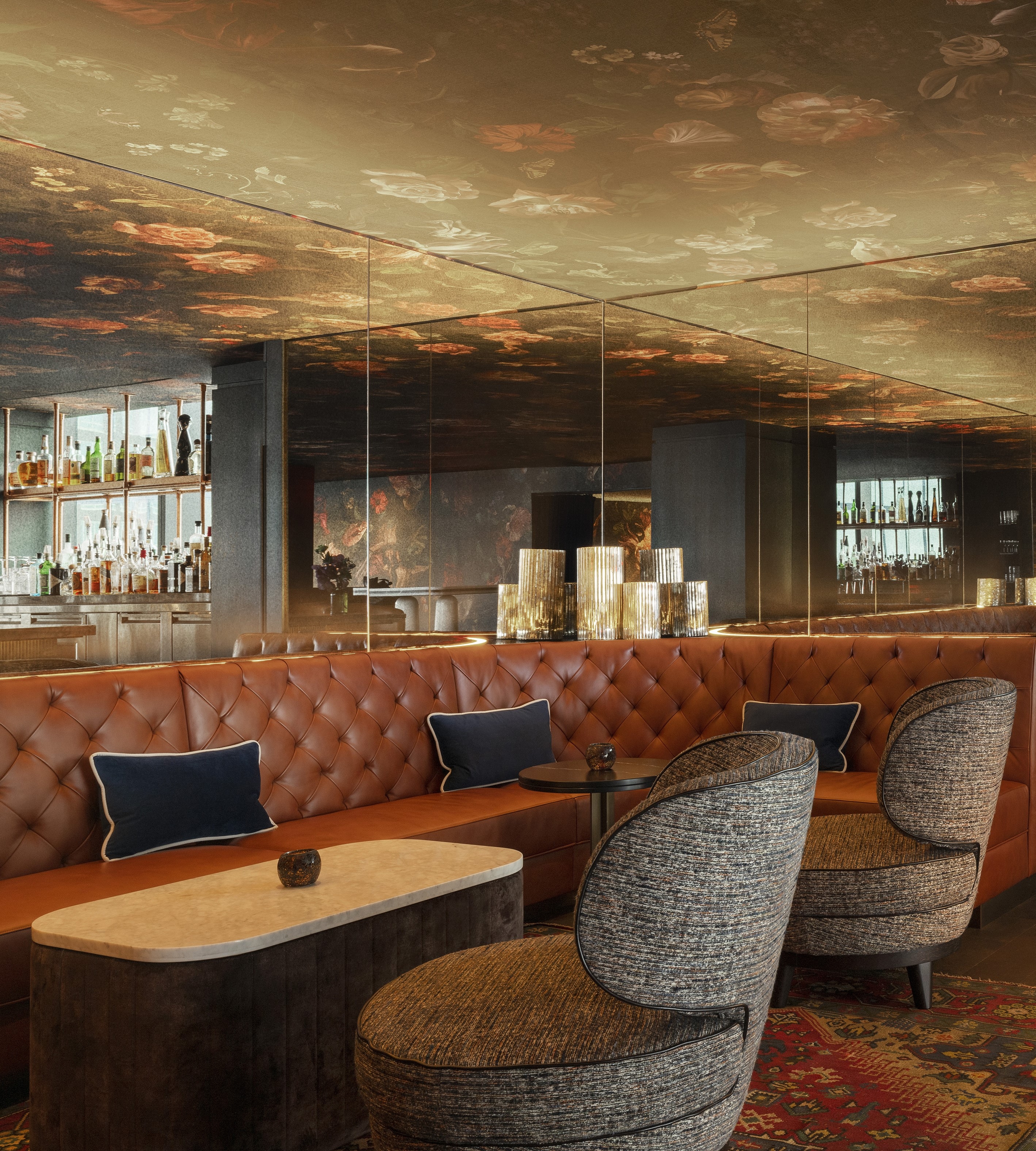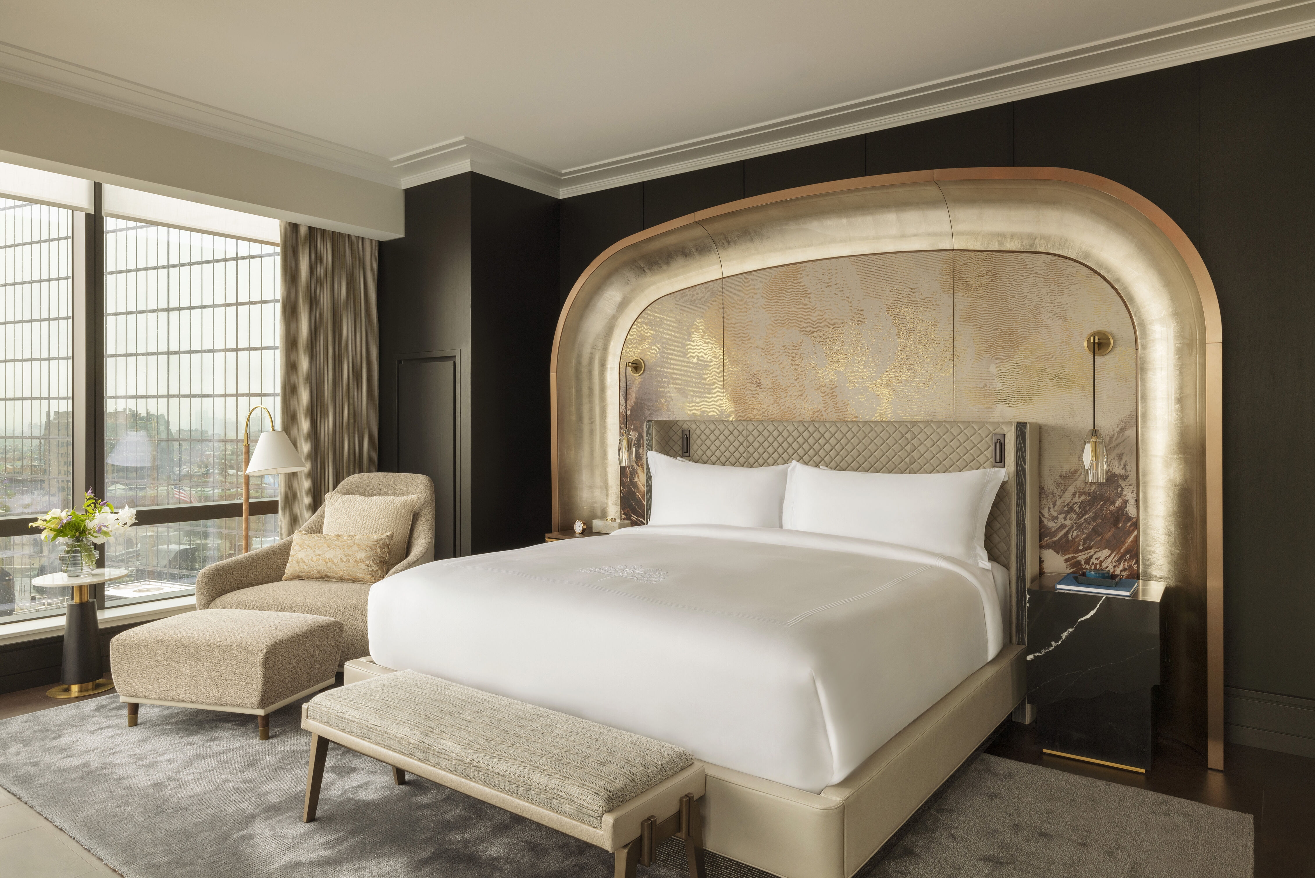 Raffles Boston introduces the brand to North America and brings the finest hotel rooms to the Boston hospitality landscape. The hotel’s interior is comprised of a three-story Sky Lobby, terrace, and public spaces including a patisserie, special-occasion restaurant, and two-story speakeasy designed by Stonehill Taylor. The hotel's design draws inspiration from Boston's botanical gardens, Harvard University’s Arnold Arboretum, and the historic Revere Copper Company while also embracing the overarching eclecticism found throughout the Raffles brand. Luxury extends to the guest rooms featuring crystal bedside lamps, glass mirror-backed vitrine minibars, hardwood floors with copper accents, and custom floral bathroom murals. The garden suites are a vibrant conservatory; guests enter through a deep green vestibule and are greeted with a botanically inspired space. The remaining suites are centered around curated art and furnishing collections composed of works from local artists. The presidential suite represents the height of luxury and functionality, complete with an expansive wood paneled living room, a dining and kitchen area, platinum-leafed gold headboard, and full marble bathroom.