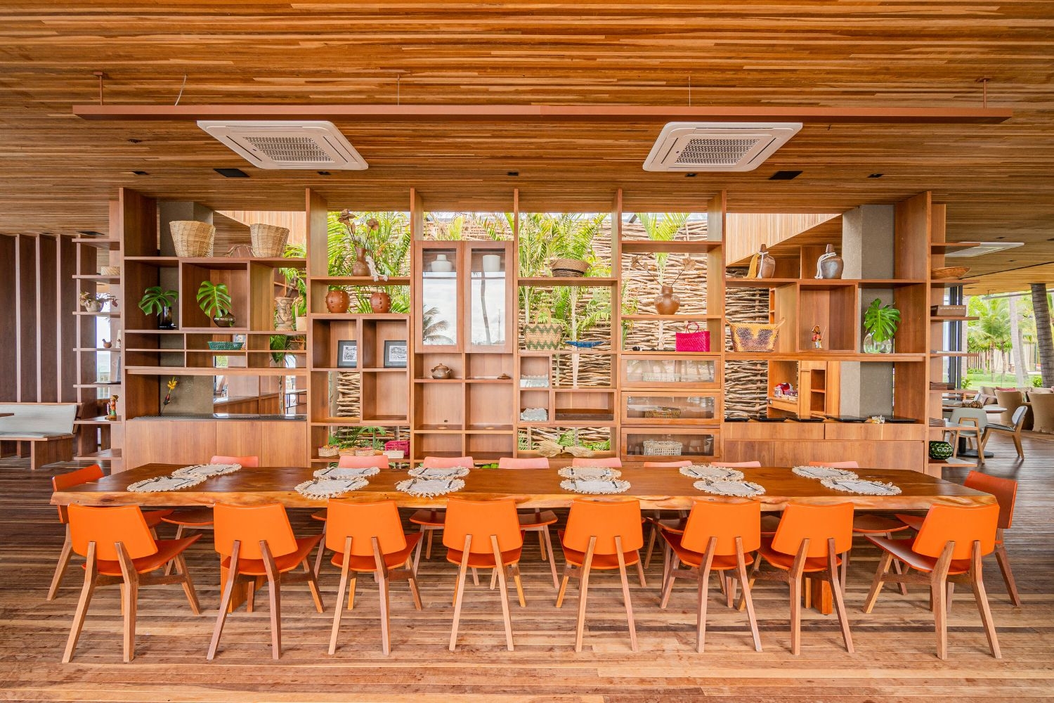 The interiors of Carmel Taíba Resort’s bridges the built environment with surrounding beach nature, fostering an ambiance that redefines hospitality. The design combines warmth and refinement to transcend traditional formalities.