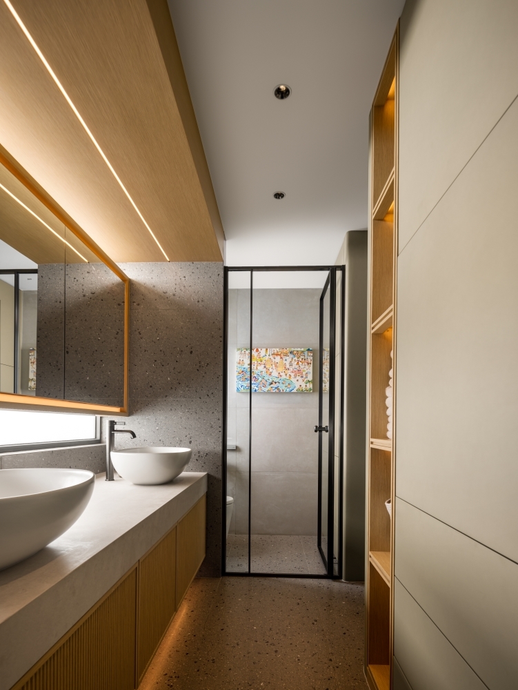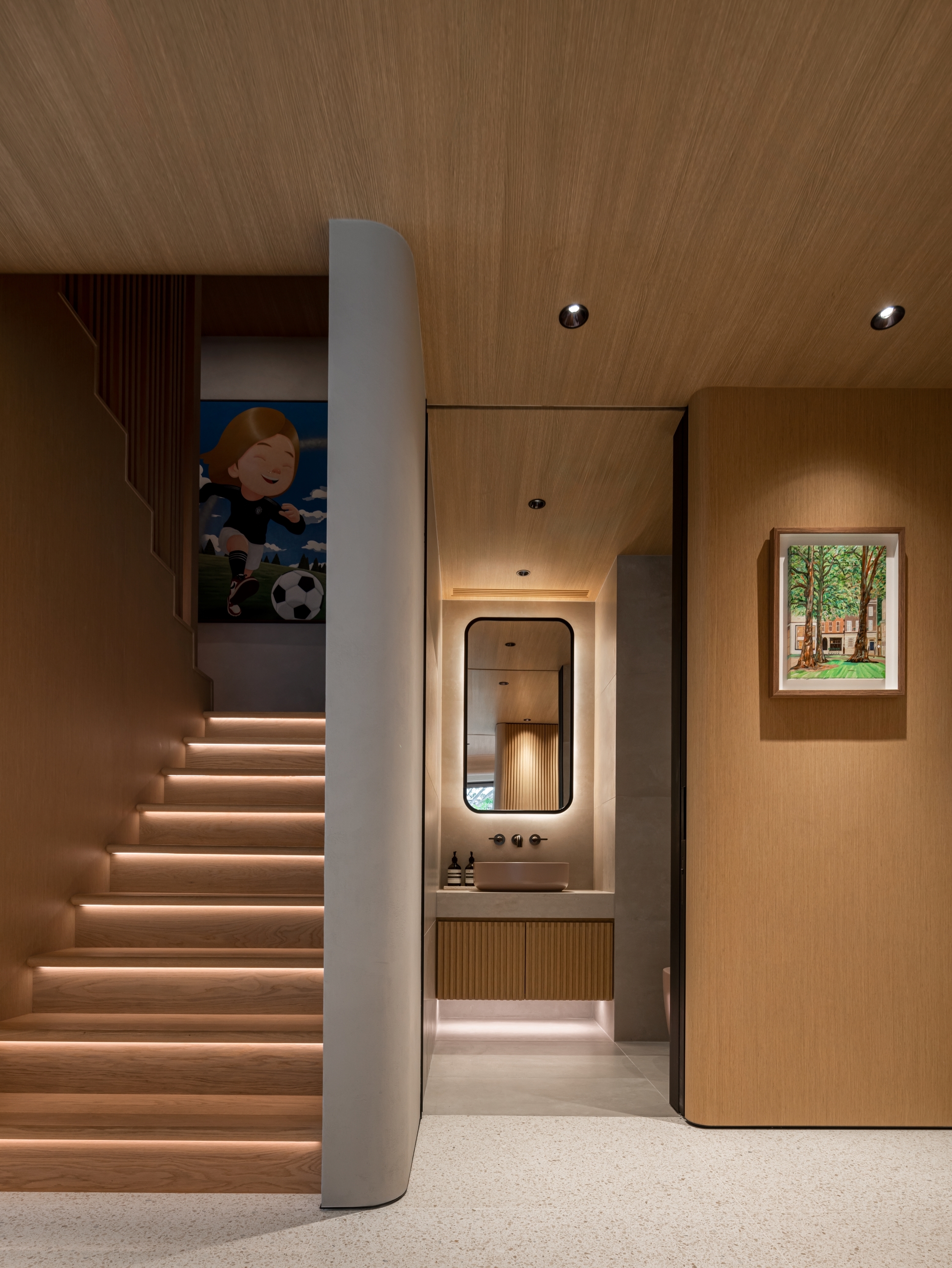 For this interior design project, we were tasked to craft a harmonious blend of warmth, texture, and captivating modern elegance. By integrating seamless wood veneer treatments that flow organically from the walls to the ceiling, we sought to elevate the overall ambience, offering a cocooning warmth that envelops the entire space. This material not only adds a sophisticated layer but also seamlessly unites the ceiling with other design elements, creating a cohesive environment. Combining contemporary elements with a focus on wellness, this modern retreat showcases an exquisite display of artwork integrated with extensive natural woods, designed exclusively for a pair of young couple.