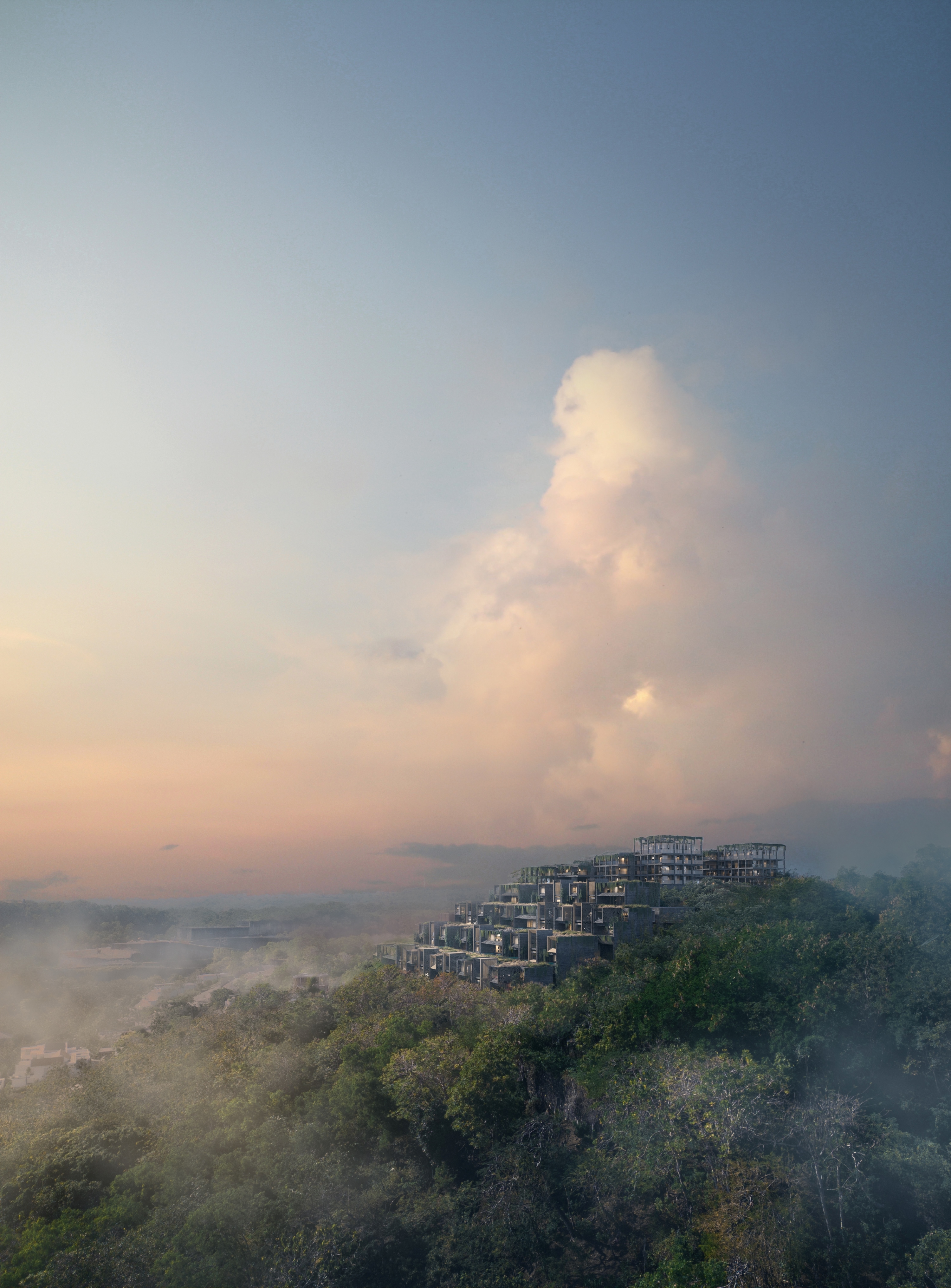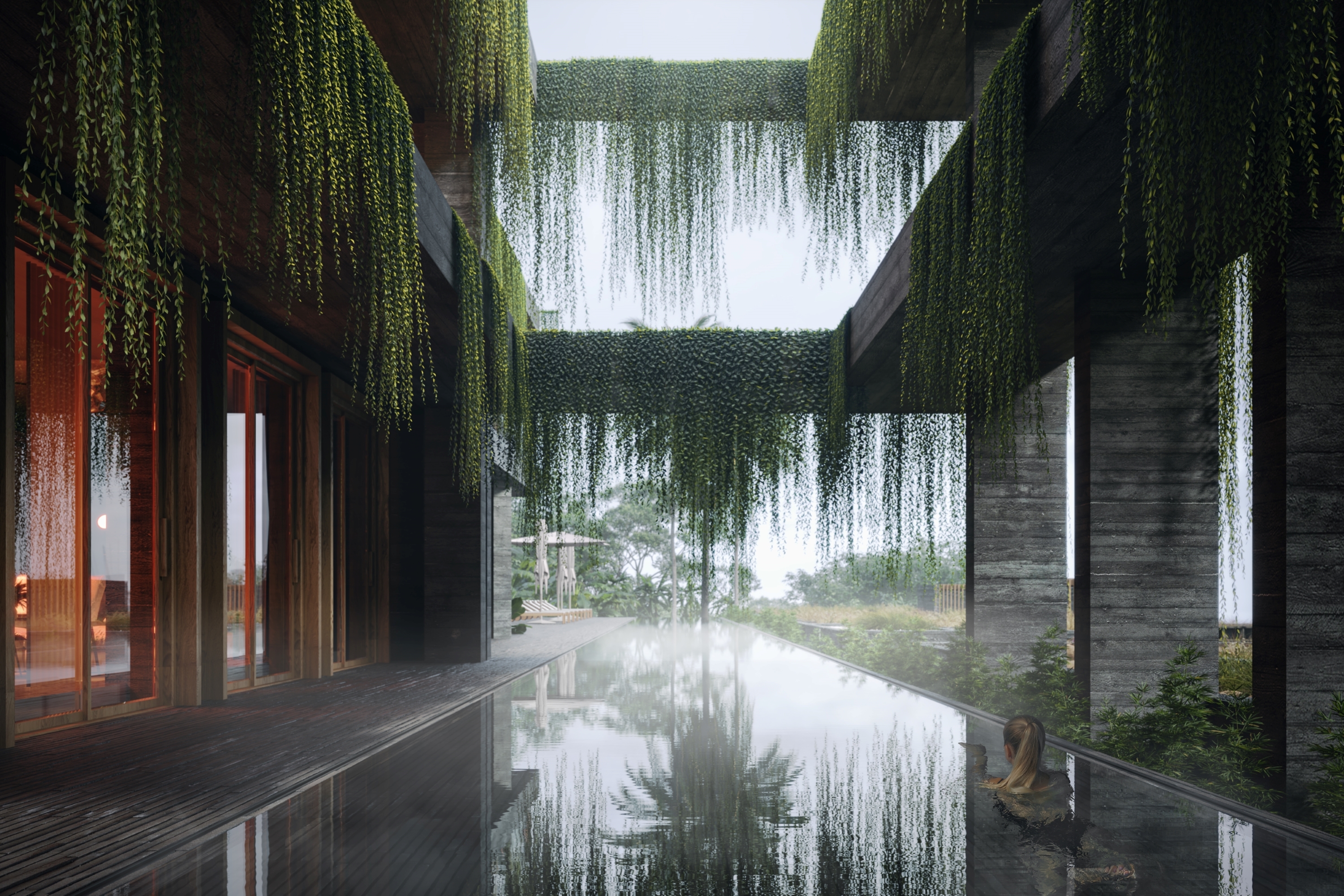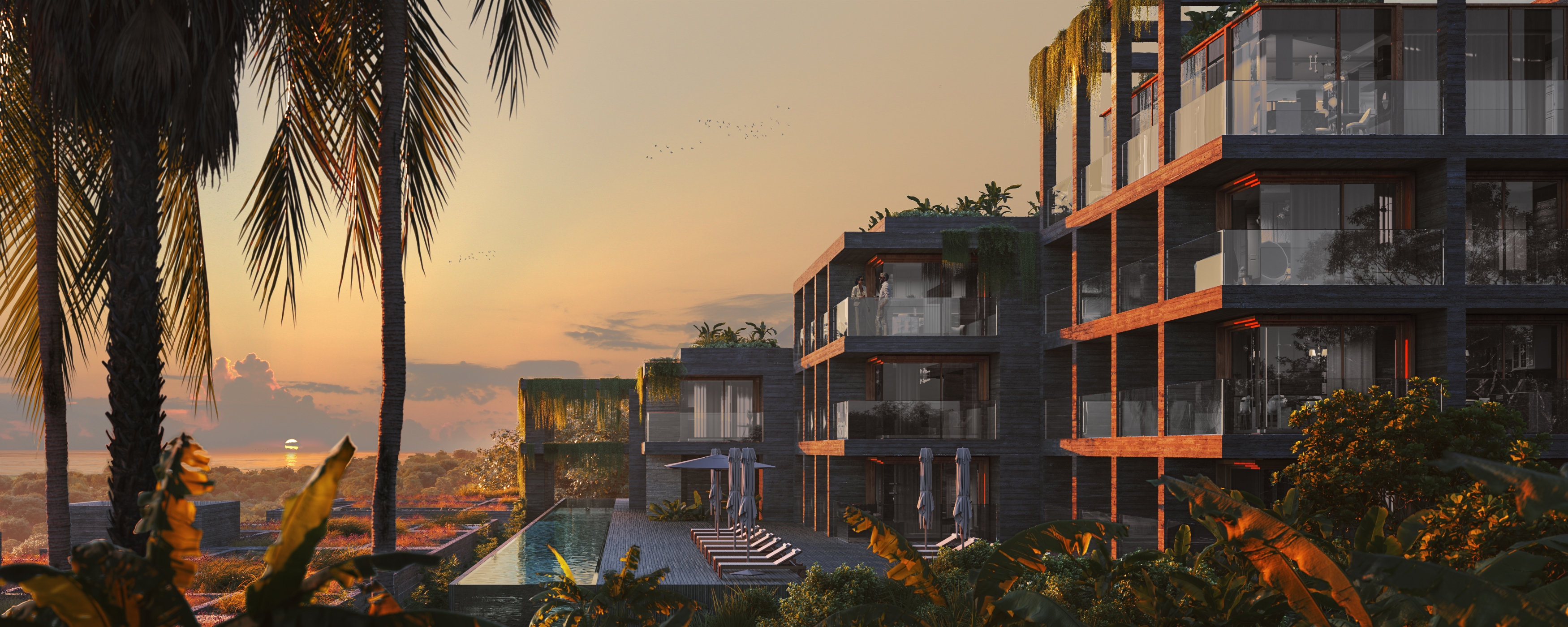 Nestled in the heart of Bali, the Hotel Complex spans an expansive area of 5,372 sq.m, with the total area of all buildings covering 4,185 sq.m. Our luxurious complex features 35 villas and an exclusive apartment complex, each thoughtfully integrated into the island's stunning landscape, harmonizing with the lush equatorial vegetation and sacred banyan trees, all while offering breathtaking ocean views.
