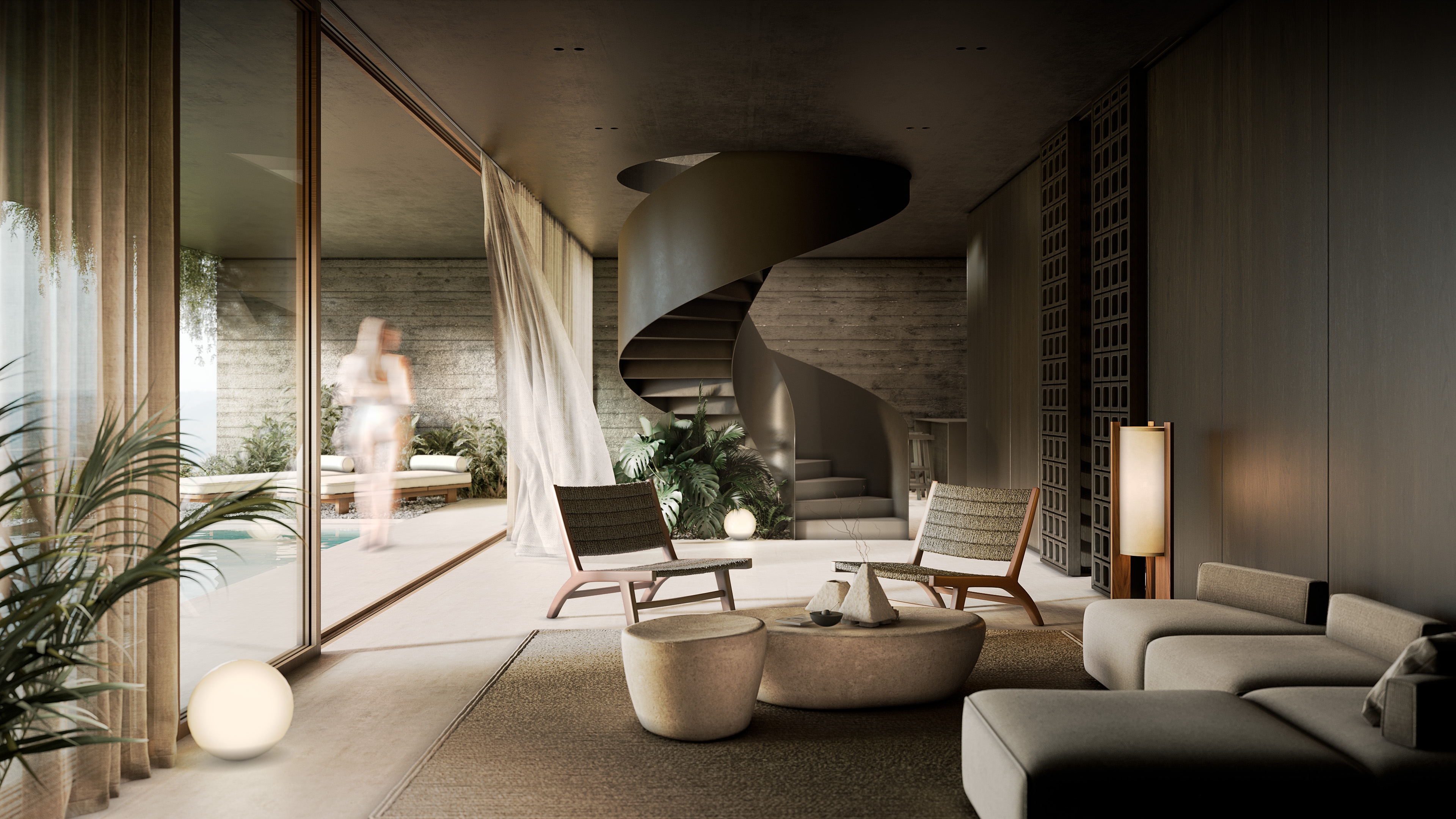 The villas cascade down the mountainside towards the sea, designed to provide the utmost comfort and privacy. Every unit boasts its own pool and terrace, ensuring guests can indulge in serene moments while enjoying the beauty of the surroundings. The carefully landscaped paths leading to the villas create a sense of a journey through the jungle, enhancing the feeling of being immersed in nature.