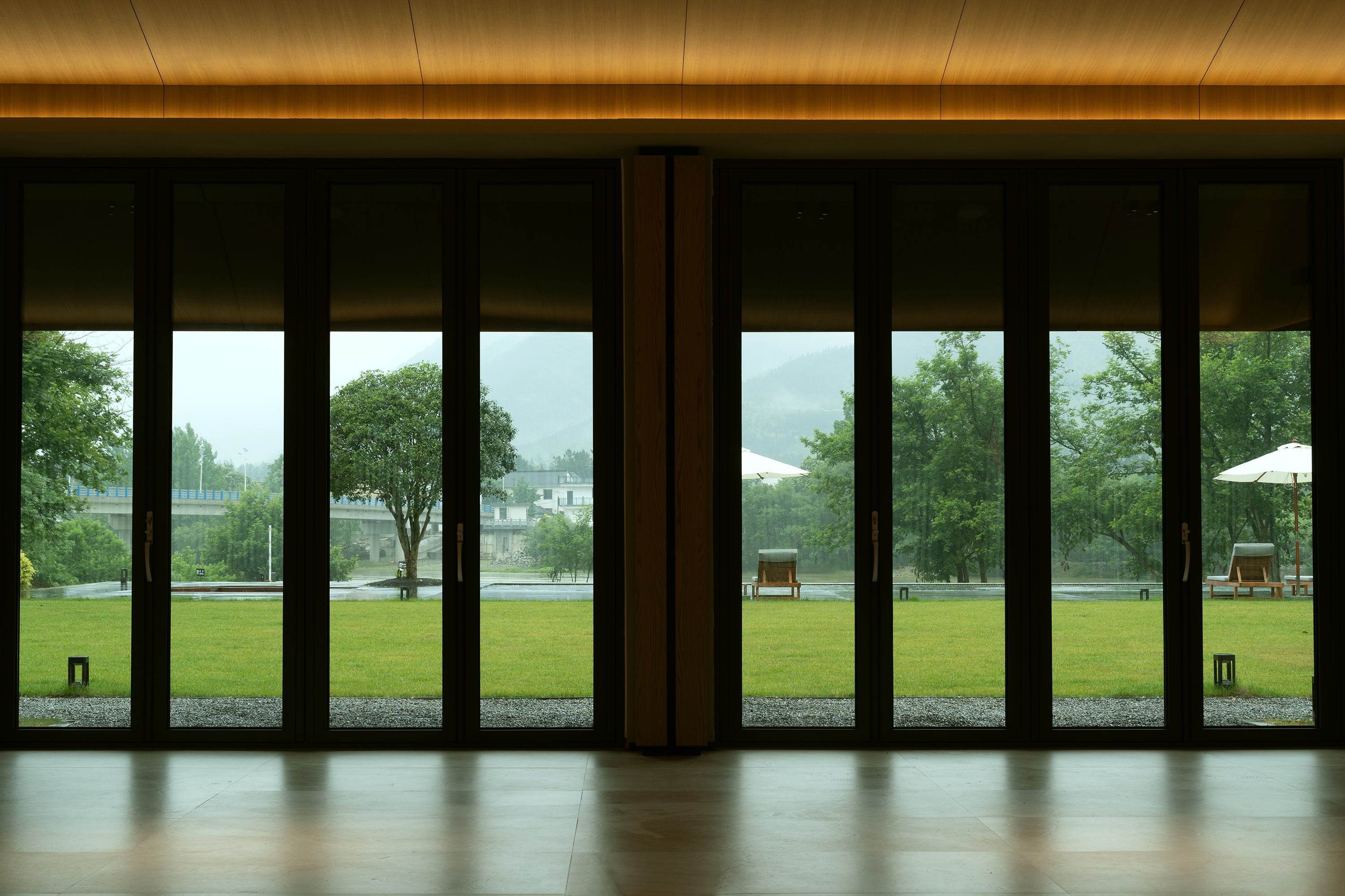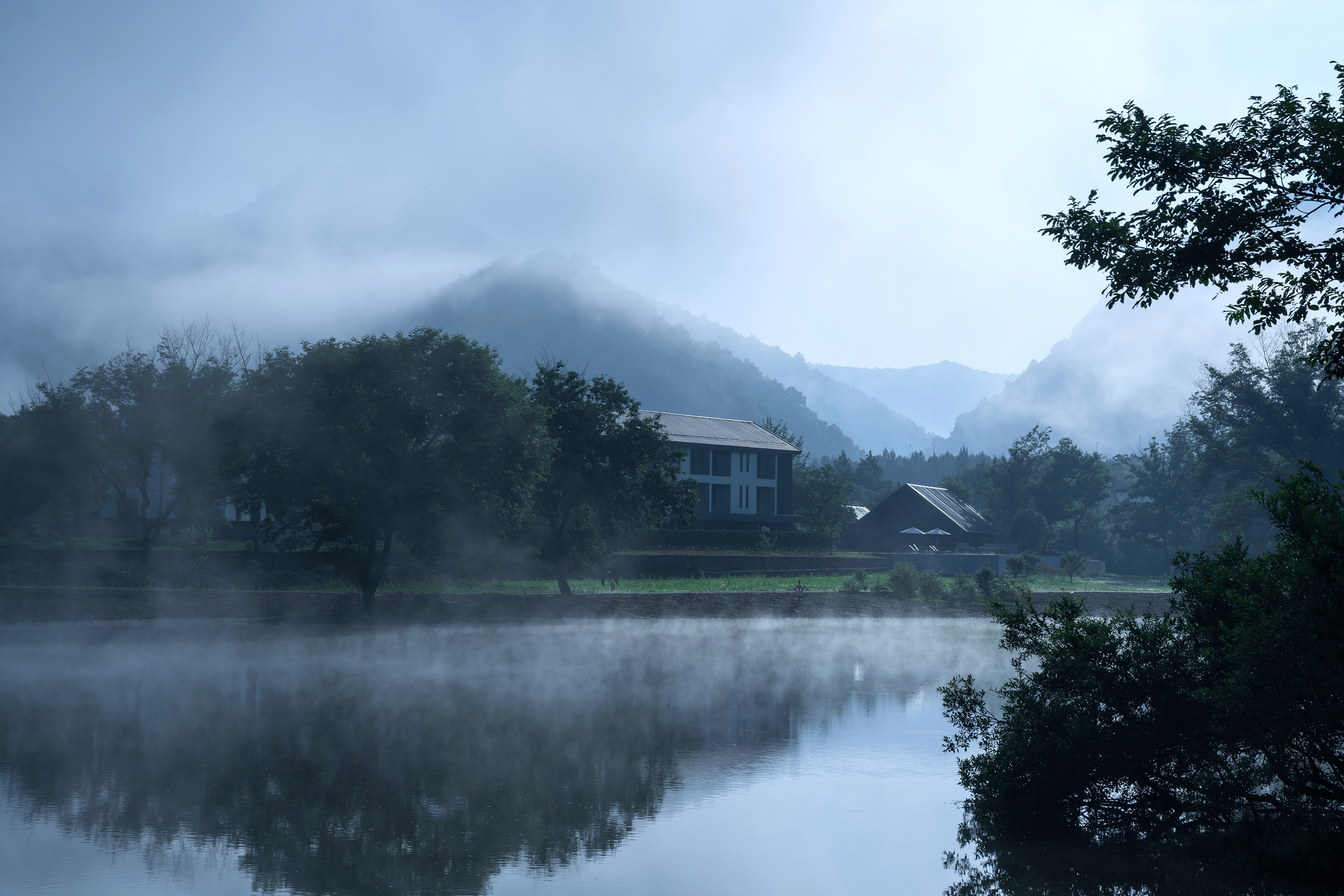 The overall architectural design extracts elements from the traditional Hui-style dwellings with white walls and grey tiles found locally. The double-sloped roofs continue this tradition, preserving the architectural characteristics of traditional dwellings.