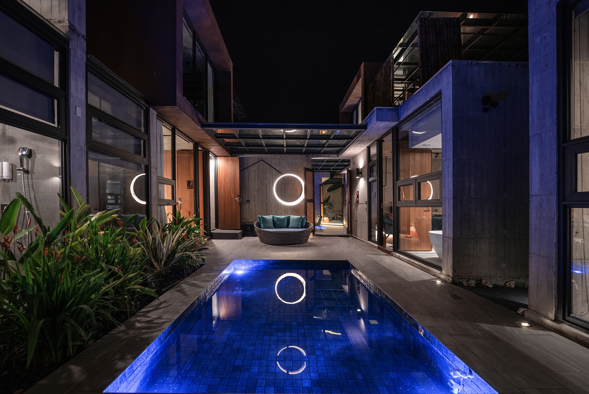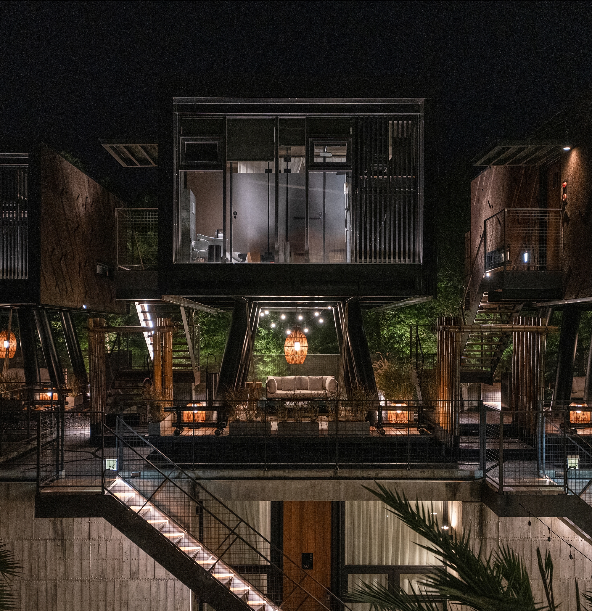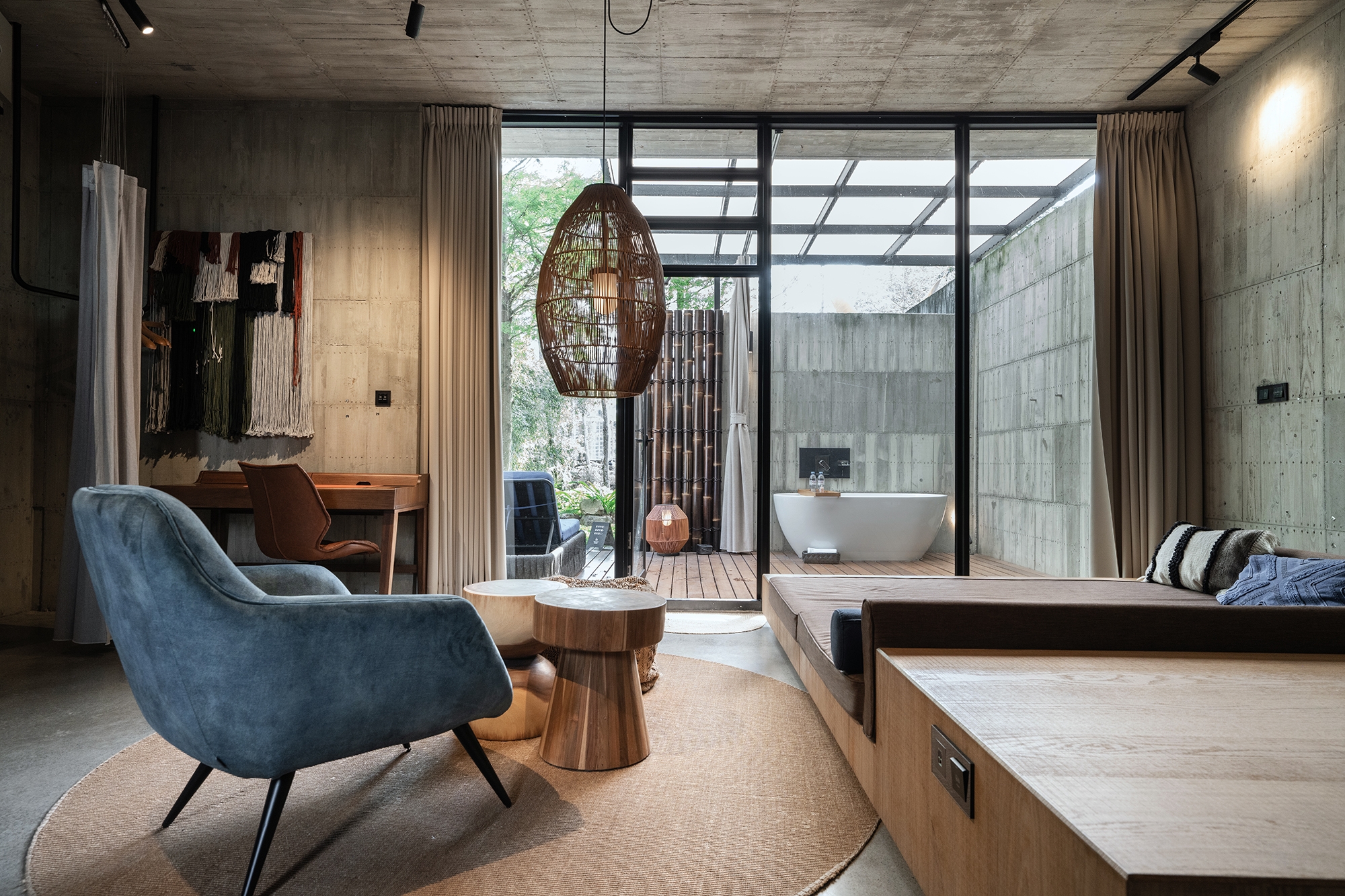 The project aims to create a non-traditional hotel experience based on the concept of "the more local, the more international." It focuses on living in nature and fostering human connections as the core of its design. Drawing inspiration from traditional gathering places in Taiwan, such as “farmhouse”, “front yards”, and “gathering under the trees”, the hotel reimagines communal living. The design preserves humanistic memories while breaking away from traditional forms, offering a new travel experience for locals. With a theme of "wild luxury," the project aims to reconnect people with nature and traditional living spaces. It features outdoor bathing, indoor/outdoor integration, and “independent, combinable” villa units to create “private yet interconnected” spaces. To practice the idea of “ESG”, wood-grained concrete panels, carbonized cork, glass, bamboo walls, sleepers, and stainless steel panels creates a rustic aesthetic, while concrete load-bearing wall panels form the foundation of the structure. The steel frame of the tree house, a major engineering challenge, enables the building to coexist harmoniously with nature and humanity.