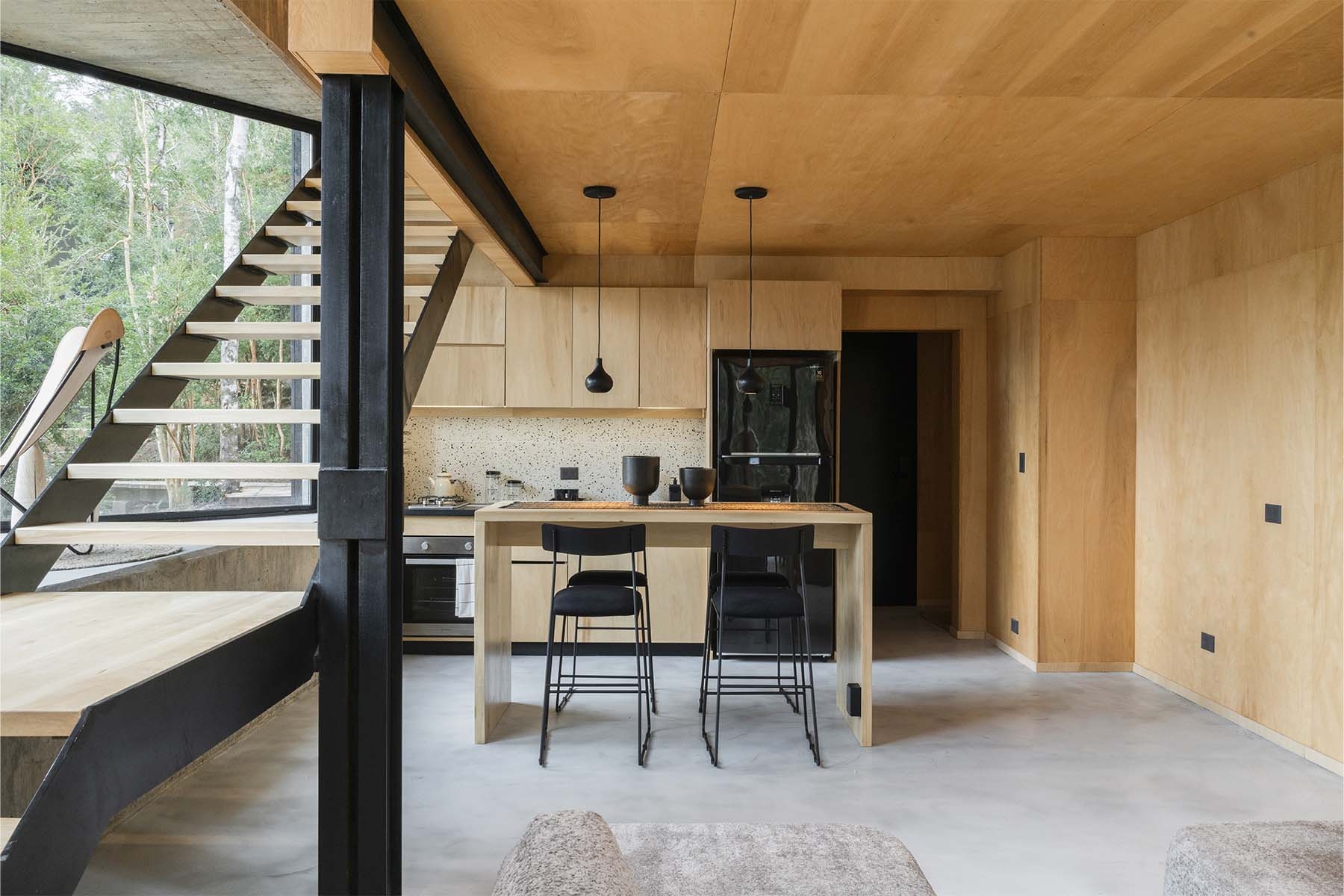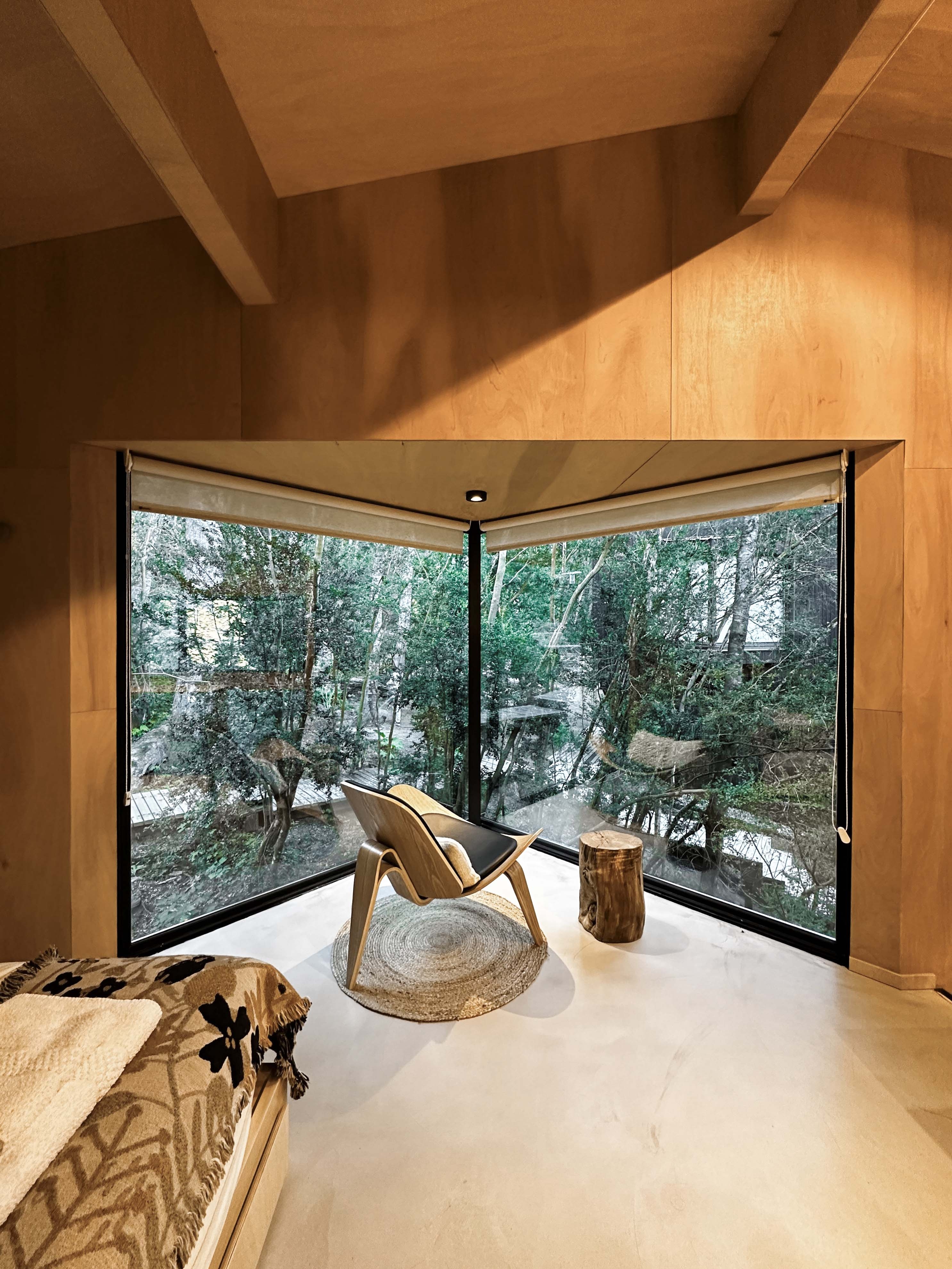 This boutique-scale holiday complex stands as the vision of its lead architects María Ayelén Olivieri Martinez and Juan Segundo Diaz Dopazo. The team took on the challenge of crafting an oasis retreat amidst a native forest of Coihues and Arrayanes in Villa la Angostura. With its steep slopes, panoramic vistas, and the embrace of Lake Correntoso, the location set the stage for a project. Thus, a collection of timber-clad ‘landscape cabins,’ is born, inviting tourists into an intimate communion with the forested surroundings.