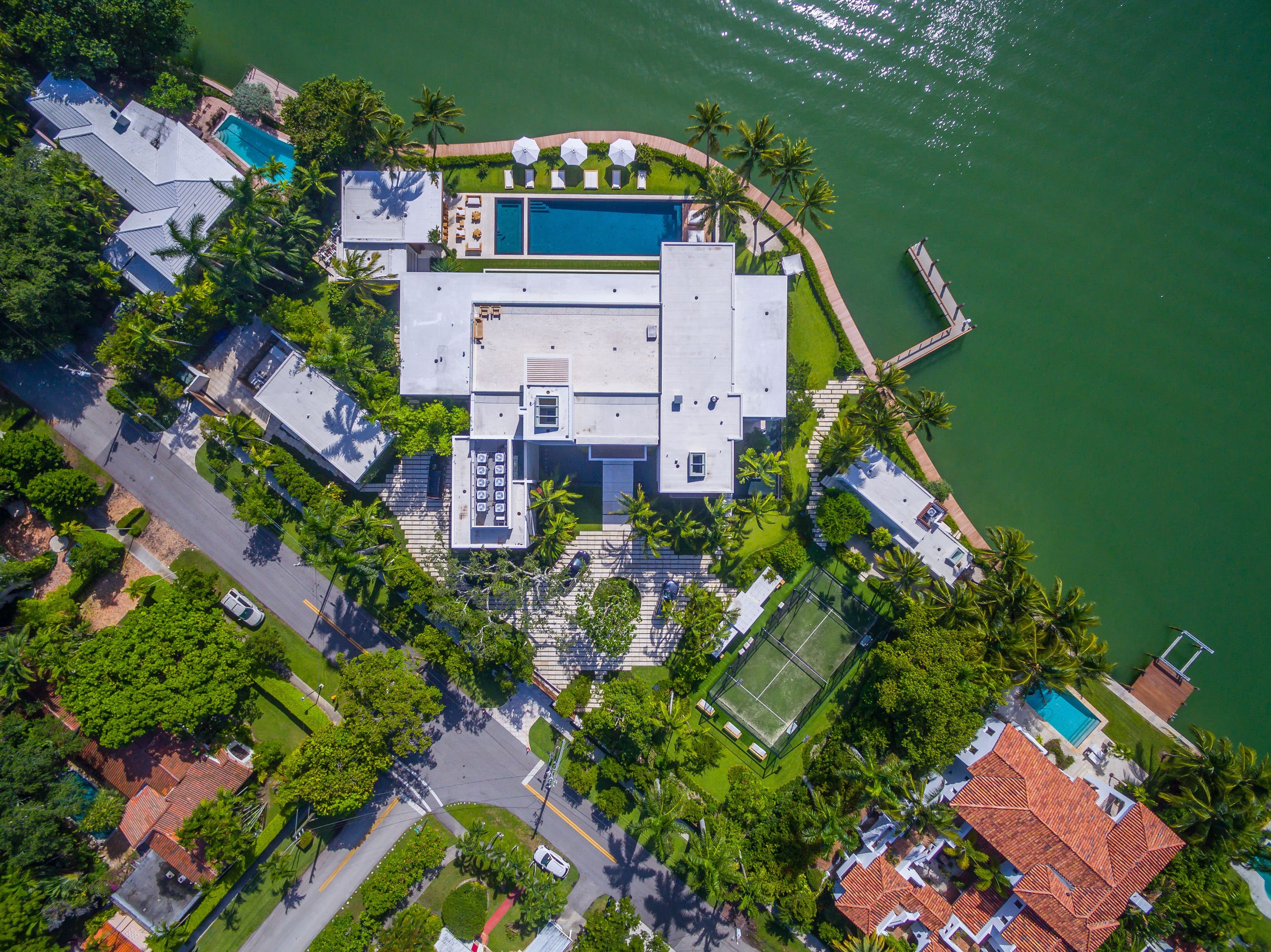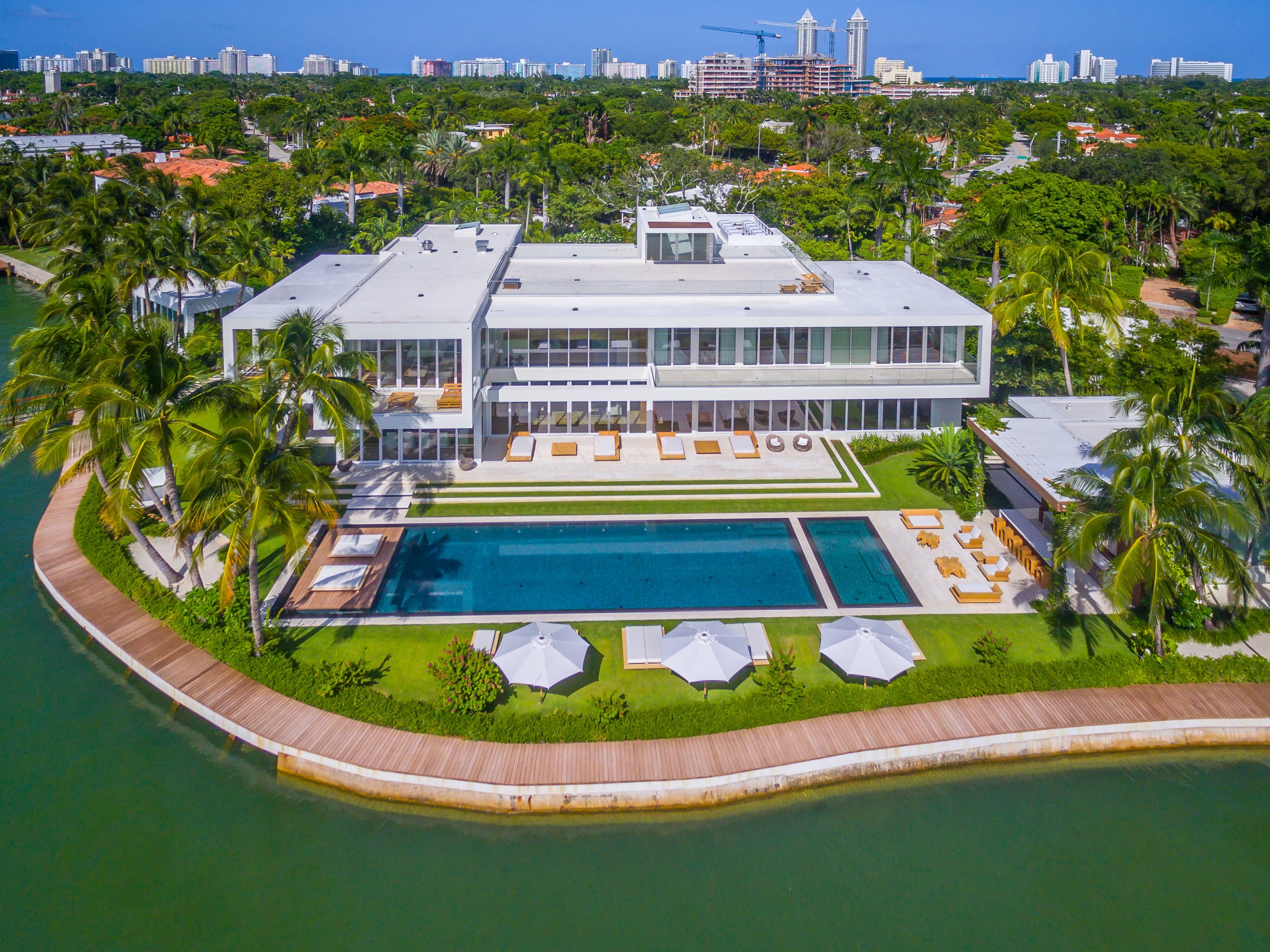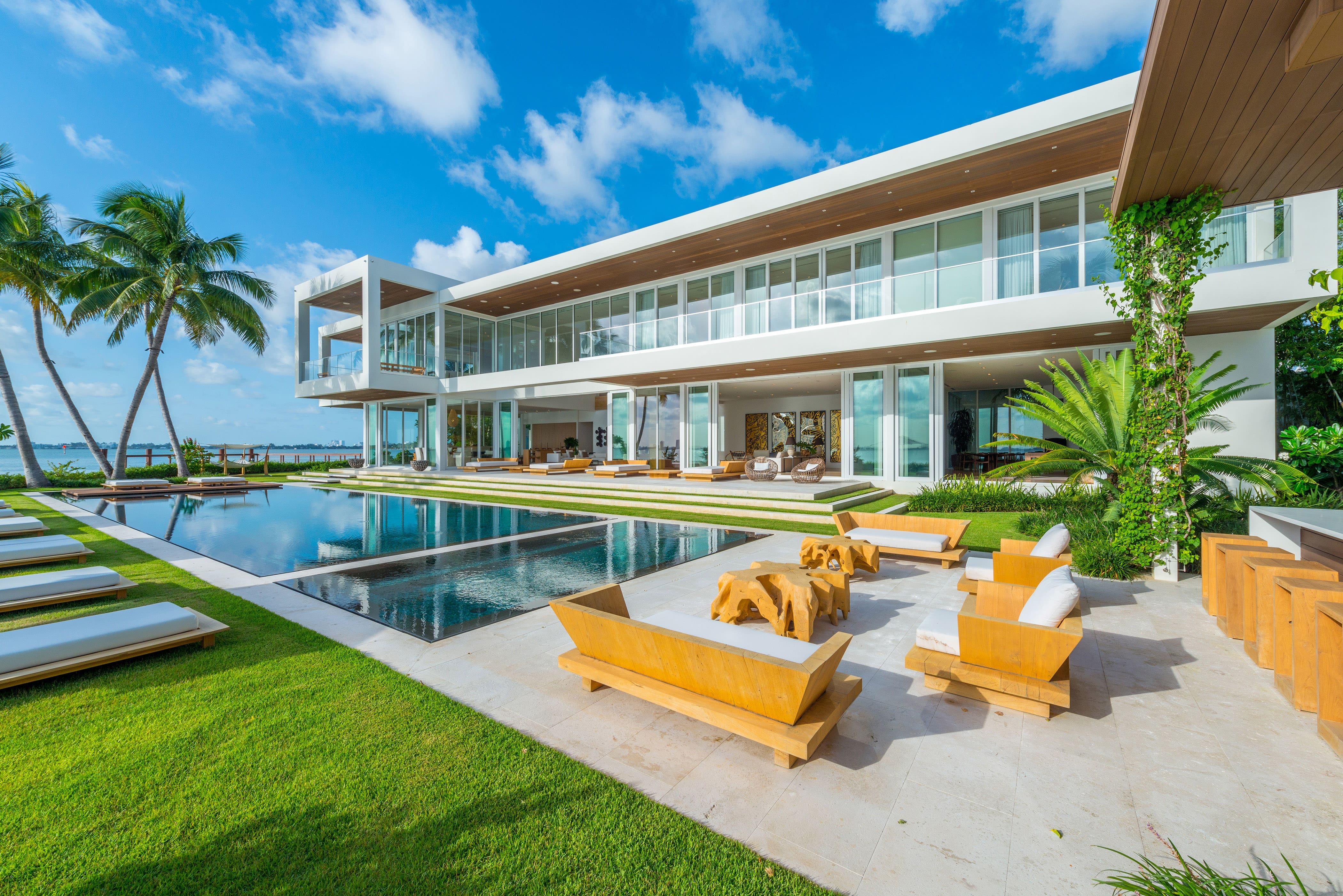 Spanning an impressive 15,000 square feet, the estate offers an array of lavish living spaces, including a dramatic two-story entry, five spacious bedroom suites, and a chef’s kitchen designed for both functionality and style. The home also boasts a state-of-the-art home theater, providing an unparalleled entertainment experience. Additional amenities include a private gym, a guest house, and a three-car garage, all designed to maximize comfort and convenience while taking full advantage of the stunning views of Biscayne Bay and the Miami skyline. This exceptional property is more than just a home; it represents the pinnacle of contemporary living.