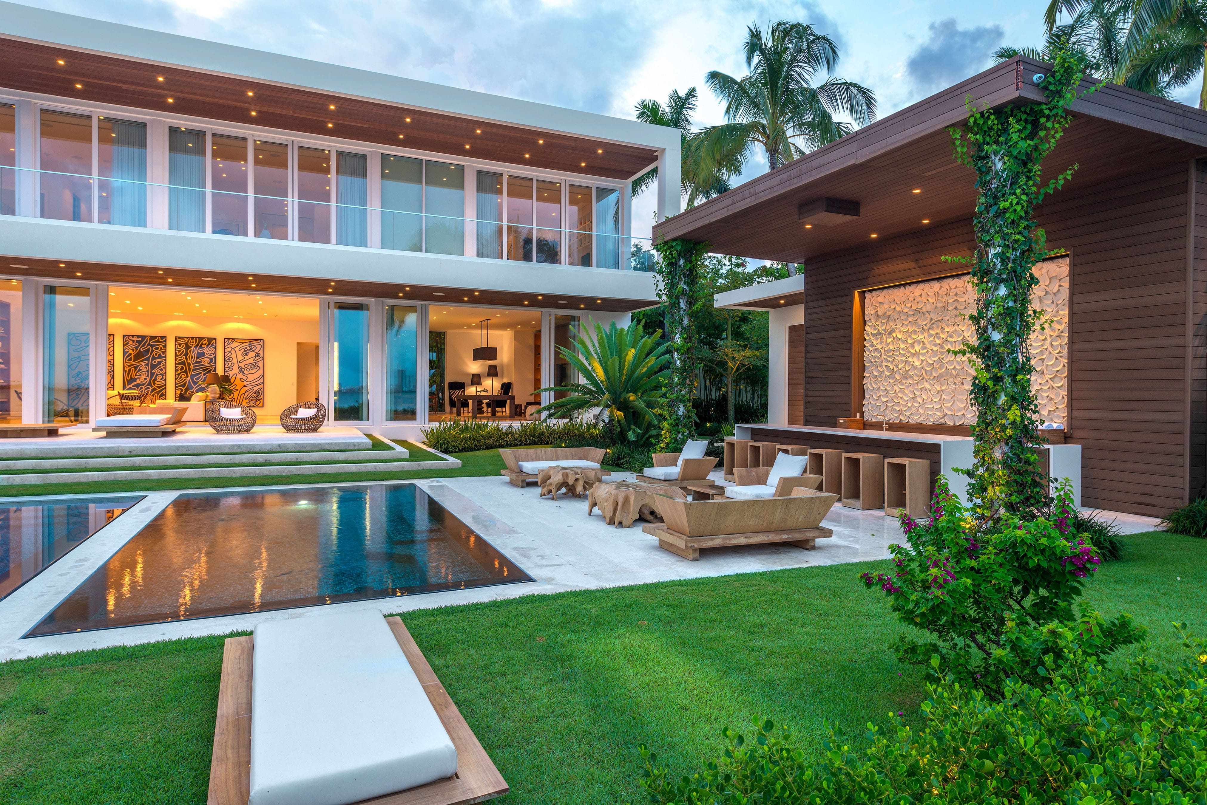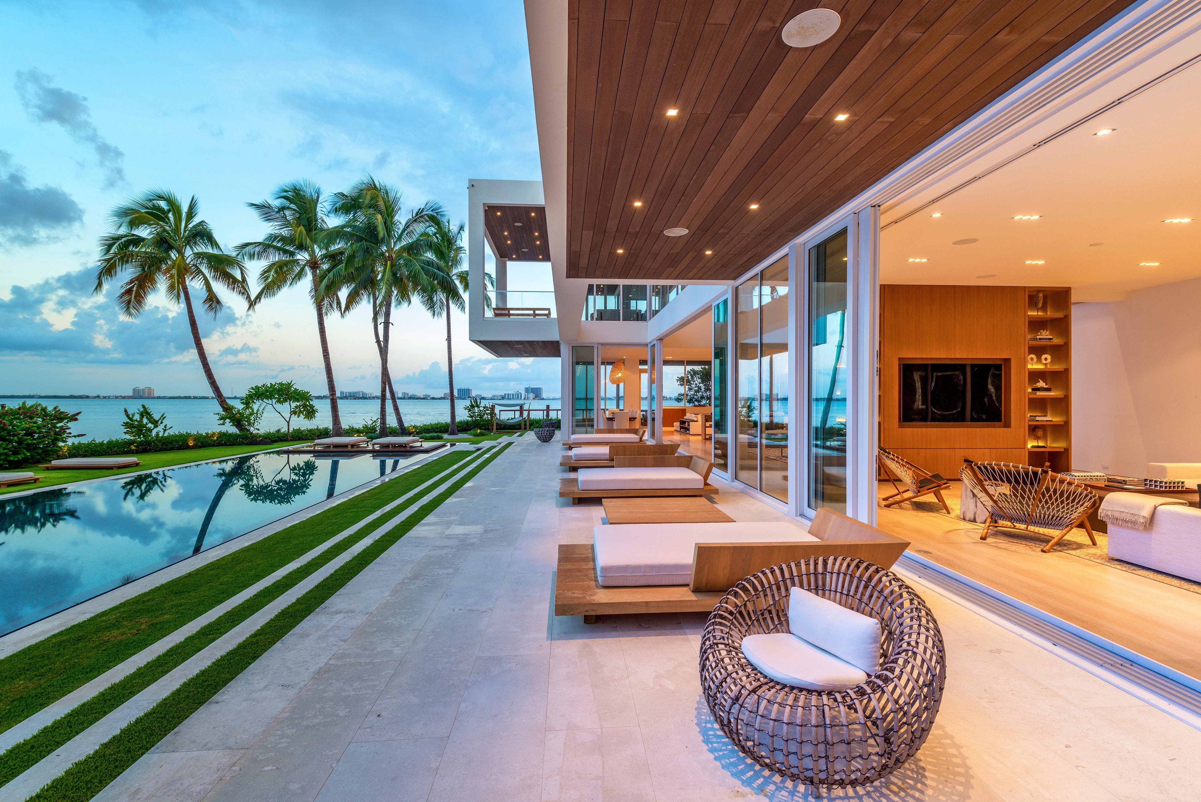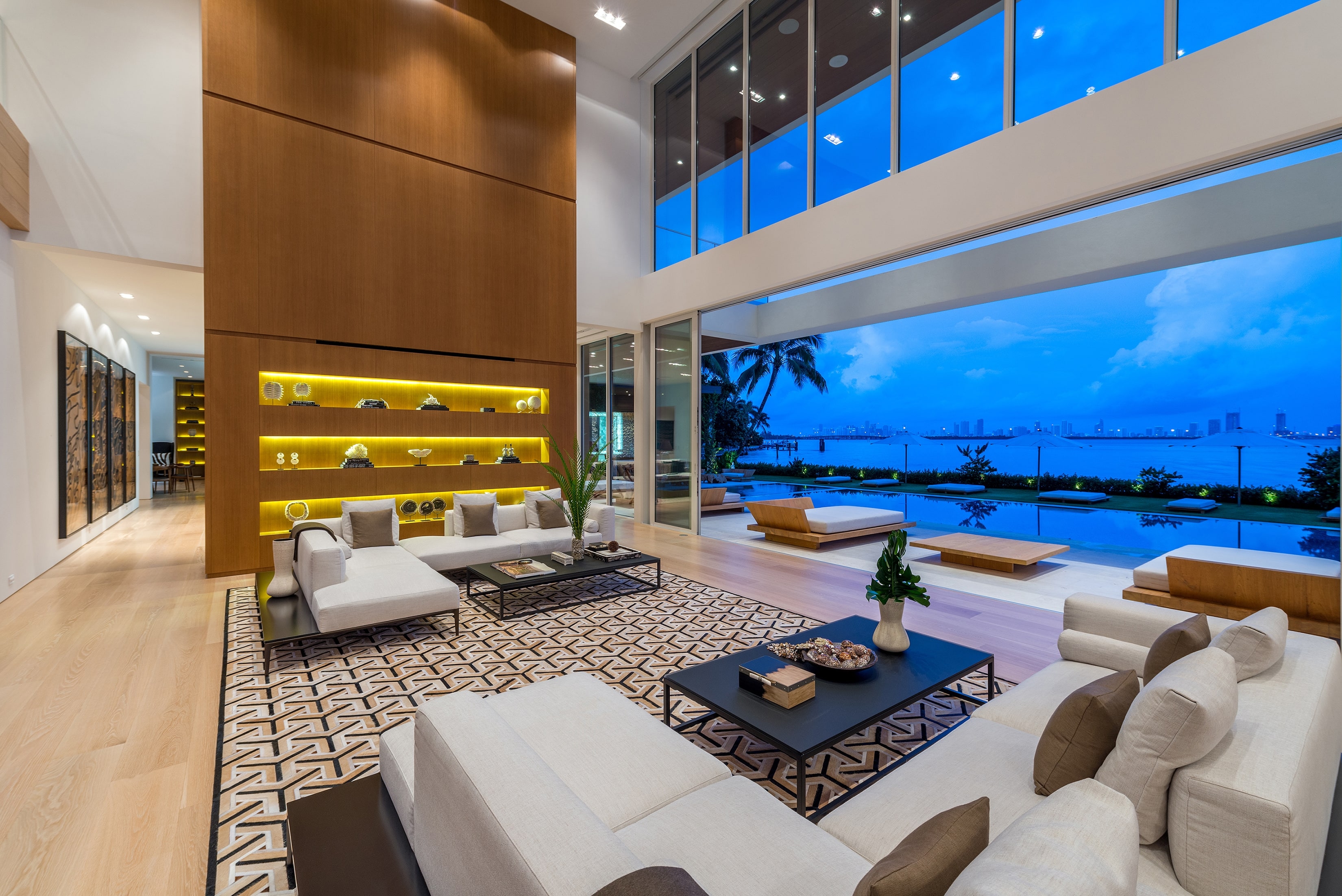 Spanning an impressive 15,000 square feet, the estate offers an array of lavish living spaces, including a dramatic two-story entry, five spacious bedroom suites, and a chef’s kitchen designed for both functionality and style. The home also boasts a state-of-the-art home theater, providing an unparalleled entertainment experience. Additional amenities include a private gym, a guest house, and a three-car garage, all designed to maximize comfort and convenience while taking full advantage of the stunning views of Biscayne Bay and the Miami skyline. This exceptional property is more than just a home; it represents the pinnacle of contemporary living.