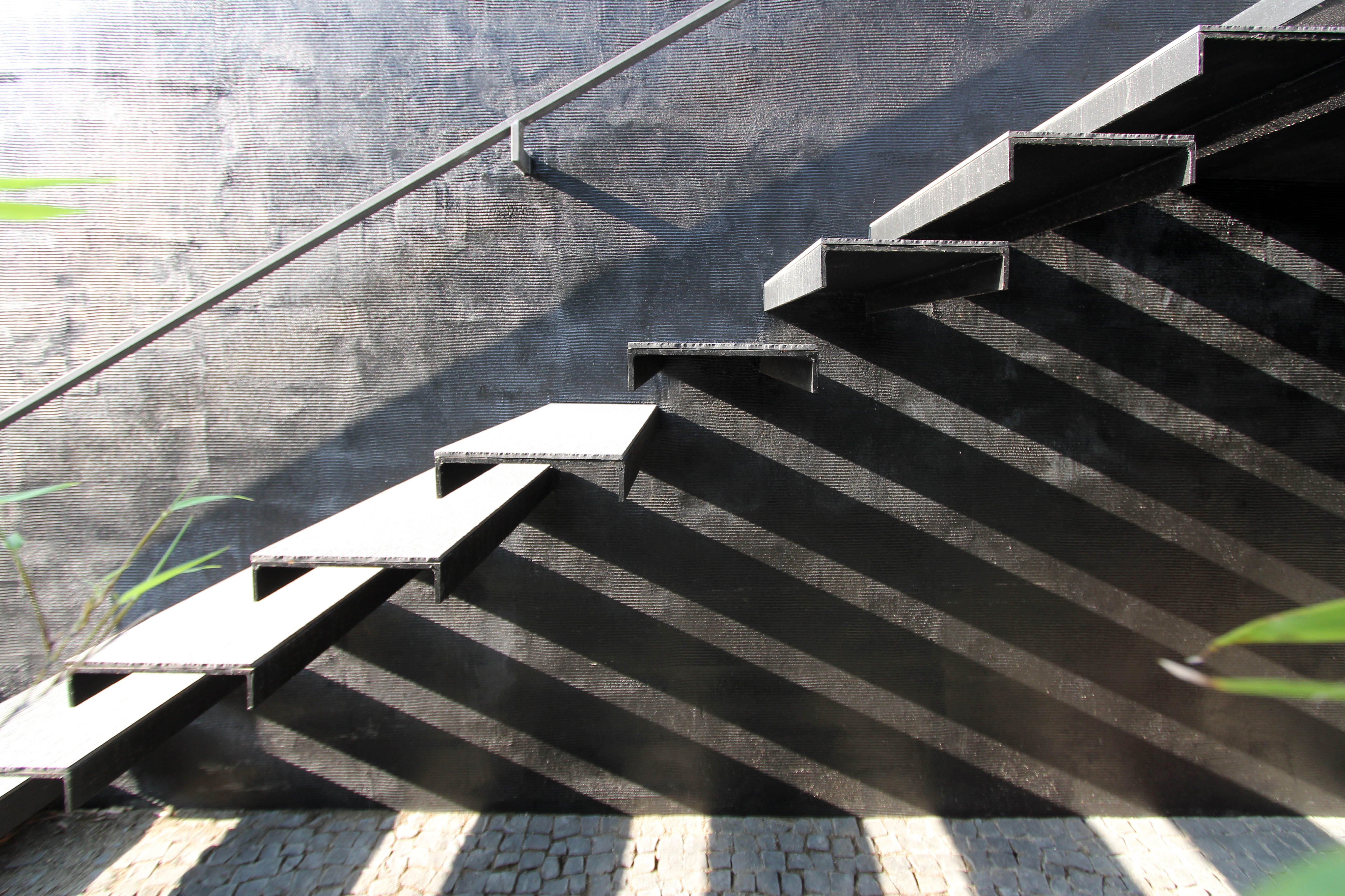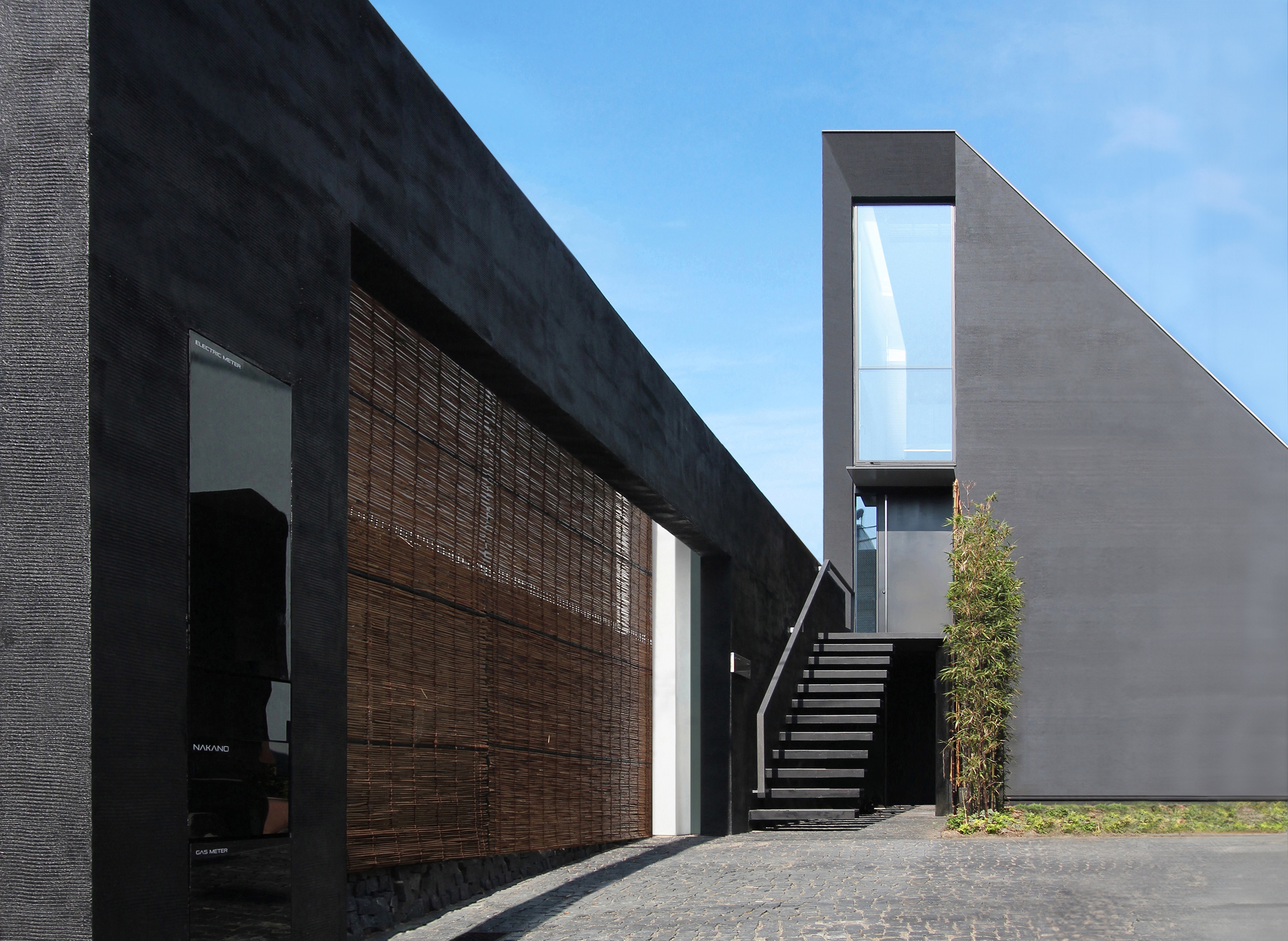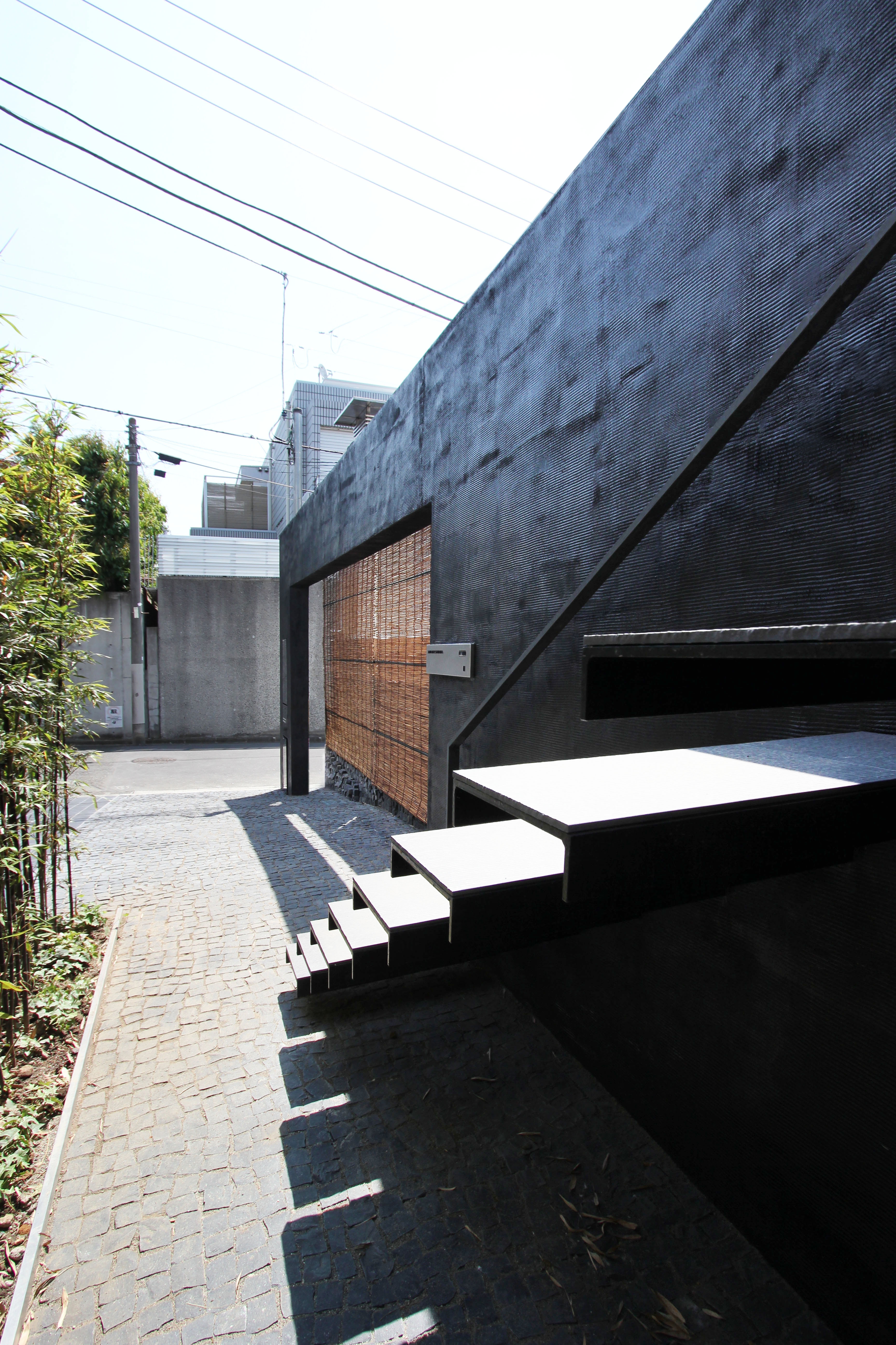 This custom house plan for a parent and child redefines luxury living on a narrow flag lot near central Tokyo. Despite its urban proximity, the site offers tranquility, with a two-meter-wide frontage leading to a private retreat. The sculptural approach integrates stairs, lighting, and a boundary wall, guiding visitors to the second-floor entrance for a sophisticated and welcoming arrival experience.