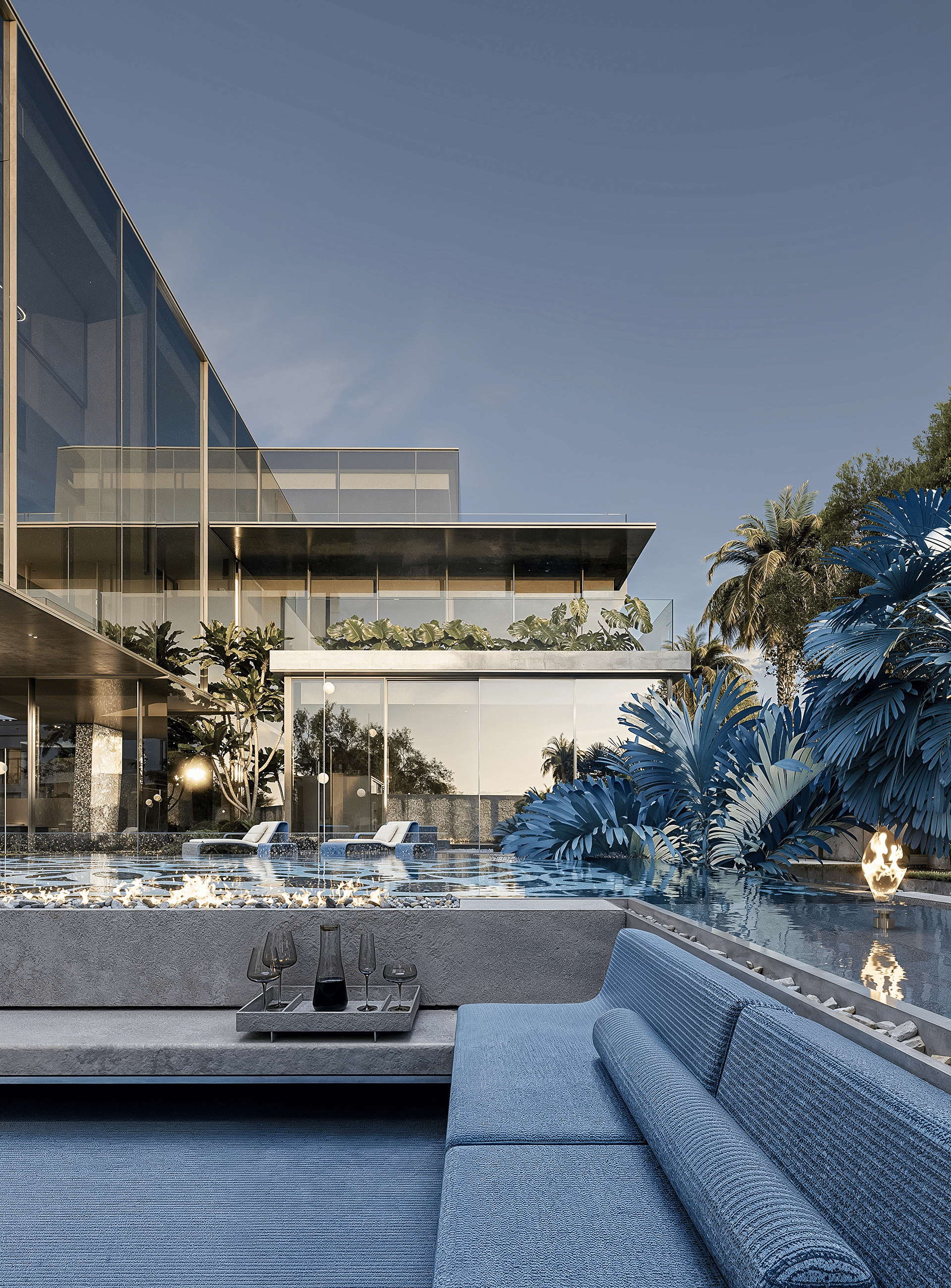 1 589 sq.m. exceptional family villa with a view of the Burj Al Arab in Dubai. The general conceptual idea tied to the expression: To the Moon and Back. To emphasize that wherever you are, all your paths lead back to your home and your people, gathered one day in your villa’s living room. Someone will become your loved one, someone a loyal friend, and you will love them to the moon and back.