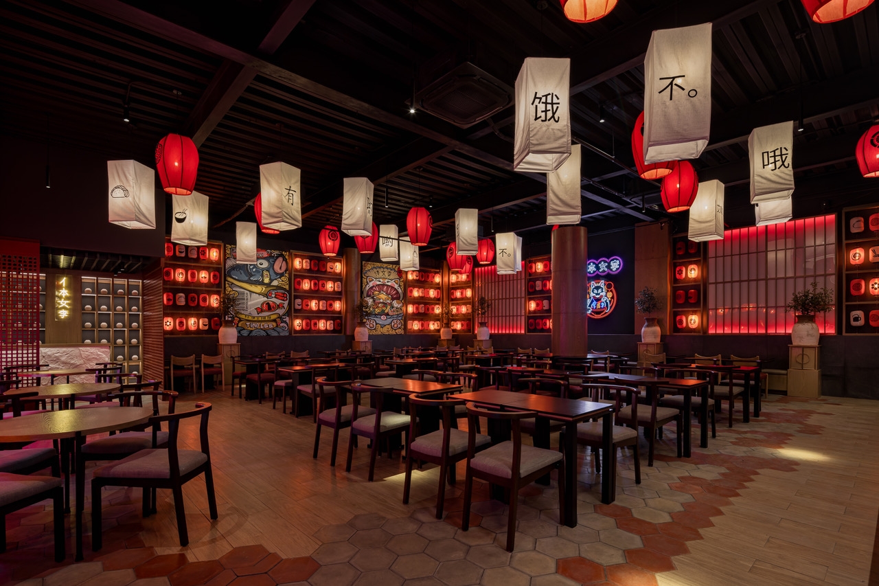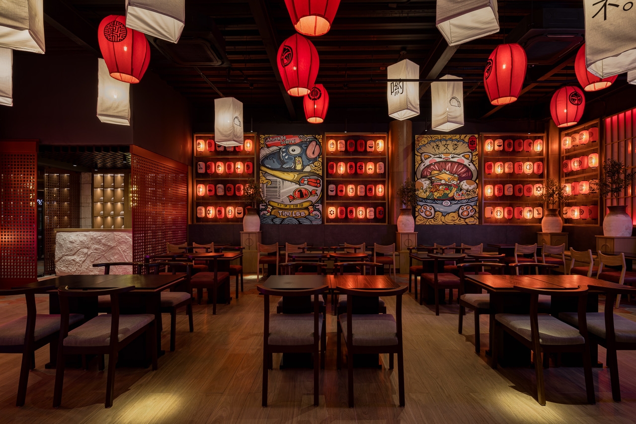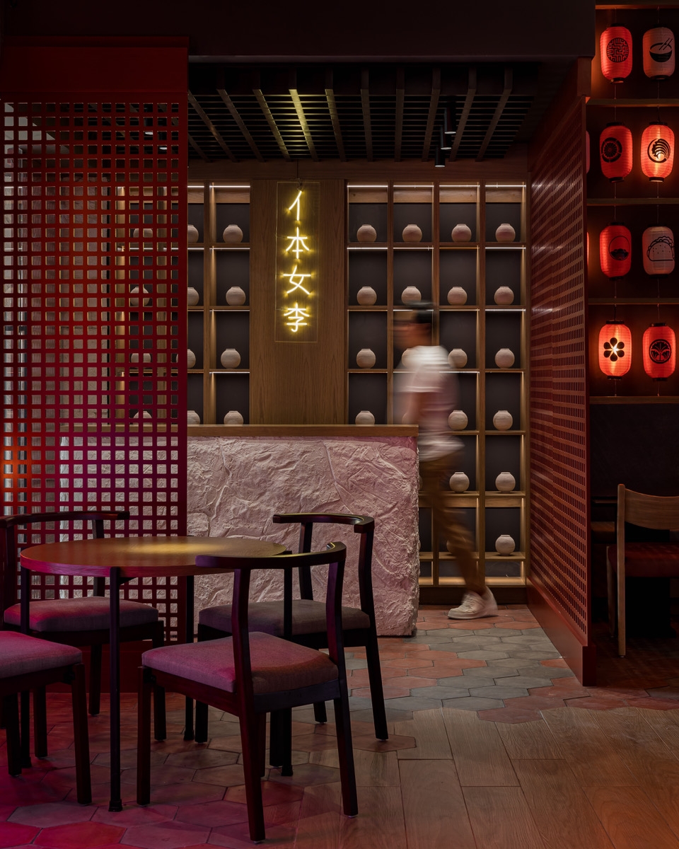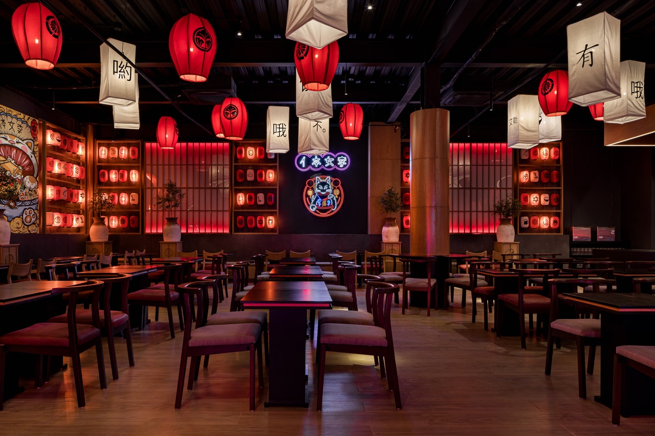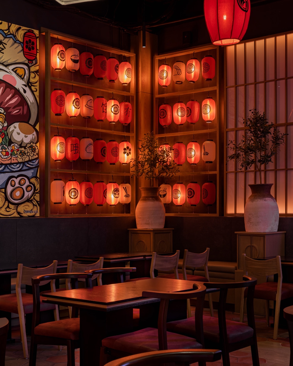 a flame inside, filling the restaurant with warmth. While the SHOJI panels