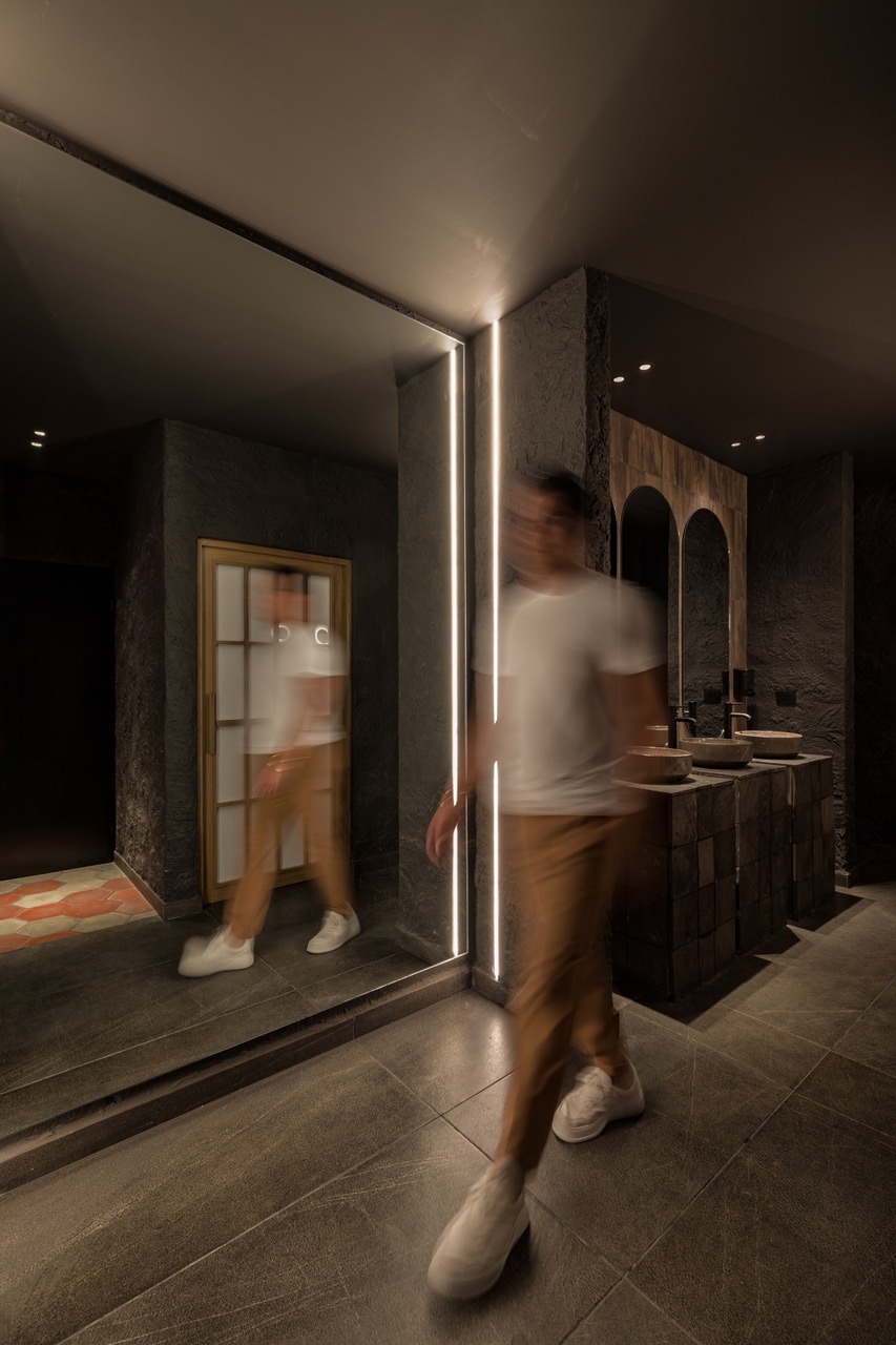 A characteristic feature that stands out in this restaurant is the use of various sources of light,