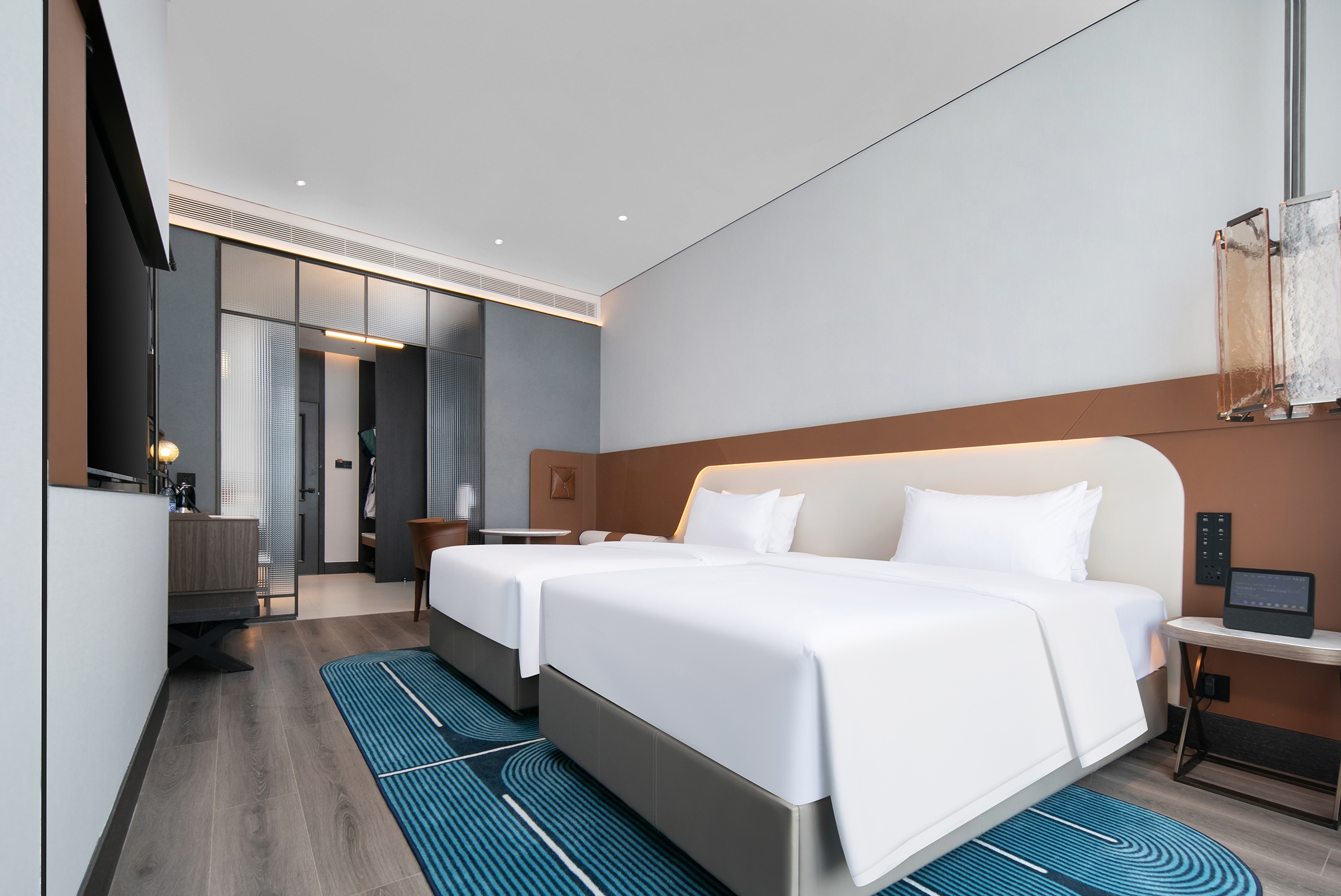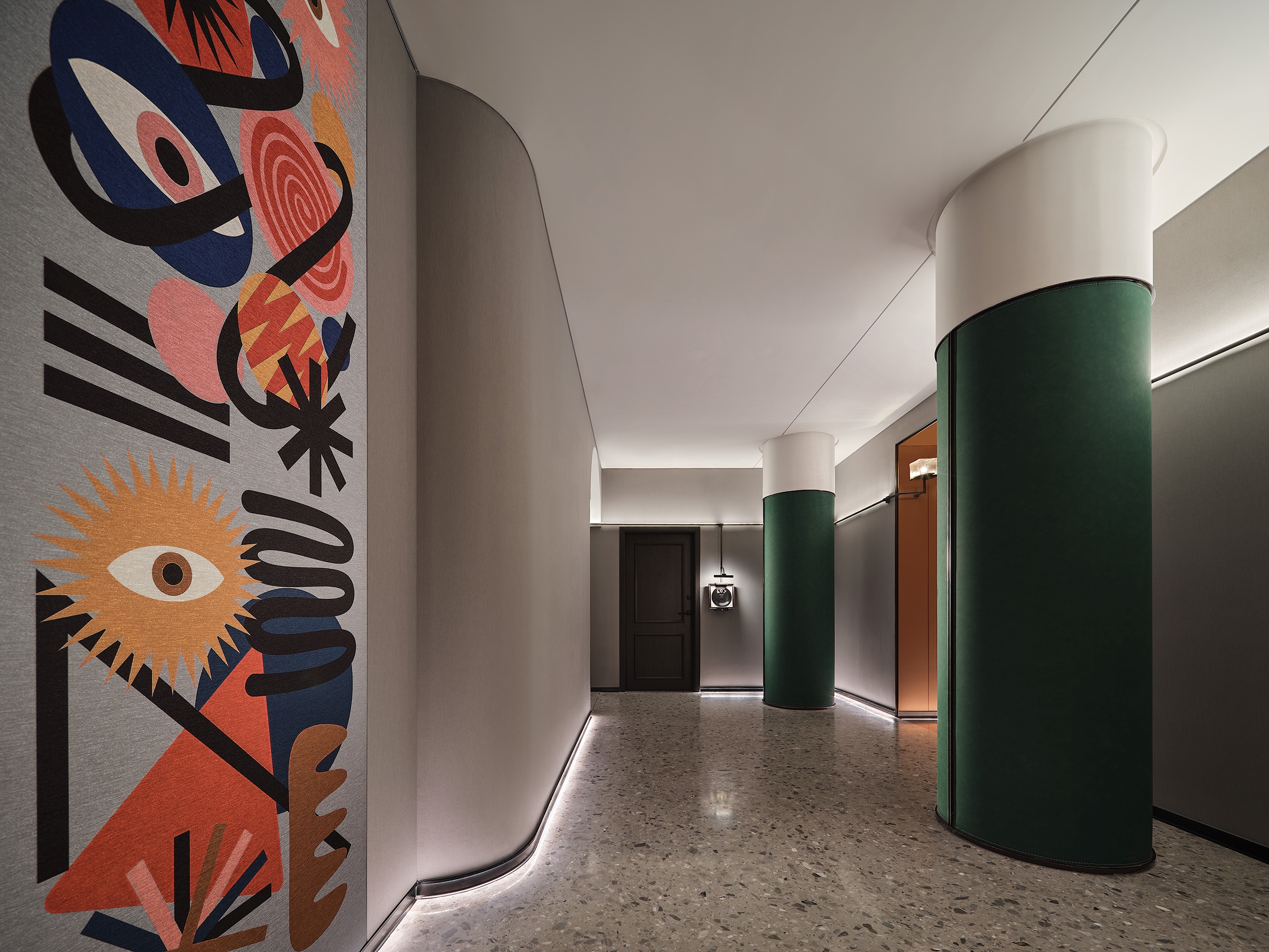 This project is situated on Pengliuyang West Road in the historic area of Yellow Crane Tower in Wuchang, right at the heart of the city and surrounded by scenic attractions, thus boasting unique tourism resources. As Yellow Crane Tower's popularity grows, there's been a surge in demand for vacation spots, paving the way for imminent land value realization. Drawing inspiration from the art style of Keith Haring and the iconic Wuhan dish "Hot Dry Noodles", the design team has embarked on exploring the concept of "art in a single line" through abstract curves, to probe the symbiosis of commerce and art. This approach integrates aesthetic living into the hotel, creating a relaxed social space aimed at the youth. Embracing a "relaxed hotel" theme, the design spreads across three levels: art, boutique, and social. The layout includes a ground-floor rainforest-themed pocket park and café, boutique hotel rooms on the second to fourth floors, and a combination of creative office spaces and art galleries on the fifth and sixth floors. This configuration allows guests to enjoy an artistic lifestyle during their stay, making the hotel a destination for urban living.