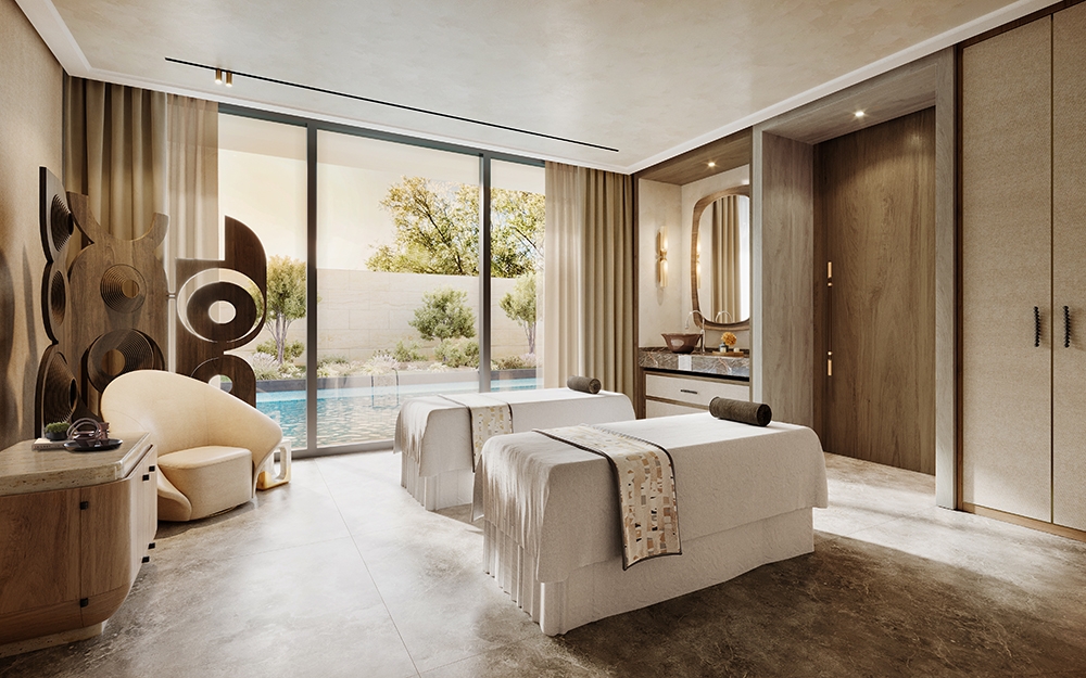 Crafted as a symphony of modern finesse and timeless allure, the villa opens up within to the expansive views outwards with a triple-volume arrival hall that echoes the exterior’s vernacular façade. Celebrating the sea’s endless horizon, spaces are designed to frame serenity and opulence. From its luxurious pool deck to the infinity edge pool, every element bridges histories and horizons, providing a vernacular experience of luxury amidst the Hudayriyat hills.