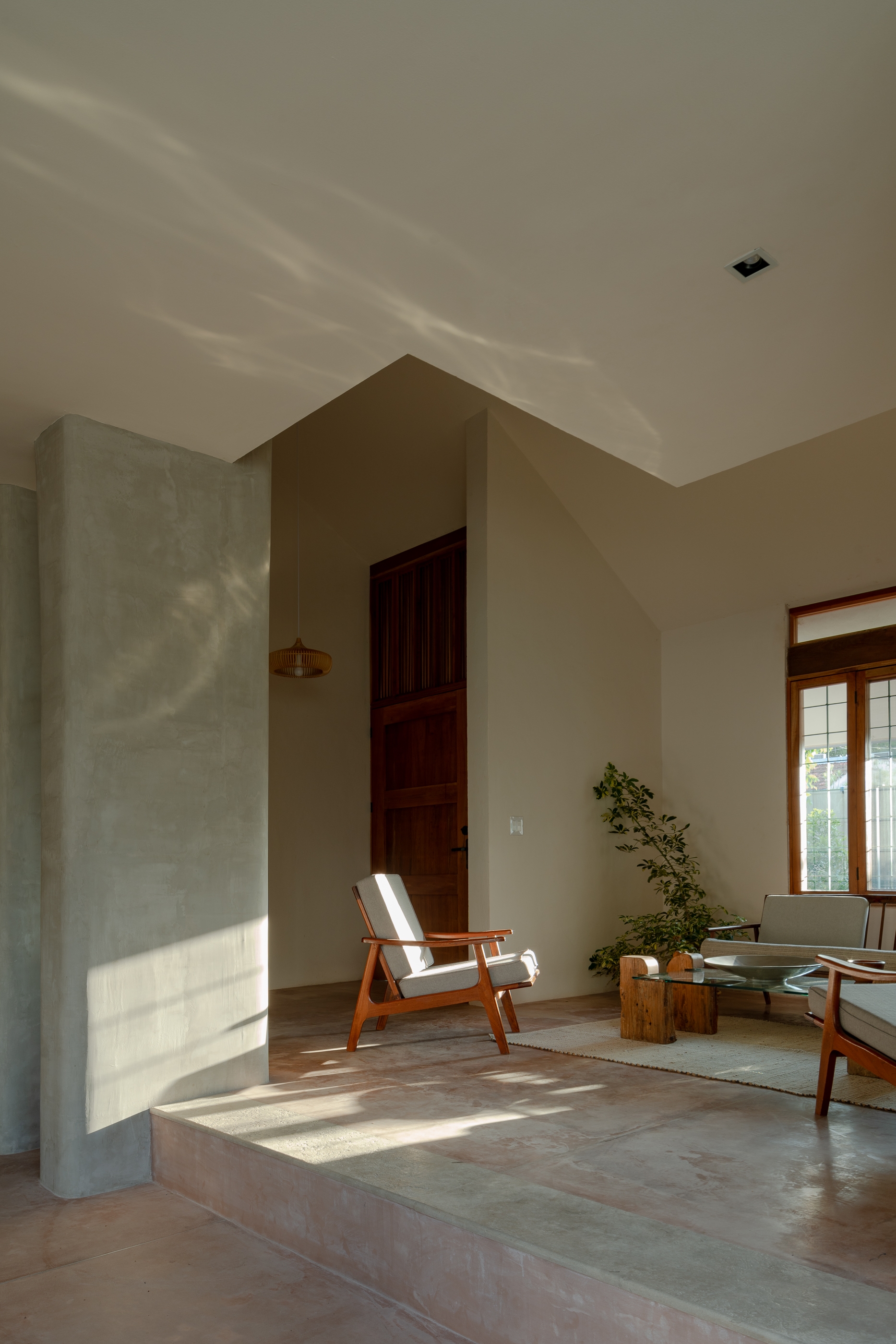 Certain architectural elements, such as some ironwork windows and doors, entrance columns, and concrete cubes on the terrace were preserved, uniting the old with the new.