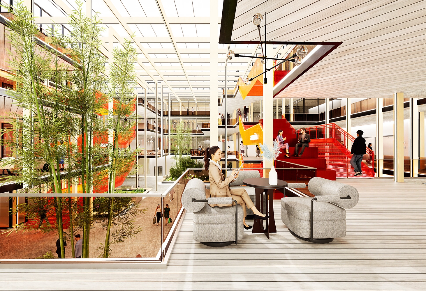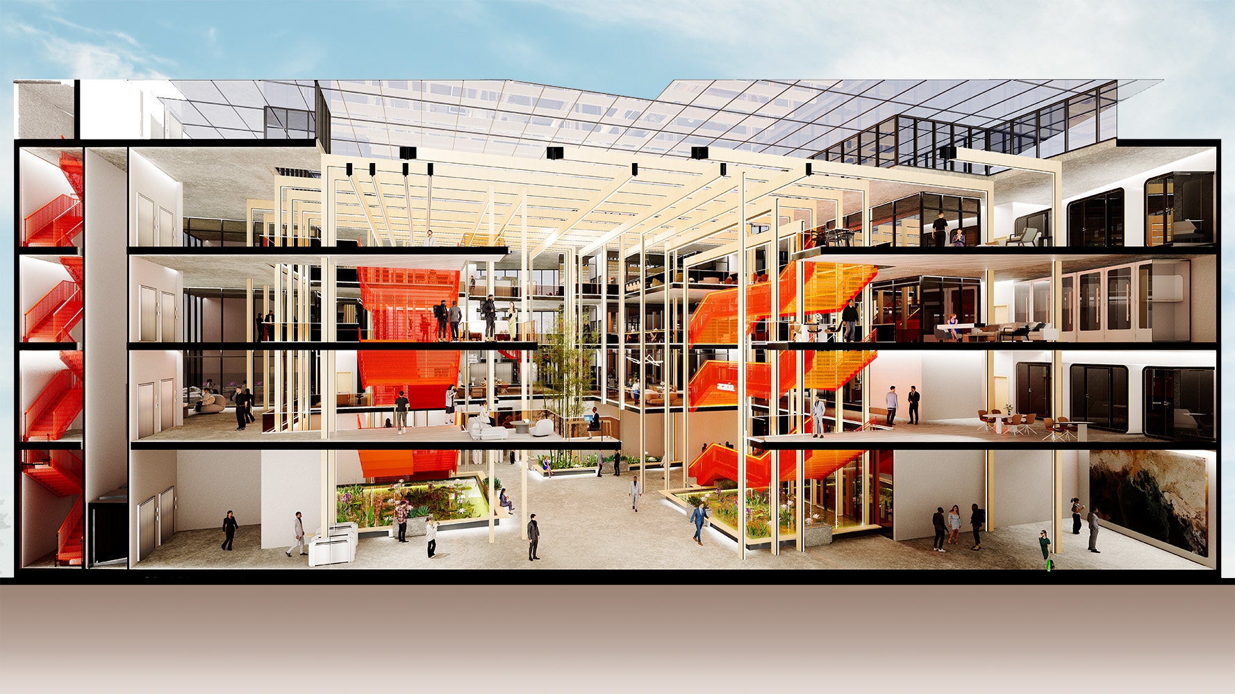 Acacia reimagines community by integrating academic, residential, and professional spaces into a vibrant ecosystem. At its heart is a dynamic atrium, where students, entrepreneurs, and professionals connect organically. Private offices offer focused workspaces while remaining visually linked to student lounges and incubator spaces, fostering inspiration and collaboration without disruption.