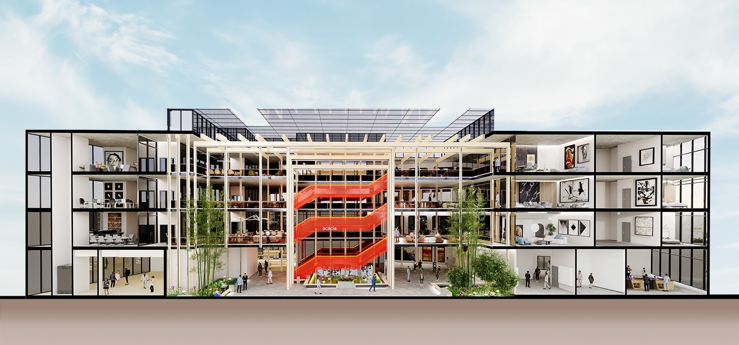 This innovative facility combines state-of-the-art workspaces, student housing, and lodging for visitors, creating opportunities for interaction and growth. Students engage with business leaders, unlocking career opportunities, while professionals and start-ups benefit from a talent-rich environment. Serving global markets in art, finance, and real estate, Project Acacia is a beacon of innovation, collaboration, and future success.