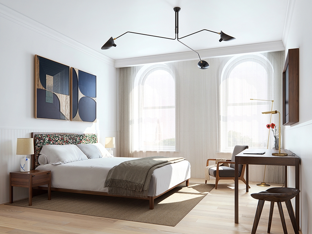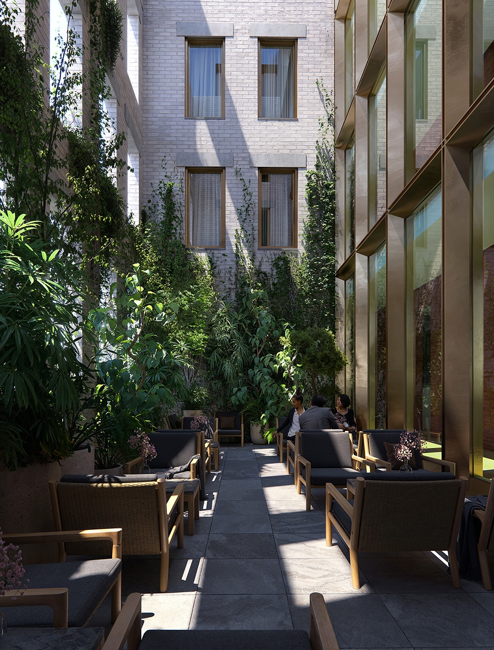 Guest suites will comprise the upper floors of the formerly industrial Post building, with additional guest rooms, amenity areas and the main corridor located in the companion tower. A large, open void in the addition brings air and na