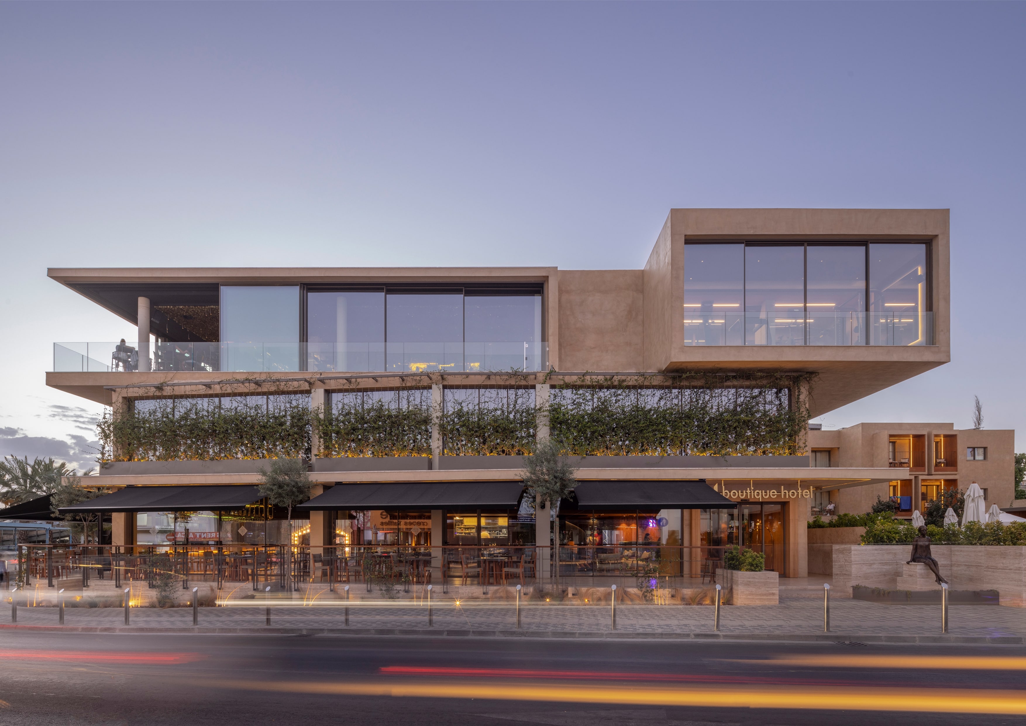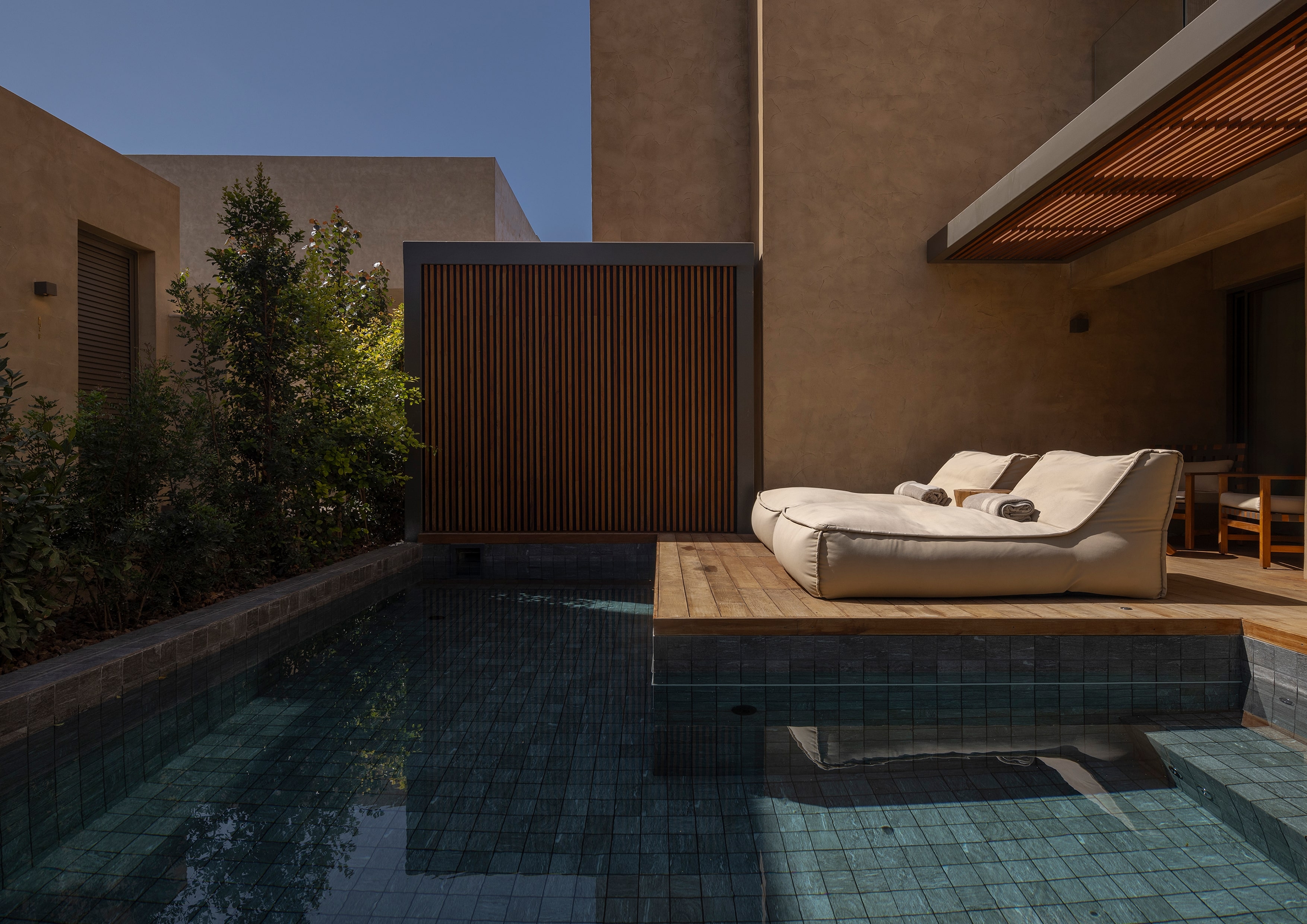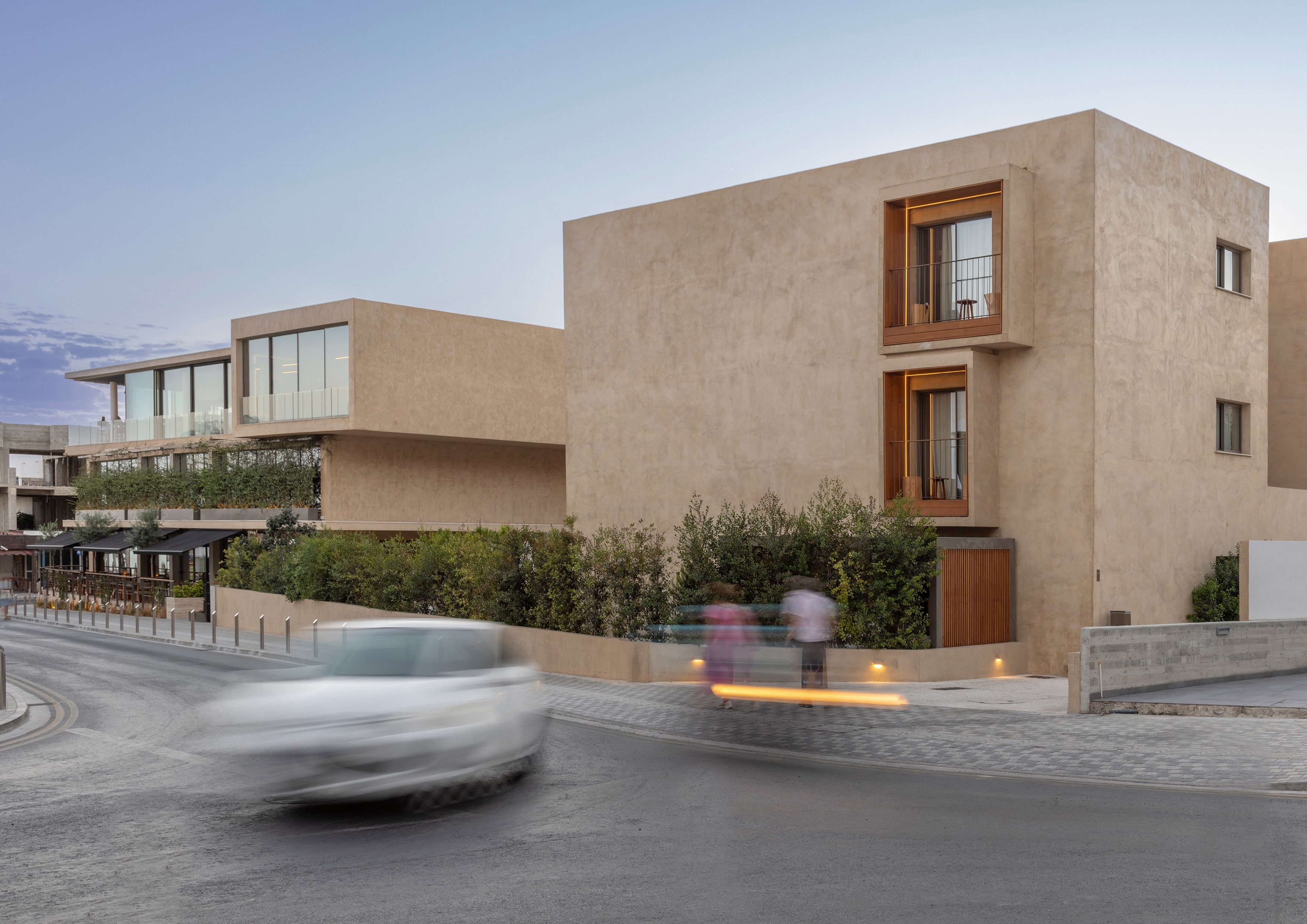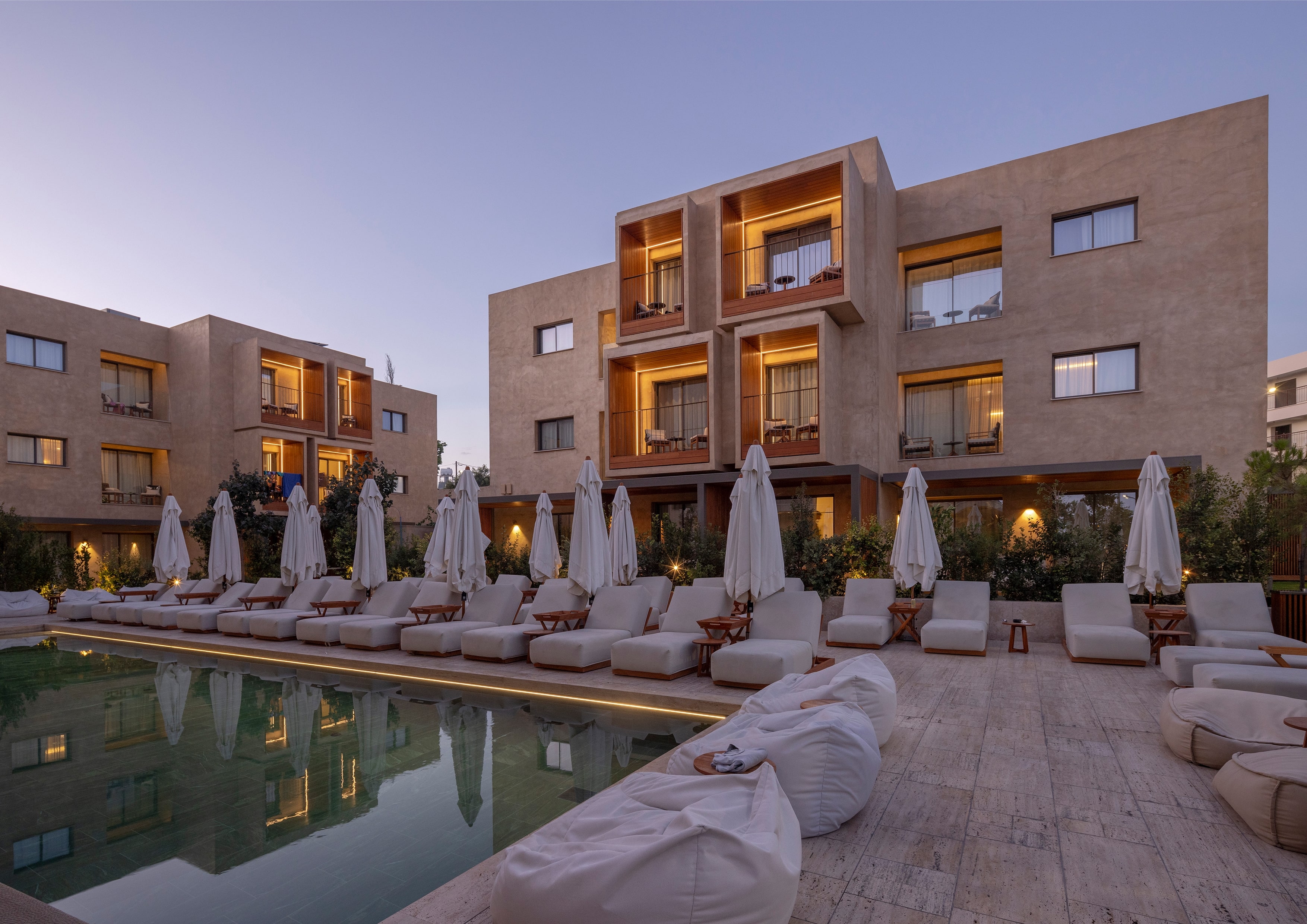 The M Boutique Hotel reimagines a 1980s seaside complex into a contemporary, design-led destination that embodies modern Cypriot hospitality. The 77-room hotel blends functionality and refined luxury through a palette inspired by nature and local textures. Once defined by white plaster facades and minimal character, the complex has been revitalised into a cohesive architectural landmark. Two renovated wings integrate with a new central building, creating a dialogue between old and new. Original features such as circular staircases with fluted walls were preserved, while raw concrete, earth-toned plaster, and warm wood details establish a calm, grounded aesthetic. The new building forms the social heart of the hotel, hosting the reception, restaurant, panoramic bar, spa, and gym, spaces designed for connection and wellbeing. Guest rooms balance intimacy and elegance, with select suites offering plunge pools and shaded terraces framed by timber pergolas. Natural materials, soft lighting, and lush landscaping create tranquillity, while the play of light and shadow enhances texture and form, reflecting Cyprus’s warm, coastal atmosphere and timeless charm.