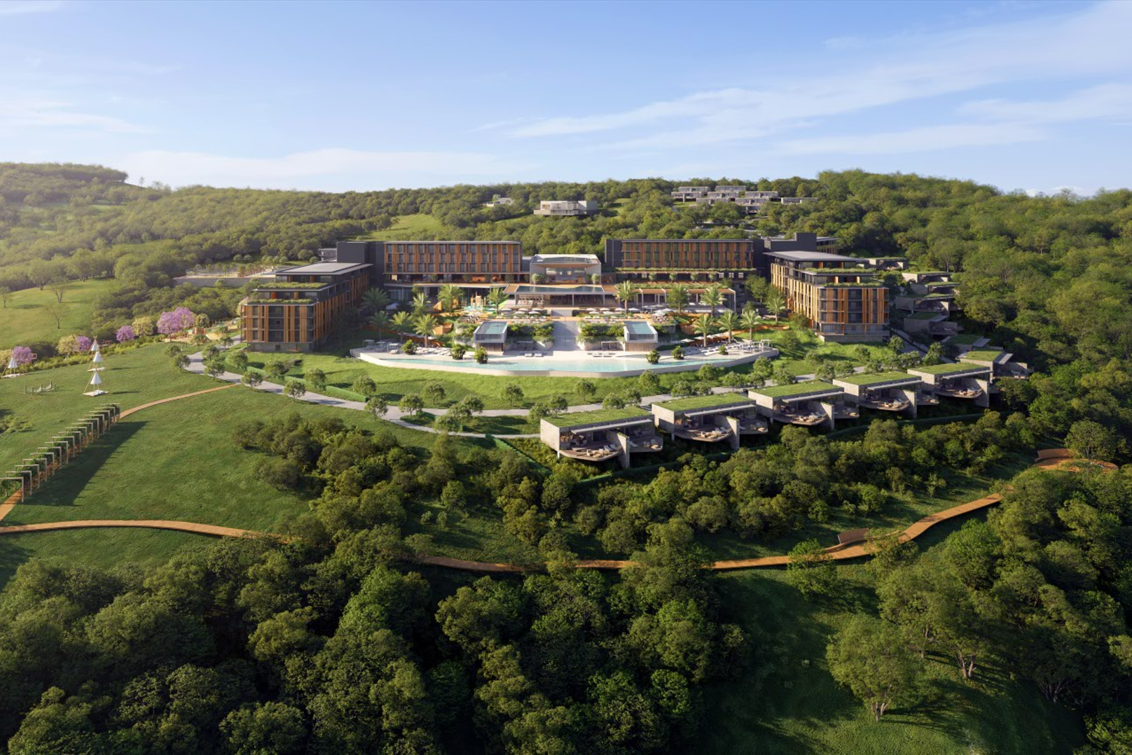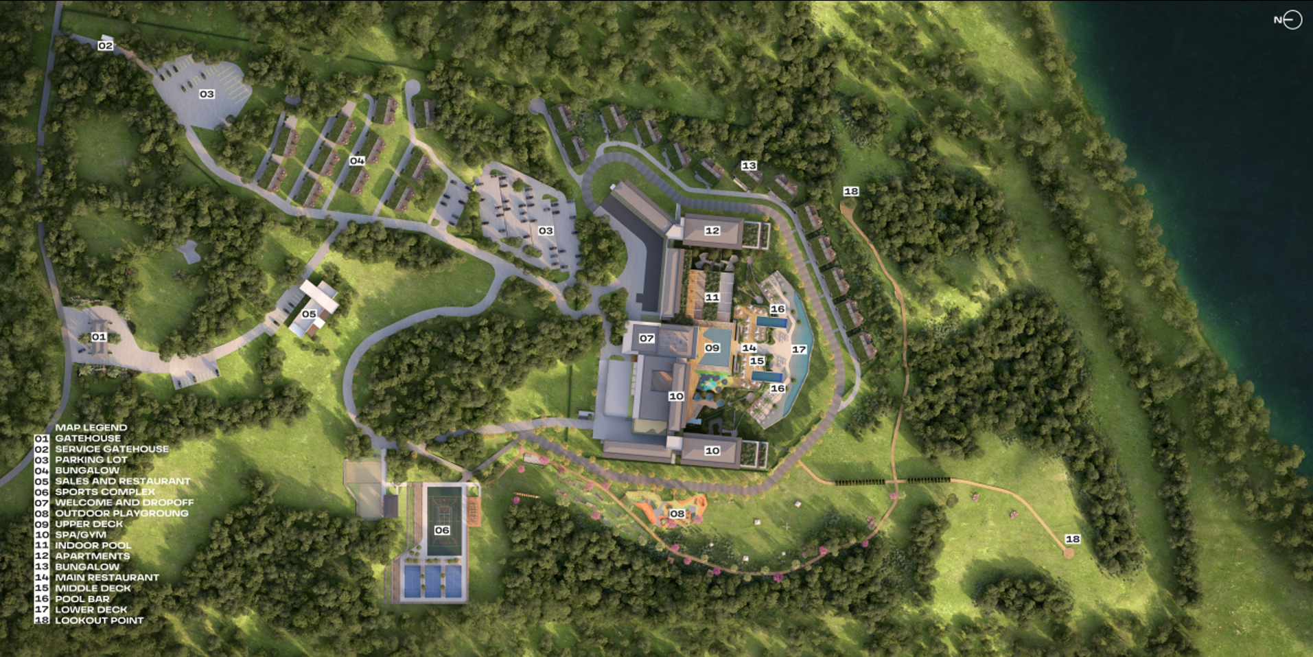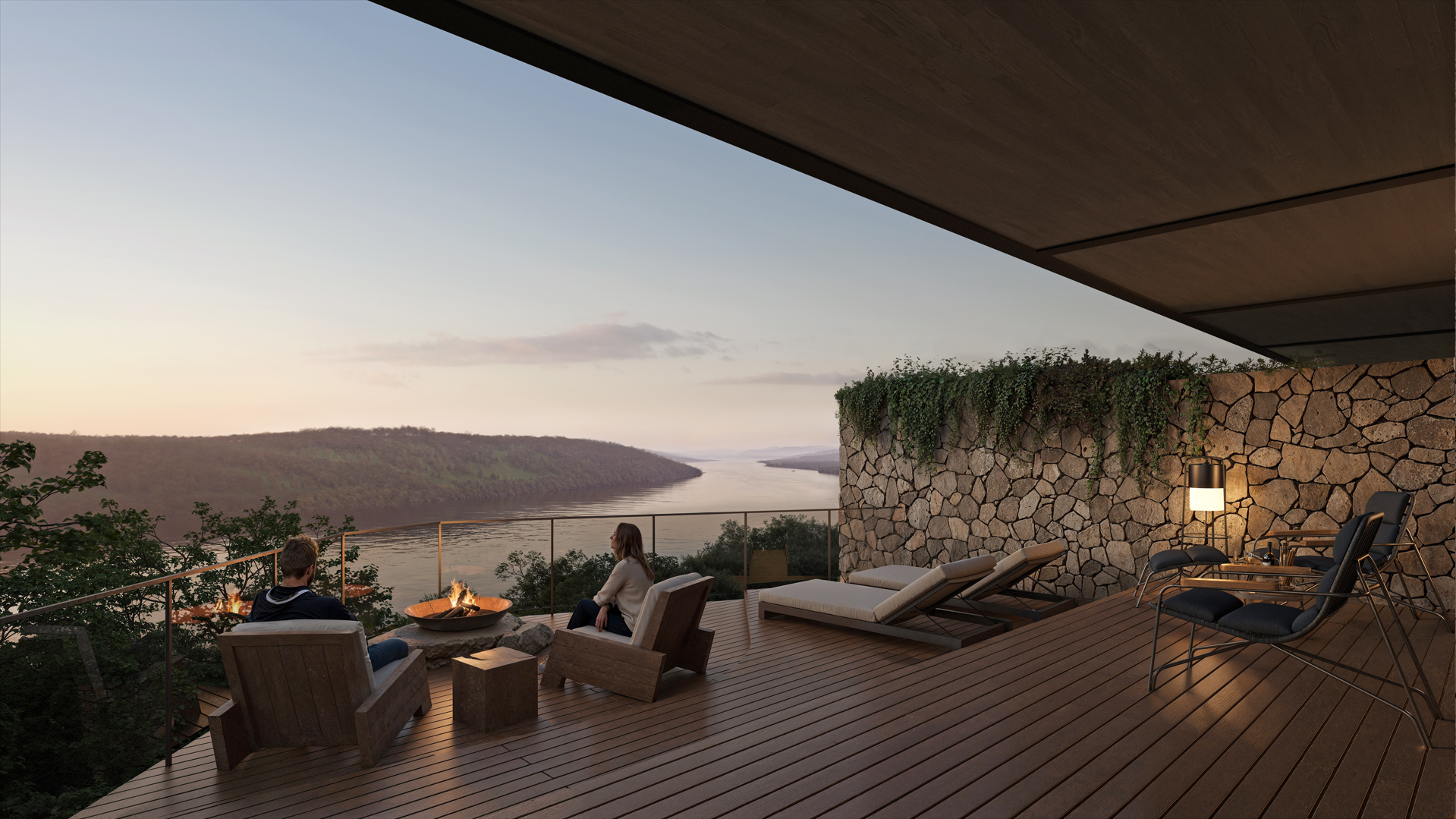 Costana is a sensorial retreat set above the Uruguay River, along the Brazil-Argentina border, in a region marked by Guarani heritage and Jesuit mission history. Despite its cultural and natural richness, the area lacks high-end hospitality infrastructure that reflects its identity. The project addresses this gap through architecture that respects and reinterprets local traditions. Inspired by vernacular costeiros—riverside huts—the design avoids pastiche, translating their spatial intelligence into elevated terraces and a continuous wooden skin. This element buffers thermal variations (3°C to 31°C) and prevailing winds while evoking the gaucho ritual of sharing chimarrão in shaded, semi-open spaces. The spatial strategy follows transatlantic ship logic: the upper deck houses reception and a panoramic restaurant; the middle contains indoor leisure areas; and the lower opens to cascading pools inspired by Salto do Yucumã. Private bungalows are embedded in terraced topography, ensuring immersion and privacy. A mirrored water ceiling crowns the restaurant, reflecting light and river imagery, blurring boundaries between architecture, nature, and memory.