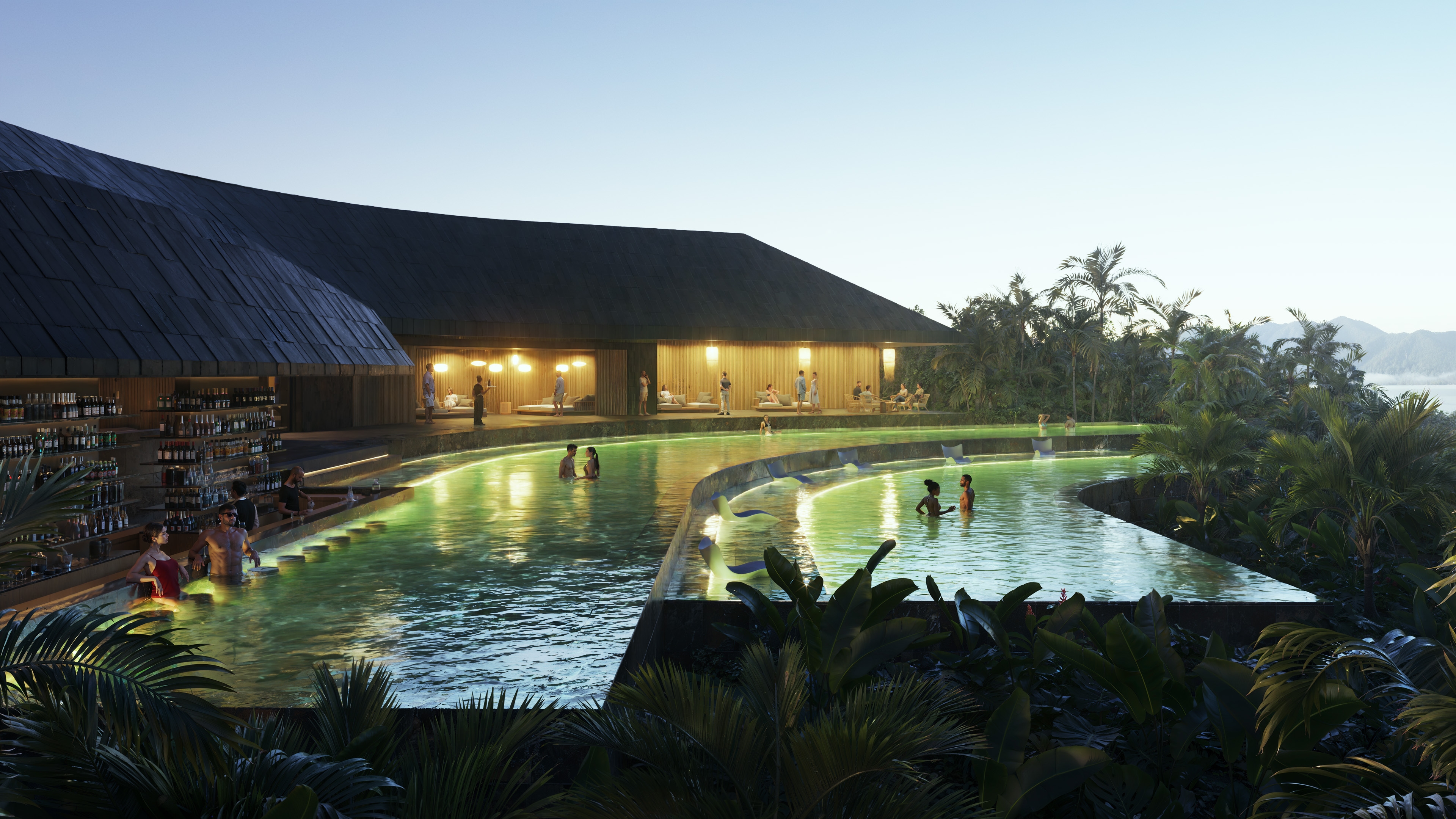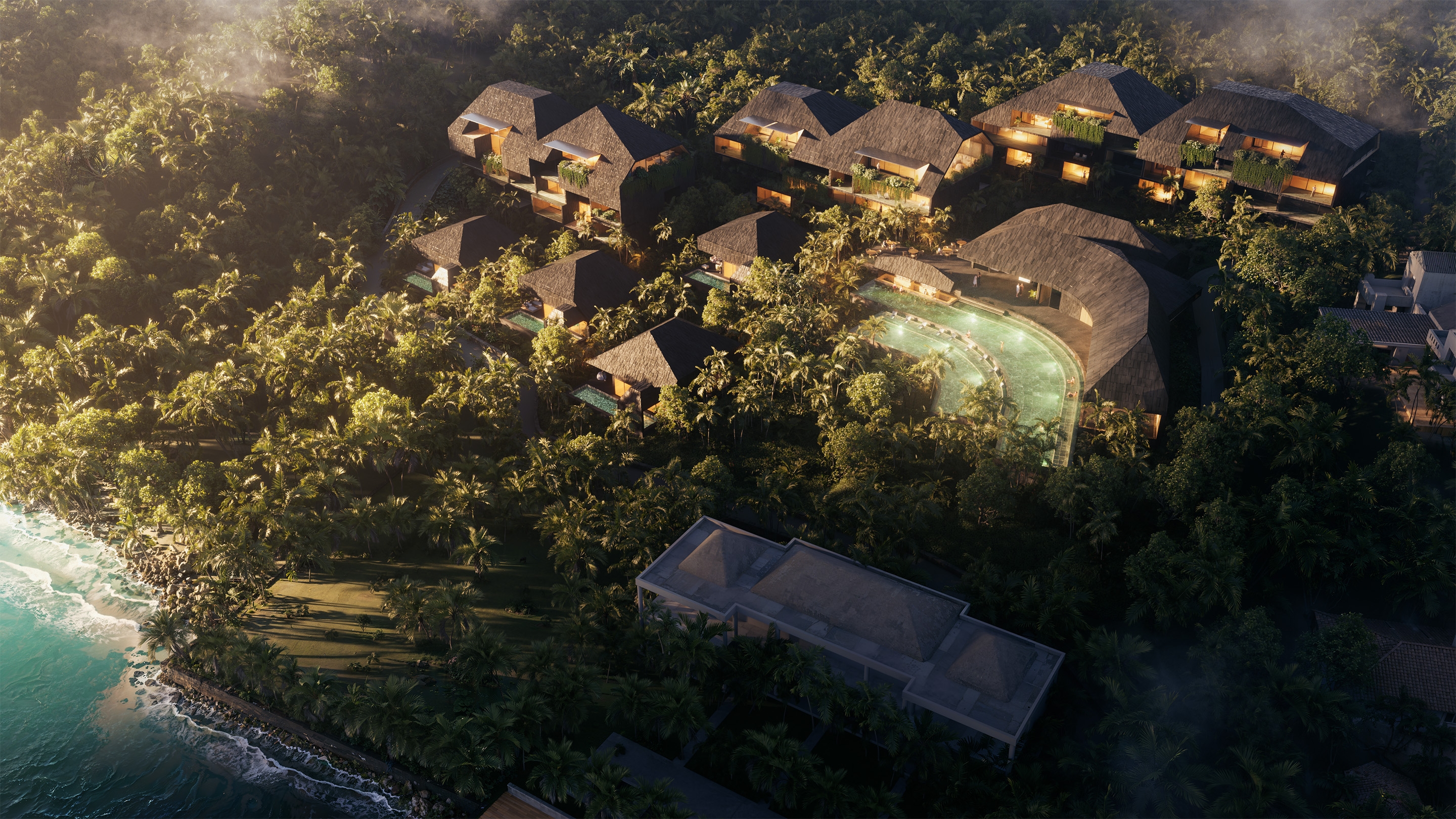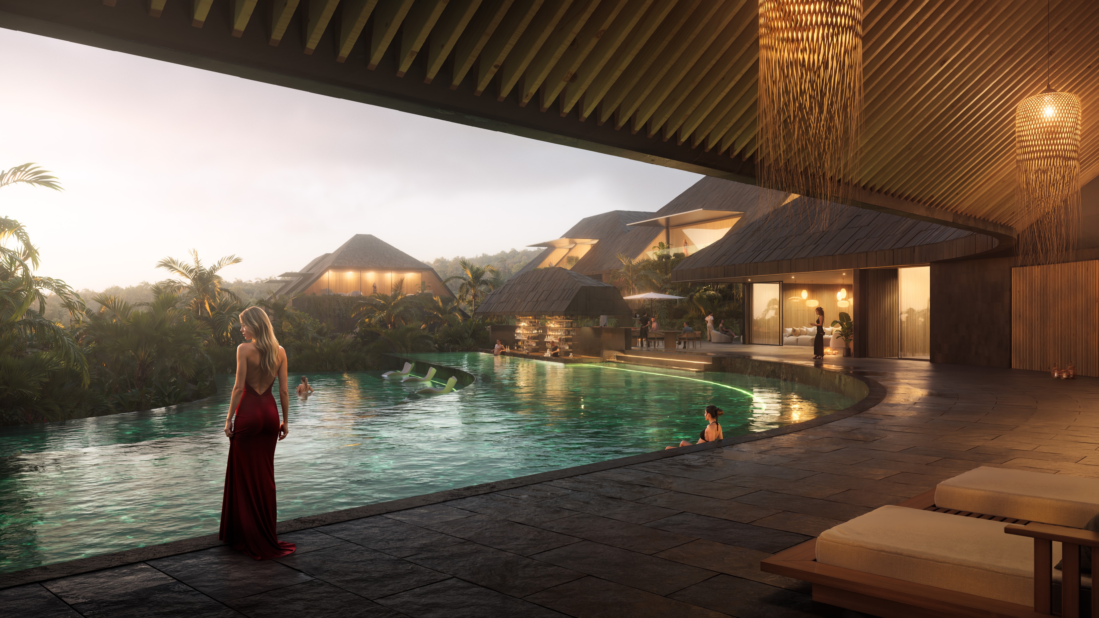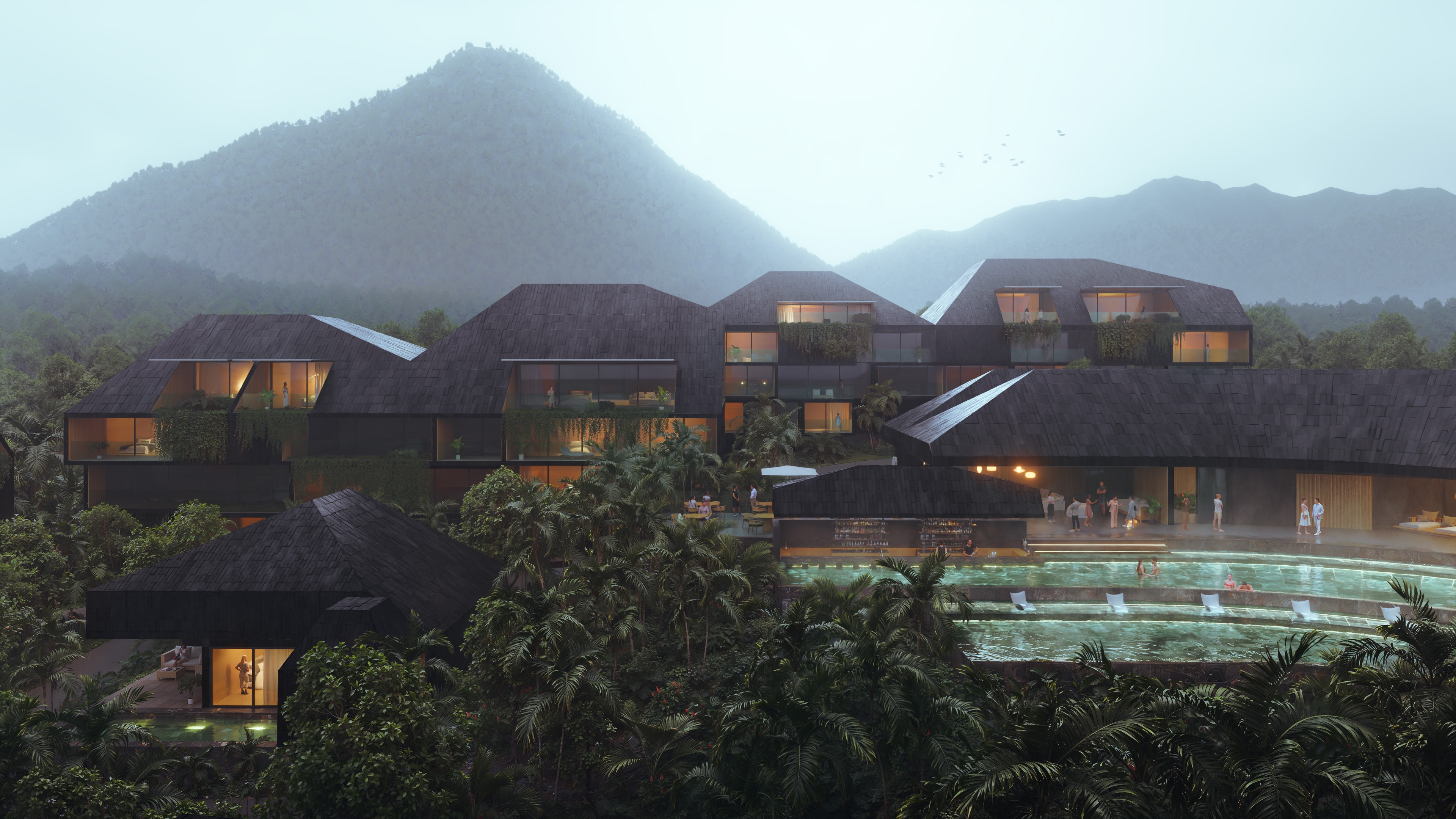 Rooted in Patterns’ vision of contemporary Balinese design, the resort steps with the natural terrain, translating the island’s volcanic formations into a series of terraced architectural volumes. Local materials such as volcanic stone, Balinese tiles, and native woods are reinterpreted with a refined contemporary sensibility, giving the project a distinct tactile presence.