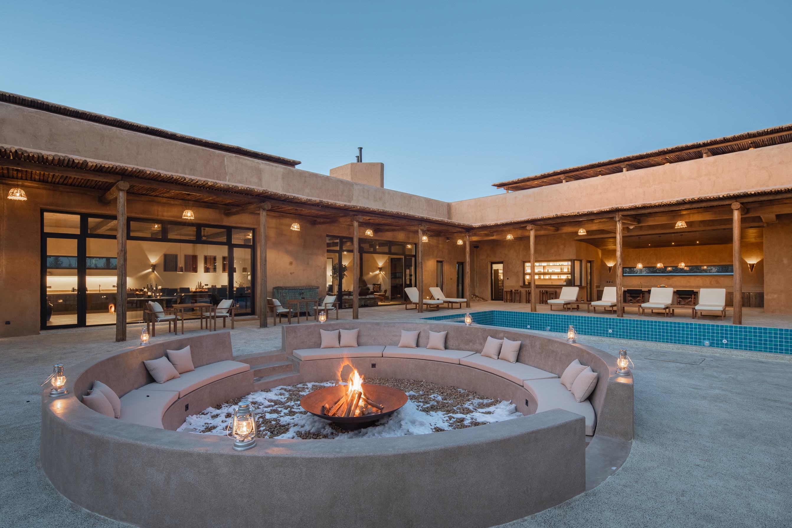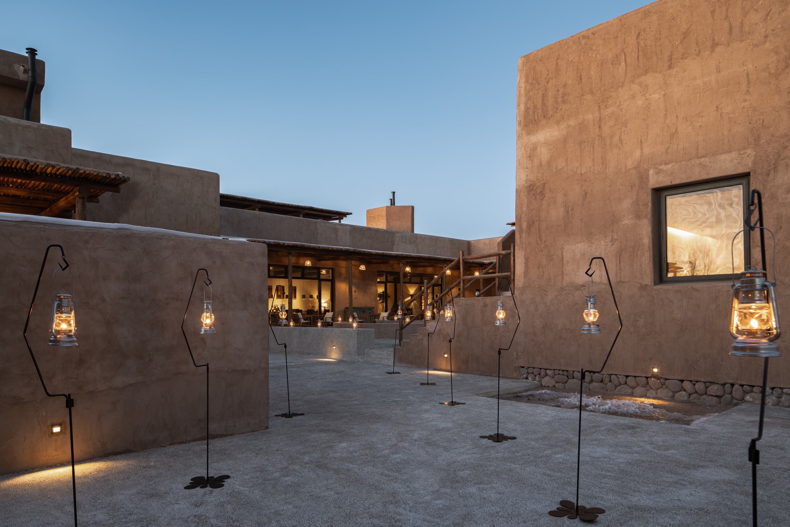 The architecture is a tactile celebration of the earth. Facades crafted from local soil and gravel aggregates feature rounded, organic corners, rejecting industrial precision for a "soft brutalism" that echoes the surrounding dunes. To counter the harsh climate, the layout forms an introverted courtyard oasis, sheltering a swimming pool and bonfire lounge from the wind.