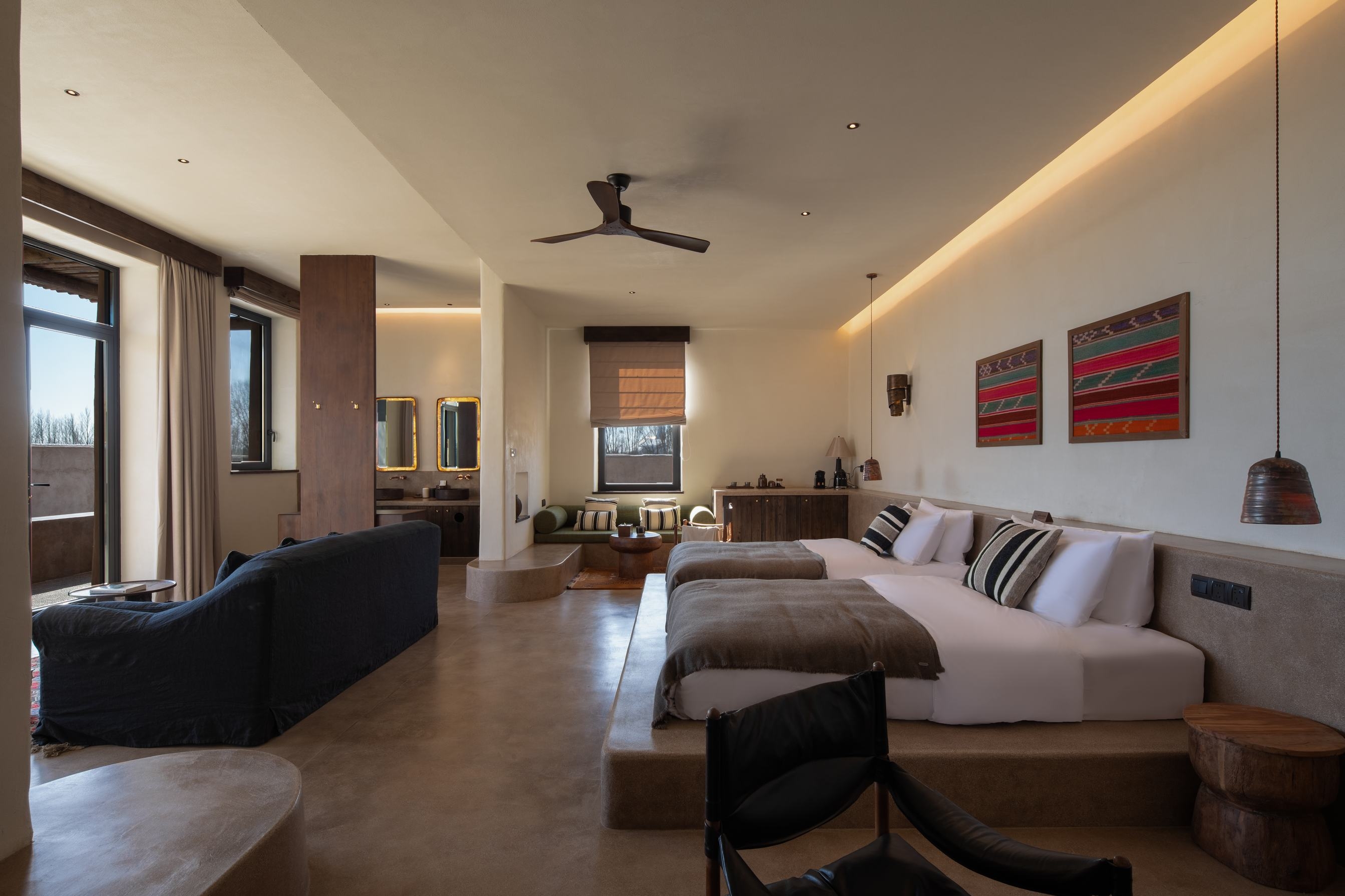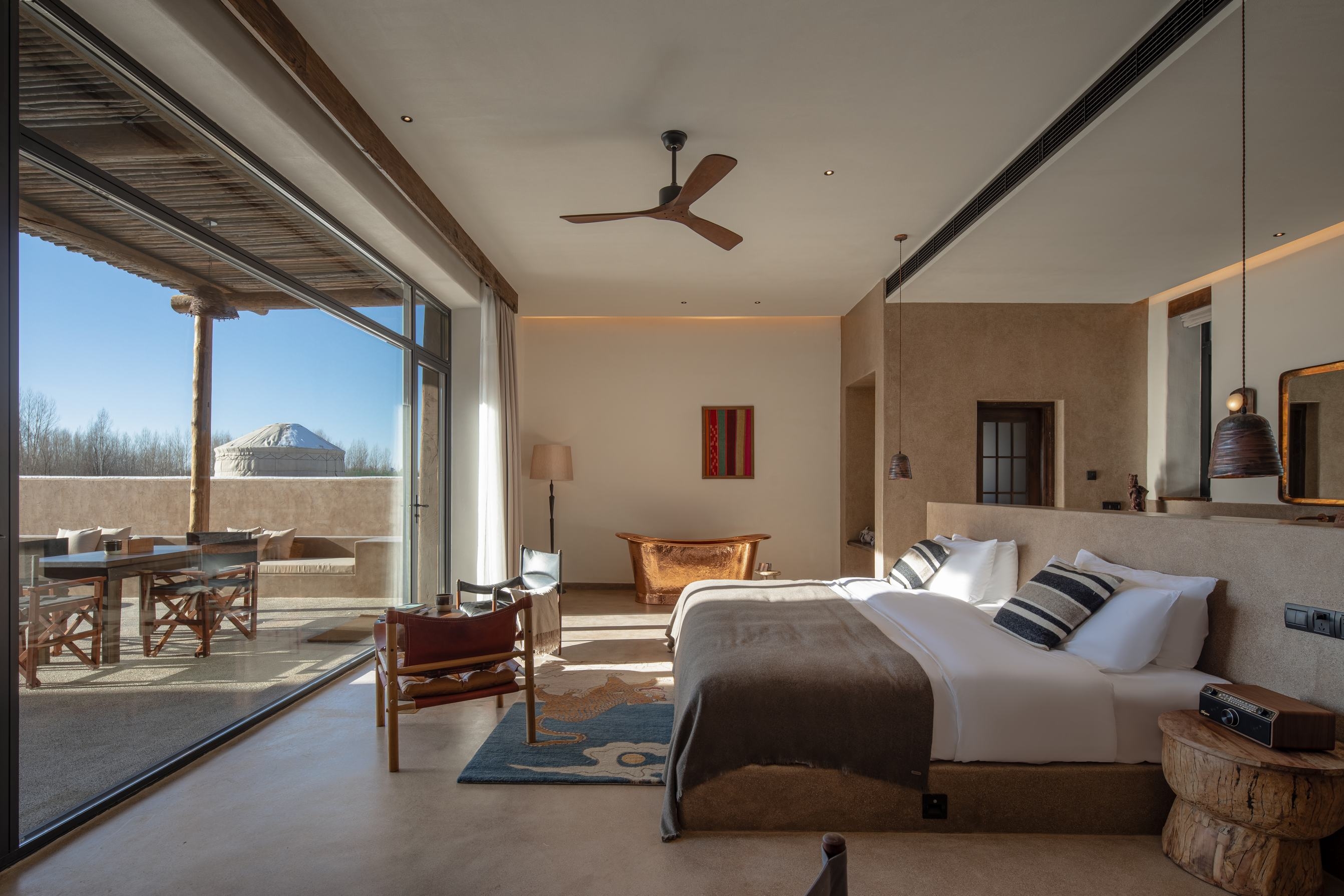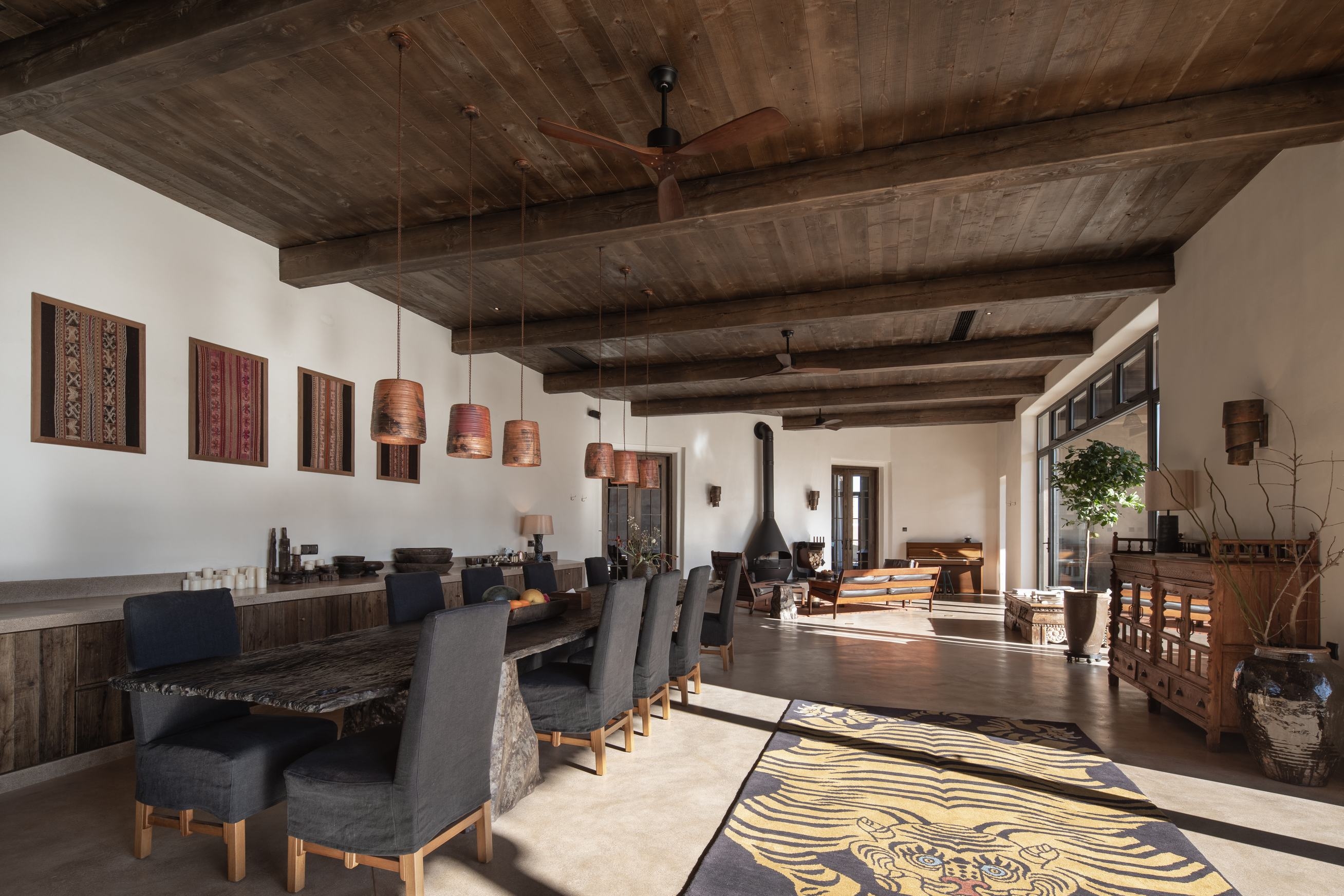 Interiors blur the line between hotel and museum. Polished concrete floors merge with earthen walls, creating a backdrop for a curated collection of global nomadic artifacts, heavy leather furniture, and cashmere textiles. Comprising just five expansive suites, the spatial organization prioritizes dignity over efficiency. It is not merely a hotel, but a spiritual exploration of culture and a celebration of living aesthetics on the historic Silk Road.