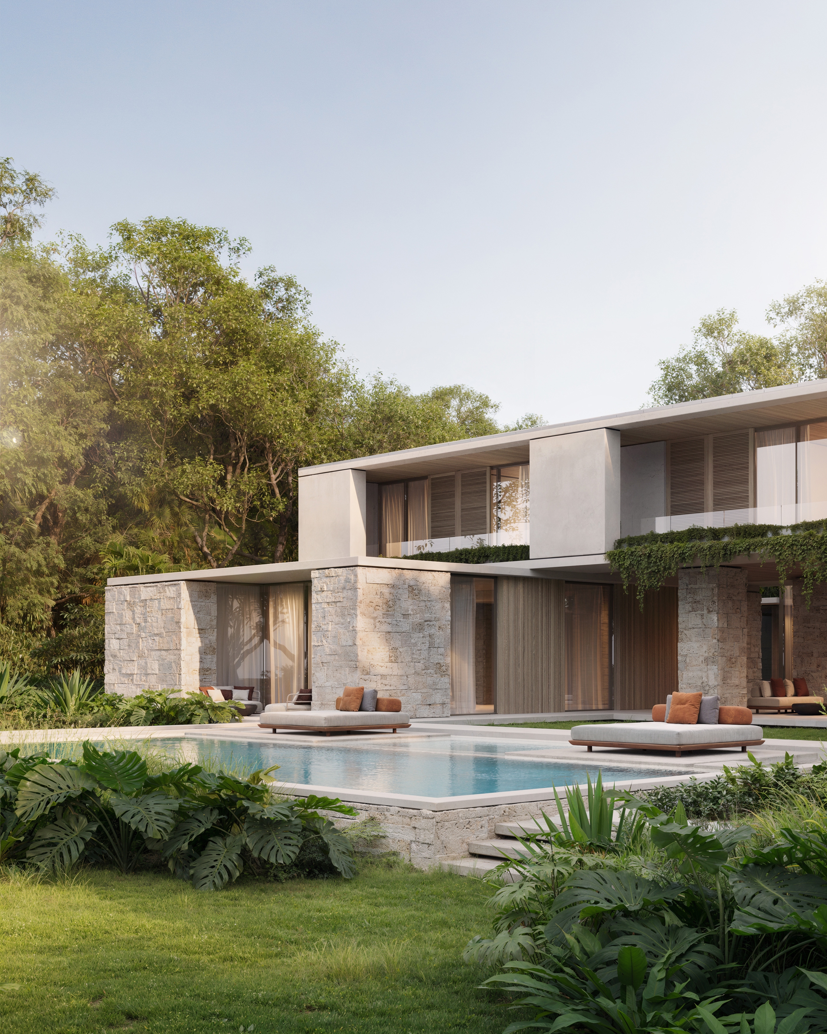 The design of Reef House focuses on the individuality of the clients, ensuring the space serves not just functional needs, but also their personal lifestyle and aesthetic preferences. Architects understand that each client has a unique relationship with their environment, and it’s essential to weave their individuality into the fabric of the home. The use of natural materials, such as warm stone, reflects this philosophy, grounding the home in a sense of permanence and connection to its surroundings. Light, elegant facades are complemented by carefully chosen outdoor furniture, providing a sense of openness and harmony with Coral Gables' coastal environment.
