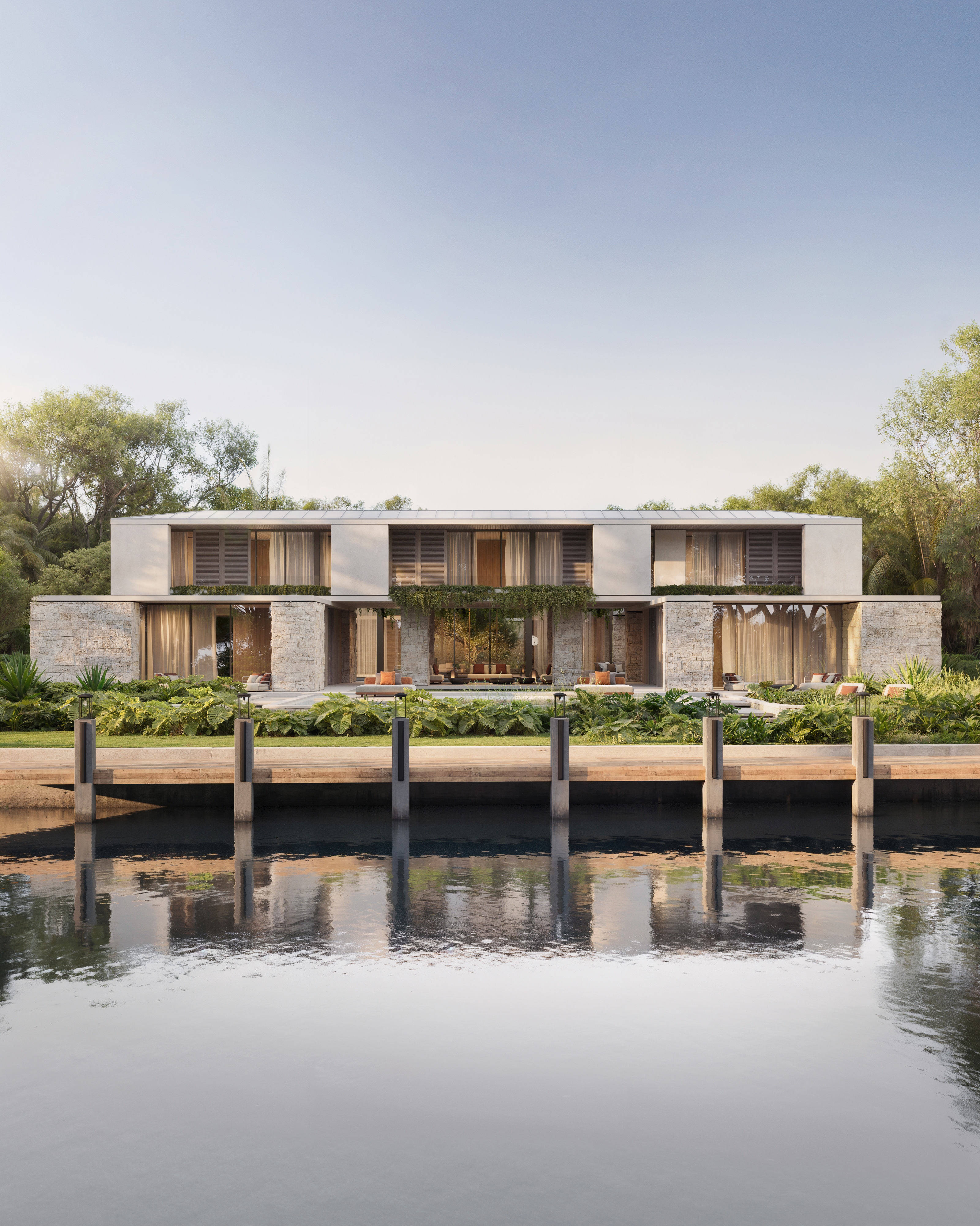 Reef House is a private residence located in the upscale neighborhood of Coral Gables, a vibrant area known for its Mediterranean Revival architecture and proximity to the tranquil Biscayne Bay. The design of this home respects the region’s rich architectural history while blending seamlessly with its lush, tropical surroundings. The custom-built pier connects the home to the water, reflecting the peaceful yet sophisticated atmosphere of the location.