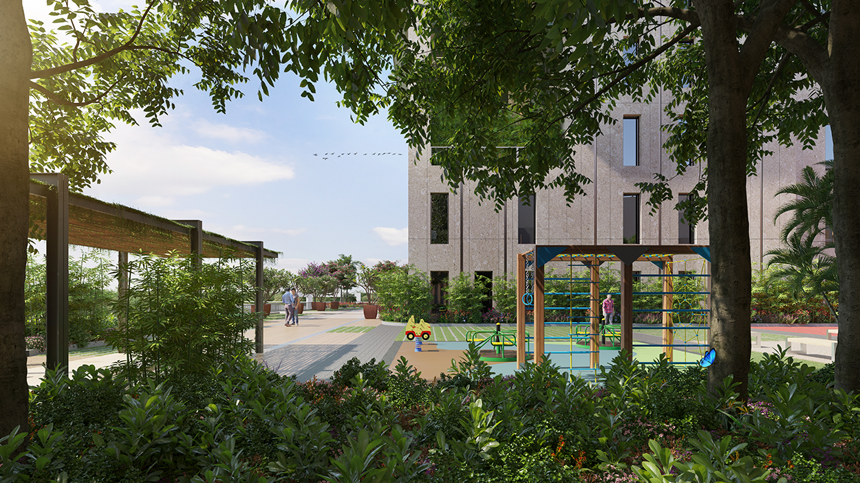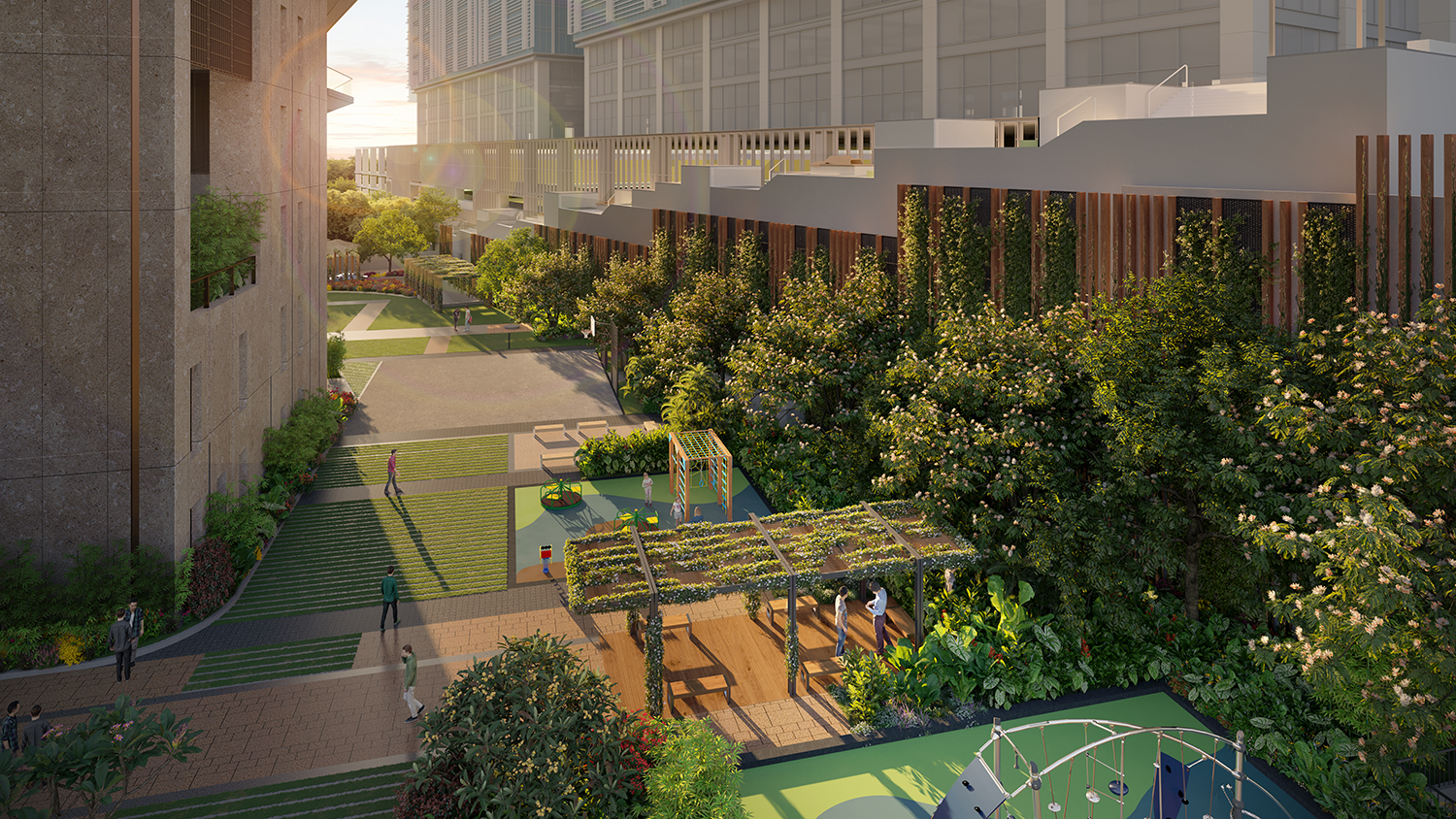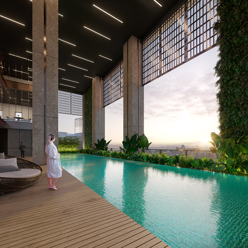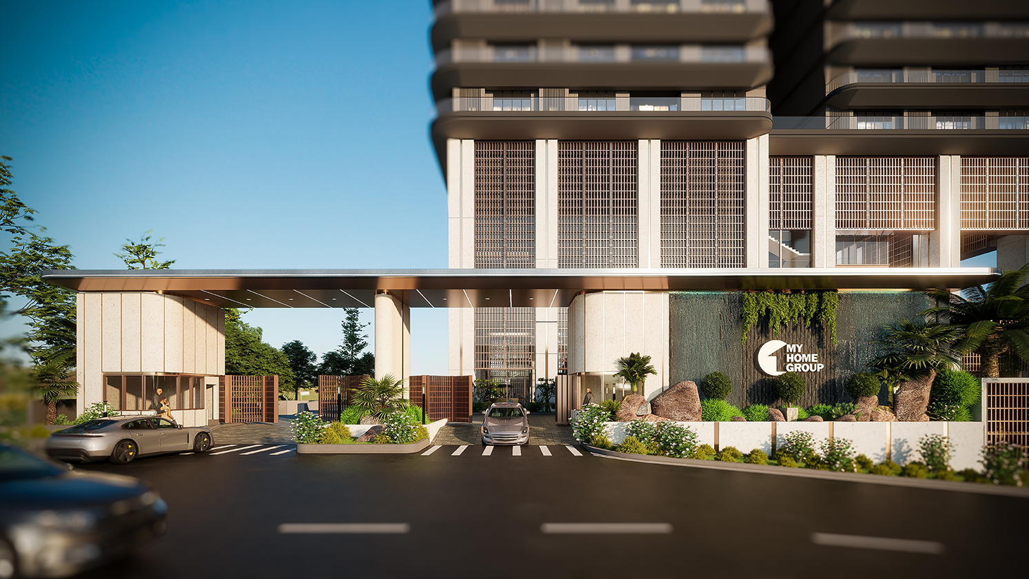 The project’s architectural design features amenities thoughtfully integrated into the building’s lower levels, with massing and shading strategies thoughtfully implemented through ESD analysis. Complemented with premium amenities on the terrace floors, including a helipad at the top, My Home 99 stand at an impressive height of 226 metres—an iconic landmark in the area.