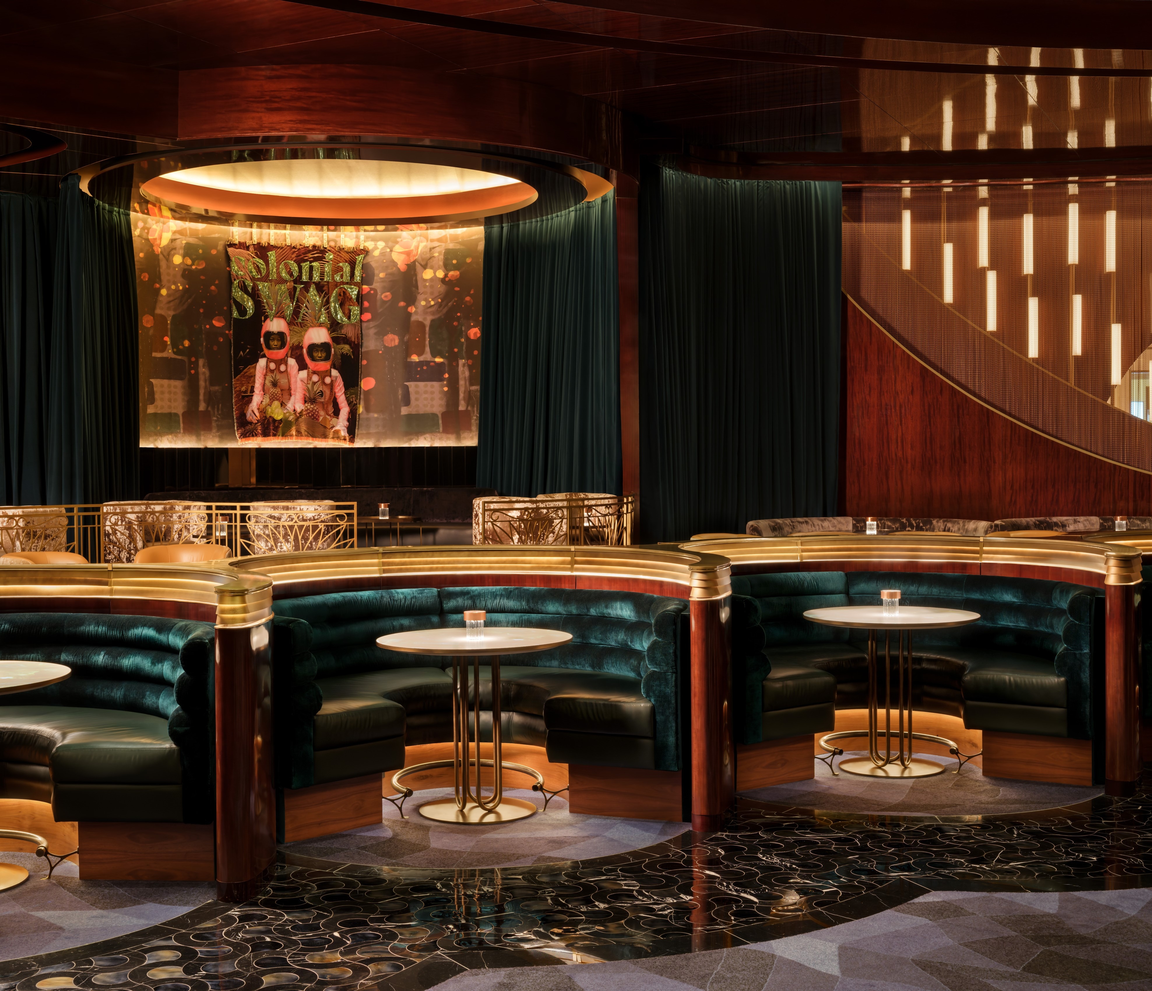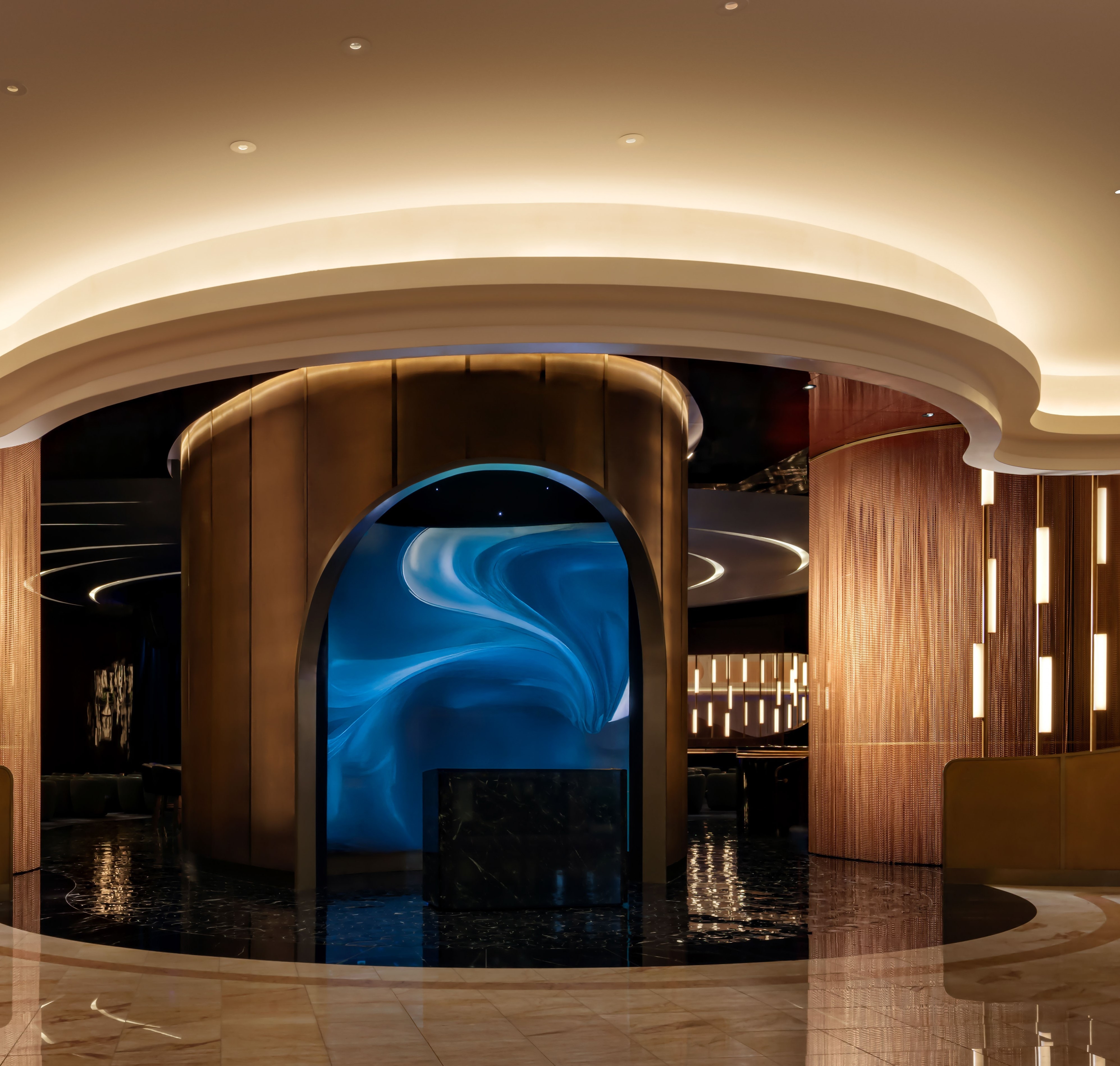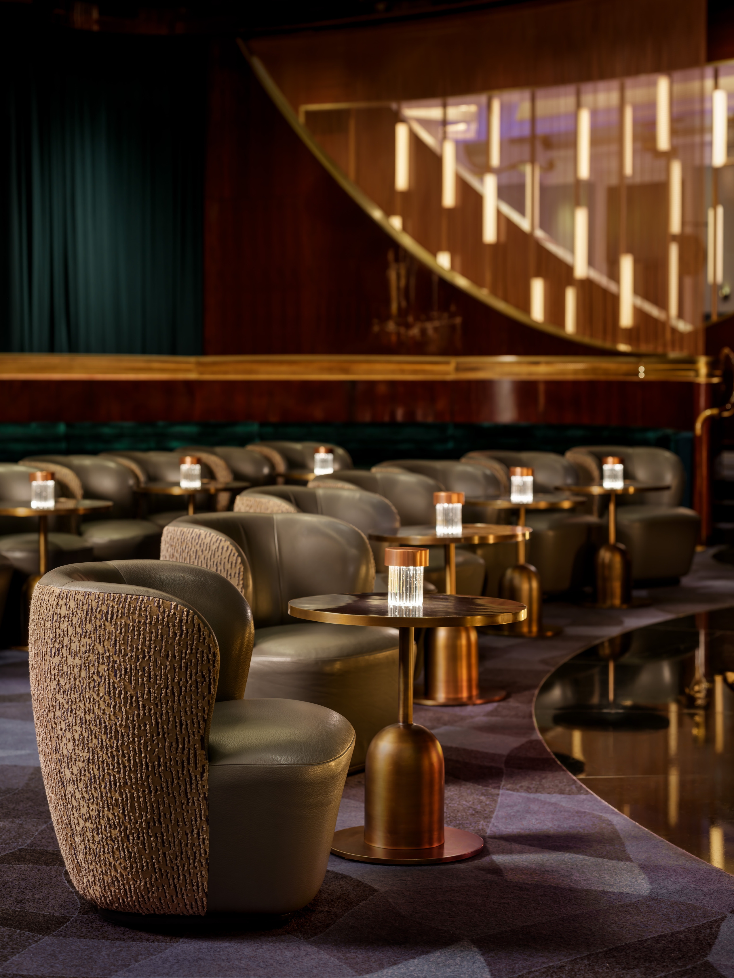 Designed to host “jazz & everything else,” Jon Batiste’s intimate jazz bar at Baha Mar captures the rhythm and vibrancy of Bahamian culture. What was once a gaming area has been completely transformed; 80% of the slot machines were removed to create an open, luxurious lounge filled with rich textures, curated art, and immersive light installations. Throughout the day, the atmosphere shifts effortlessly. Drapery and lighting transitions allow the space to move from a laid-back daytime venue to an energetic, late-night performance setting. Multi-level seating from tables and banquettes to VIP perches draw intimacy and buzz to every corner. An 11-foot curved LED screen marks the entrance, pulling guests in with dynamic motion and color. Inside, it’s all about mood, music, and connection — a soulful escape blending art, design, and sound.