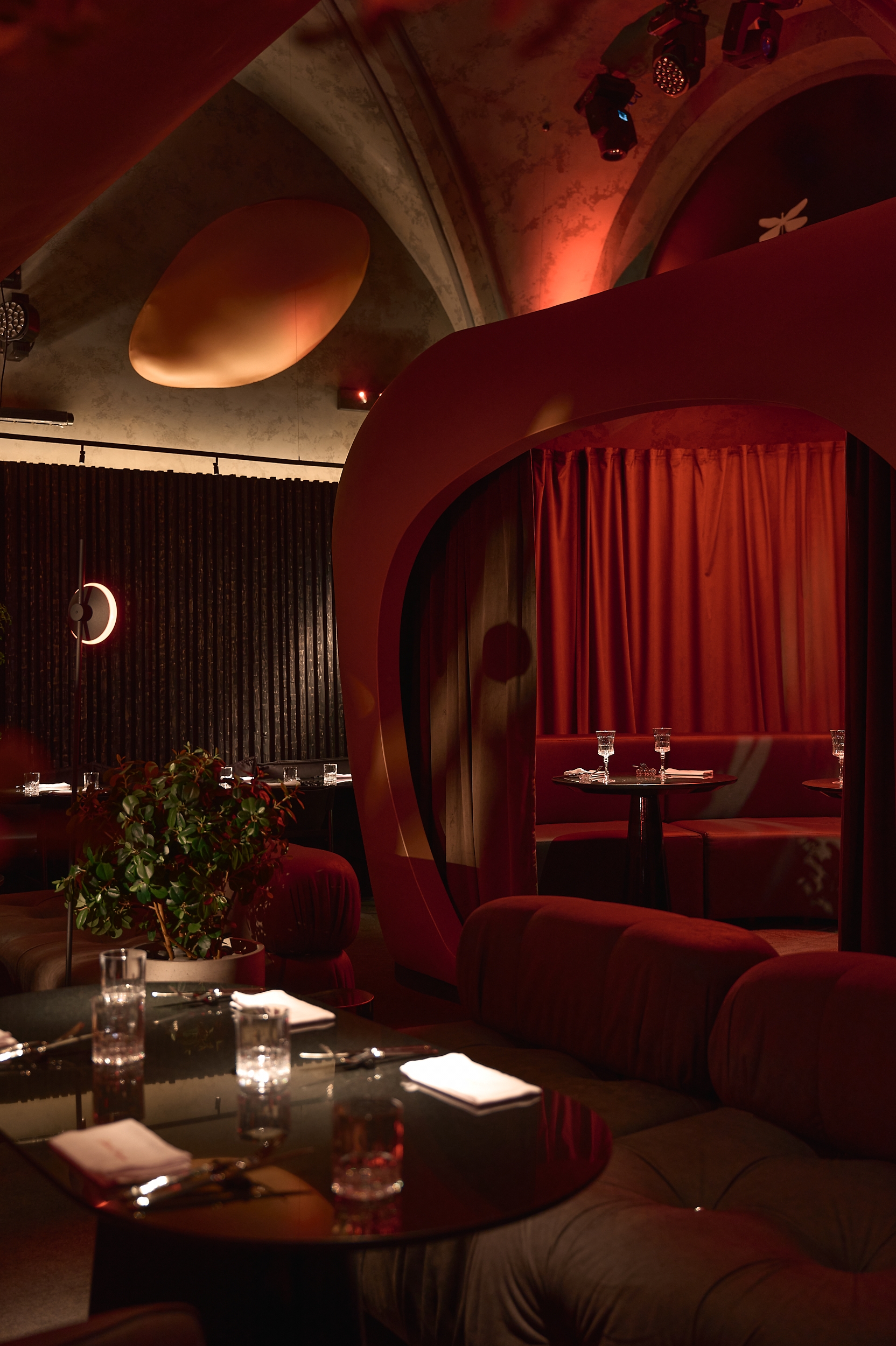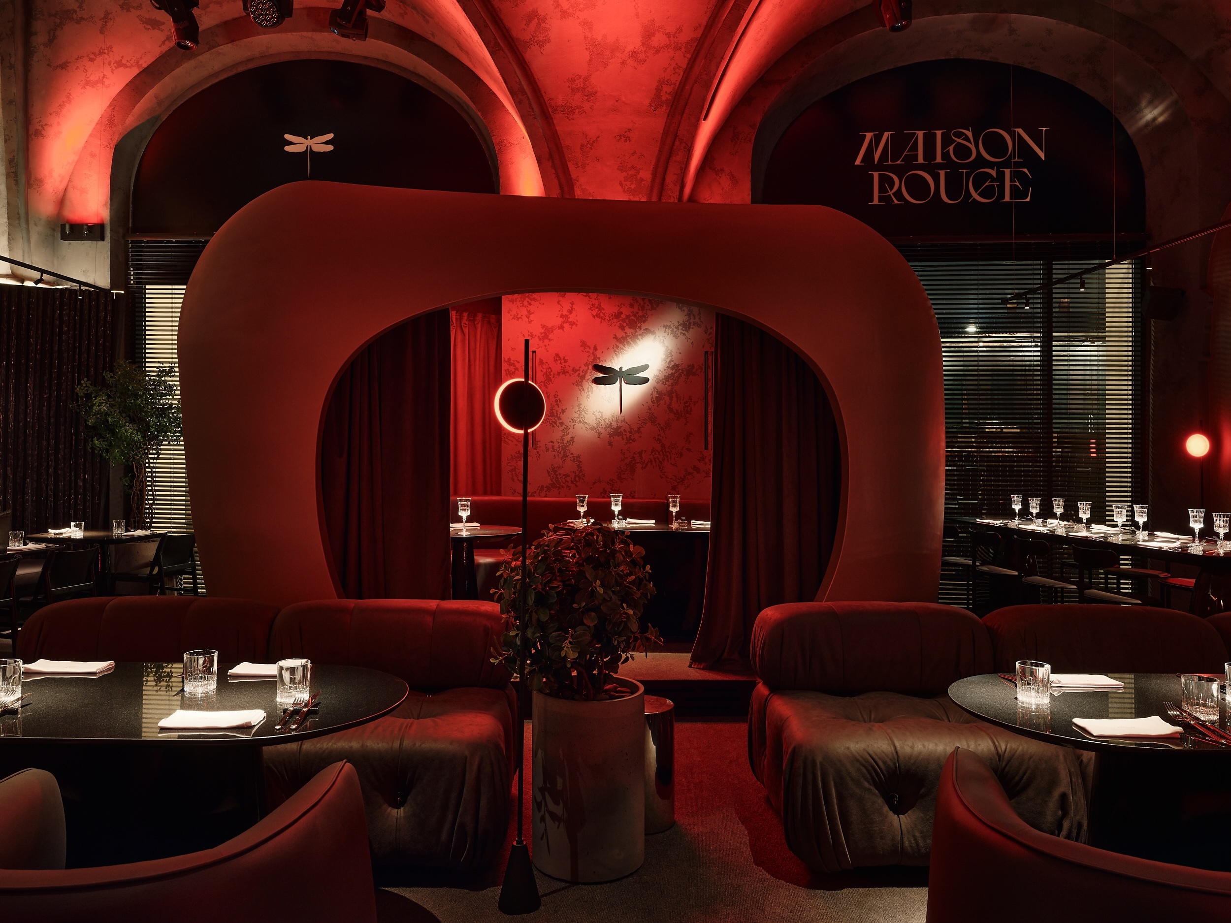 Maison Rouge is a multifunctional venue combining a restaurant, lounge and nightclub, located in a historic building in the centre of St. Petersburg that once housed the imperial stables. The project was conceived as a premium destination blending contemporary design with historic arches and panoramic windows.