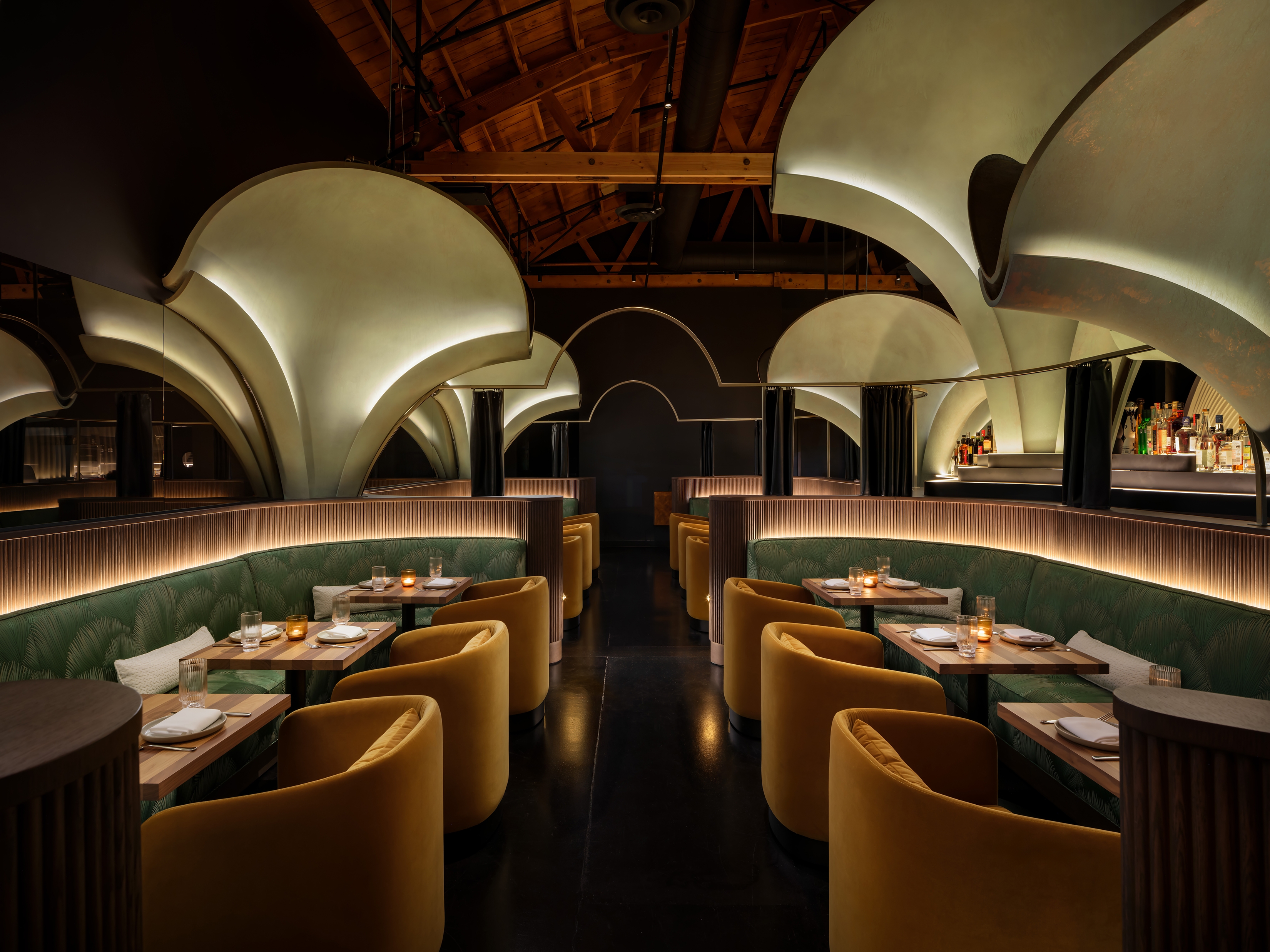 Lucia, designed by Preen, Inc., is a modern Afro-Caribbean restaurant in Los Angeles. The project innovates by juxtaposition. It is designed to be a Golden era referential show-stopper...a rich, immersive and opulent experience for dining, while at the same time, creating breathing room that speaks to nighttime island culture.