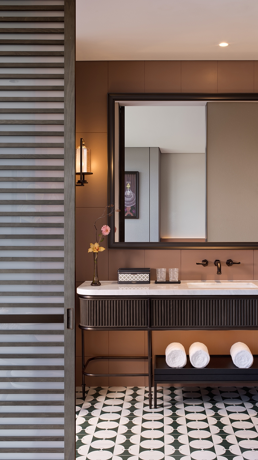 Mumian Shanghai Expo, The Unbound Collection by Hyatt, is situated in Pudong New Area, adjacent to the Shanghai World Expo Exhibition Center. As a distinctive property under the Unbound Collection by Hyatt, the hotel combines personality with local cultural character. The Unbound Collection emphasizes “individual narrative and unique experience,” and so we drew on the inspiration of a “mansion’s secret garden” in our design, integrating the distinctive Shikumen architectural aesthetics of Shanghai, Art Deco style, and modern minimalism to craft a “New Shanghai” urban salon blending historical warmth with contemporary vitality.
