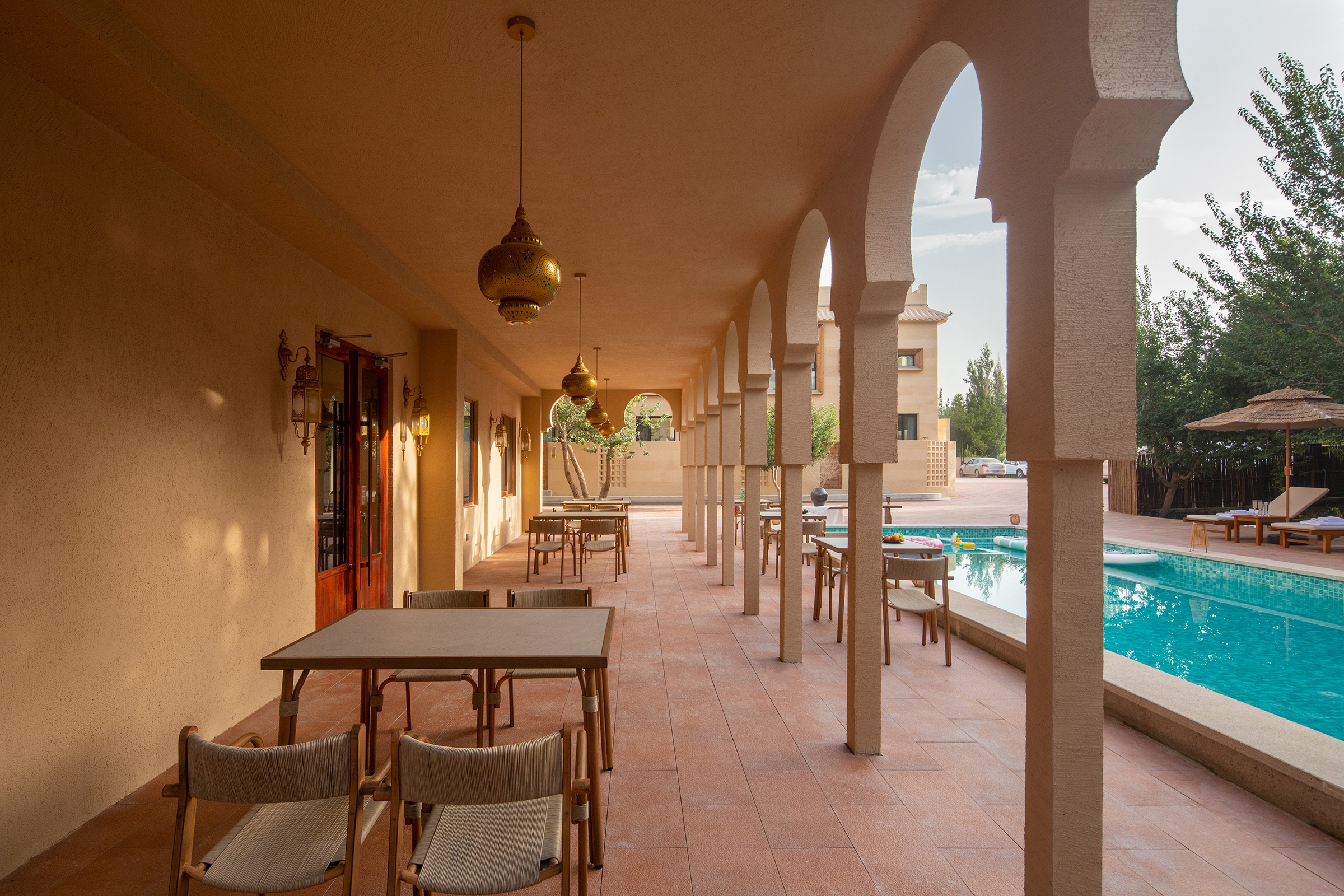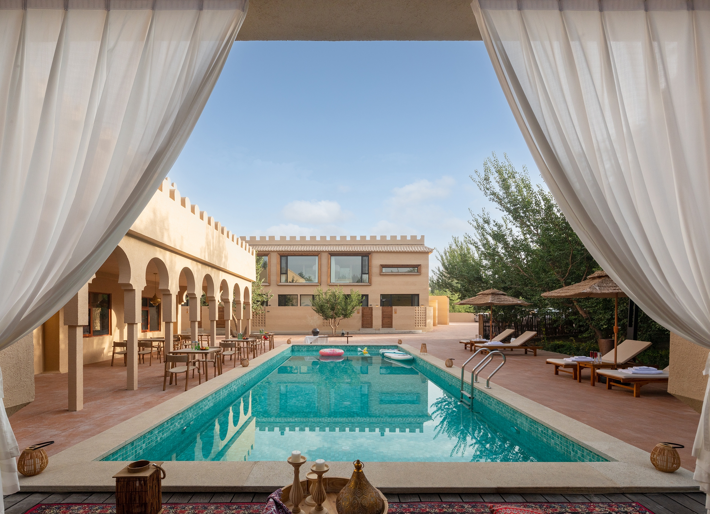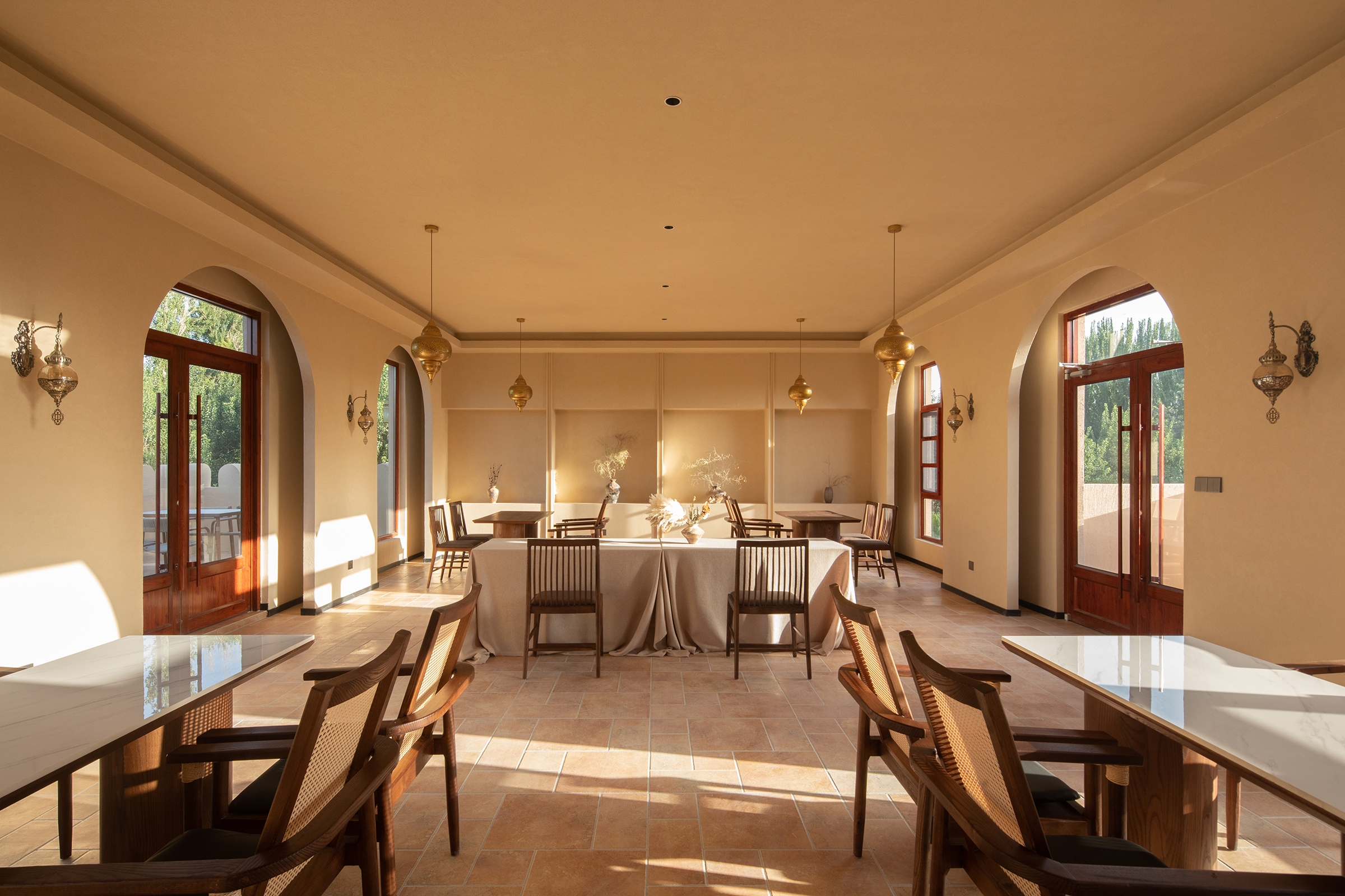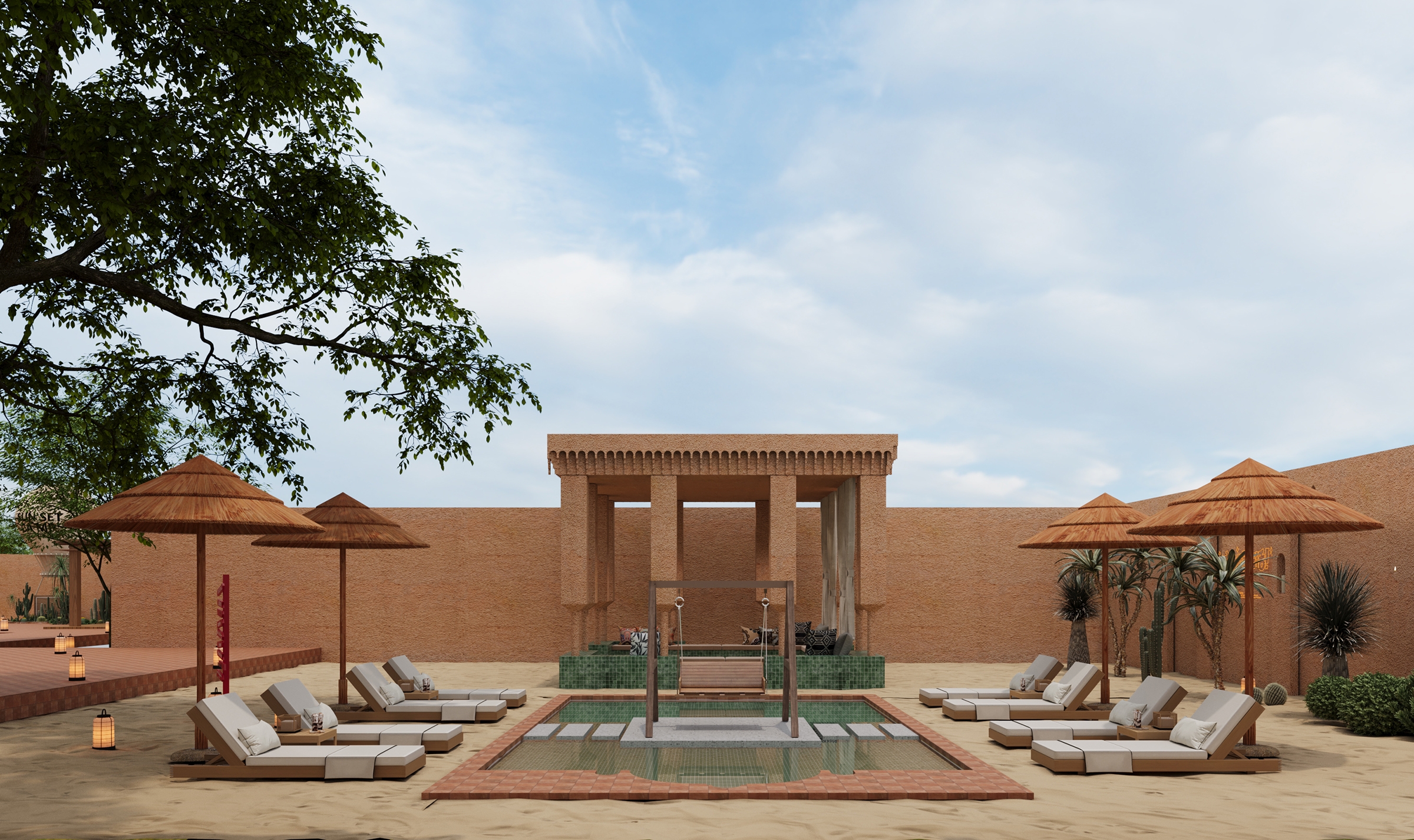 When the profound heritage of Western Regions culture meets the majestic Gobi Desert, a poetic resort emerges, weaving nature, history, and modern living into one. Inspired by the forms and hues of the desert, the design transforms sand textures, light, and horizon lines into spatial language. The spiritual brilliance of the Mogao Grottoes and the nomadic spirit infuse the spaces with cultural depth and freedom. Light and shadow act as a poetic medium, turning each moment into a desert symphony of time. Local materials like rammed earth and sand allow the architecture to grow naturally from the land, while steel structures ensure stability in challenging terrain. Sustainable strategies—such as native planting, solar energy, and rainwater recycling—preserve the fragile ecosystem. The resort offers immersive experiences: stargazing, campfires, and panoramic views of Mingsha Mountain, blending cultural heritage with contemporary hospitality. It stands as a dialogue between humanity and nature, where technology and art coexist in harmony across the vast desert.