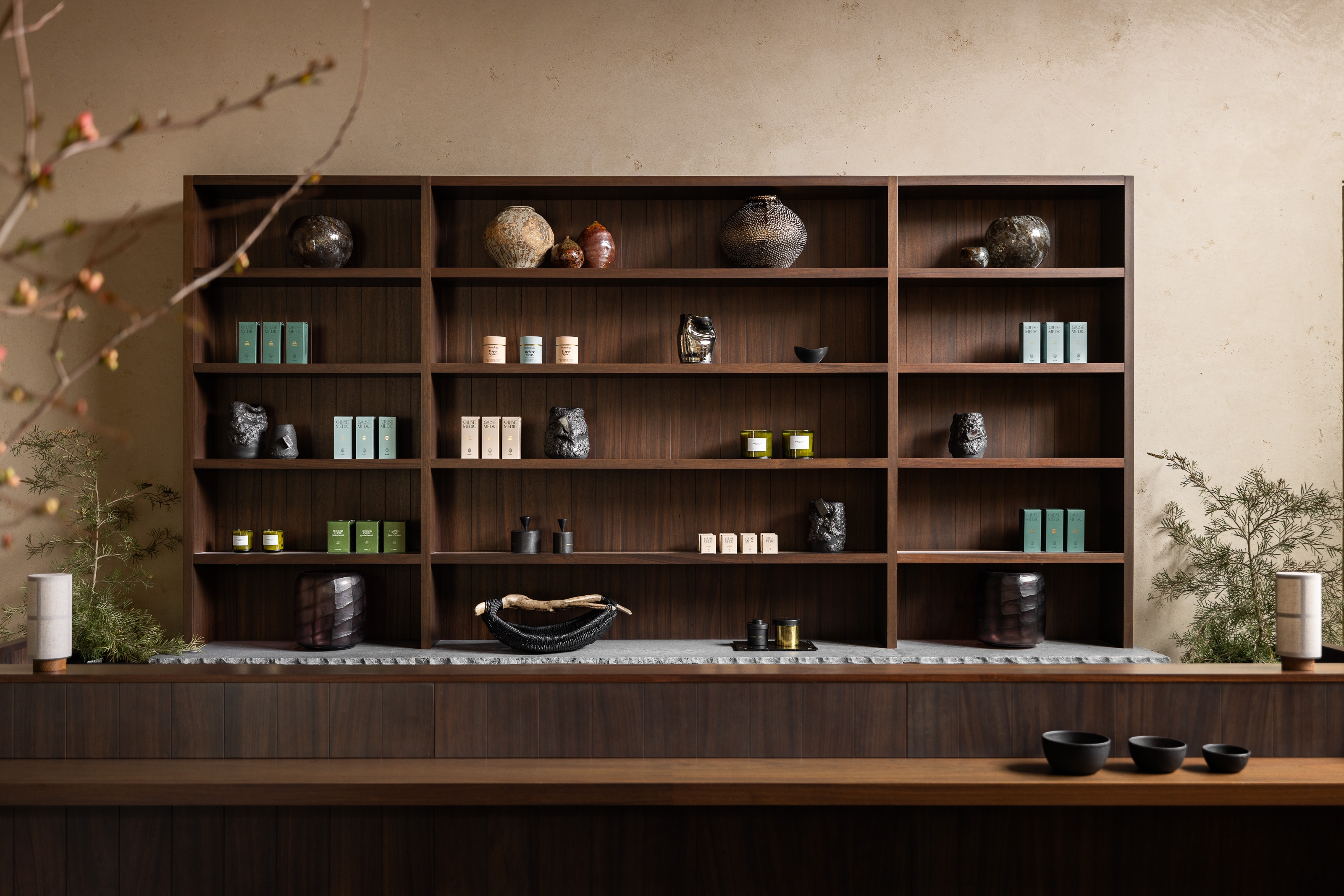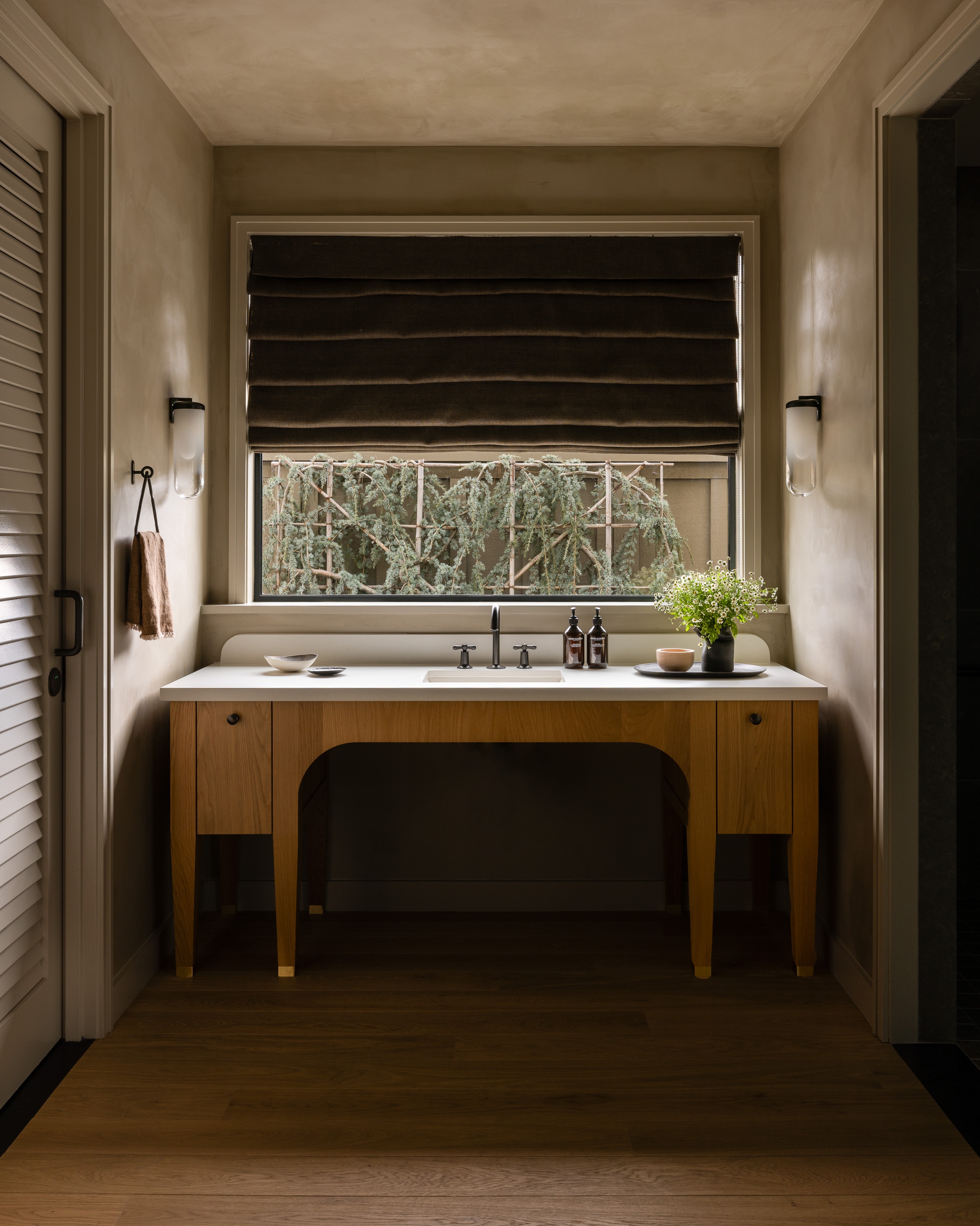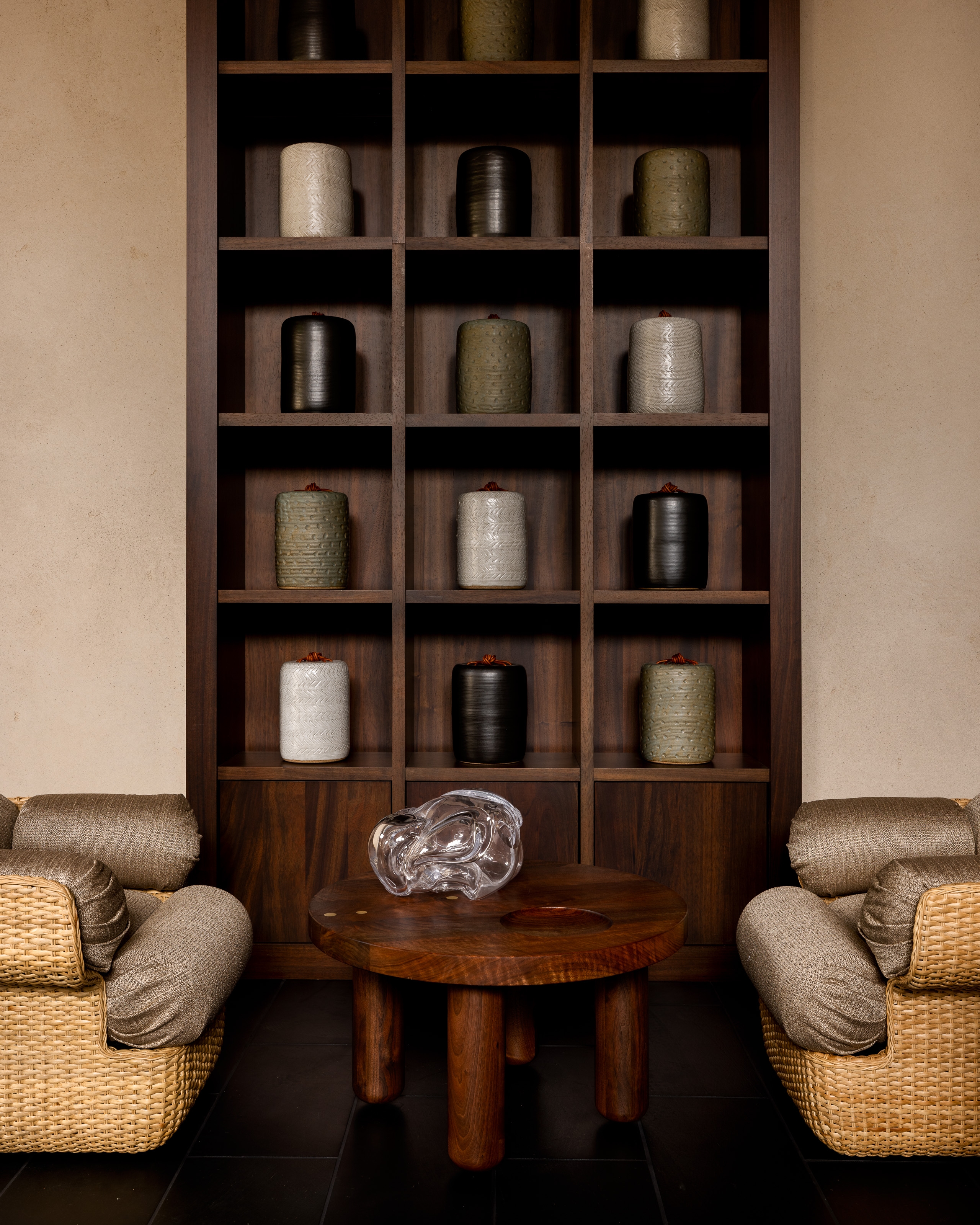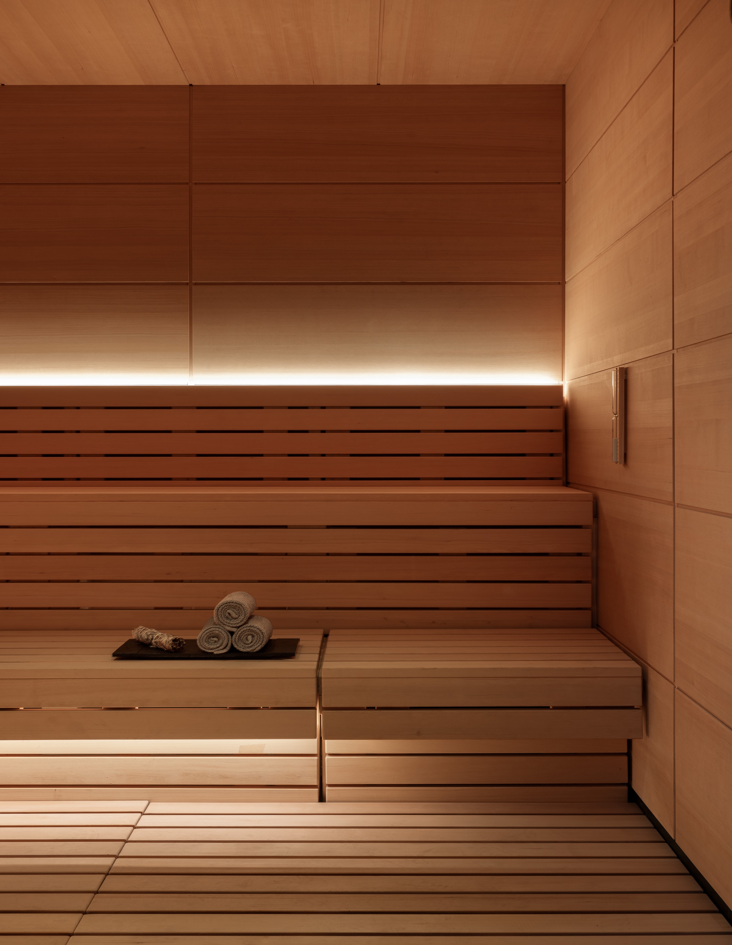 Rosewood Sand Hill’s Asaya Spa was reimagined as a serene wellness retreat nestled in the Santa Cruz Mountains. Inspired by the natural surroundings, the design incorporates rich wood, chiseled stone, woven rattan, and textured textiles to create a grounded, organic atmosphere. The refreshed reception features textured plaster, custom millwork, and a central linen pendant for warmth. Local artists were commissioned to create ceramic and sculptural works, including a terracotta tile installation inspired by atmospheric rivers and lumen prints from expired flora. The manicure/pedicure salon highlights slatted wood, shou sugi ban details, and handcrafted finishes. Locker rooms were transformed with dark basalt floors, limestone showers, a Finnish sauna, and steam room. Treatment areas feature lime wash plaster, oak floors, and concealed millwork for a calming, minimalist aesthetic. Outdoor spaces were enhanced with local flora, bold tile, and custom seating. The overall design prioritizes sustainability, artistry, and connection to place.