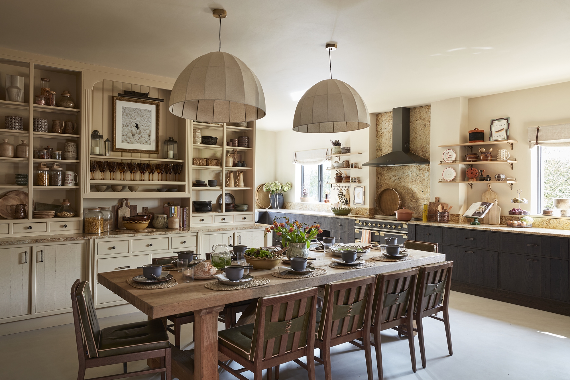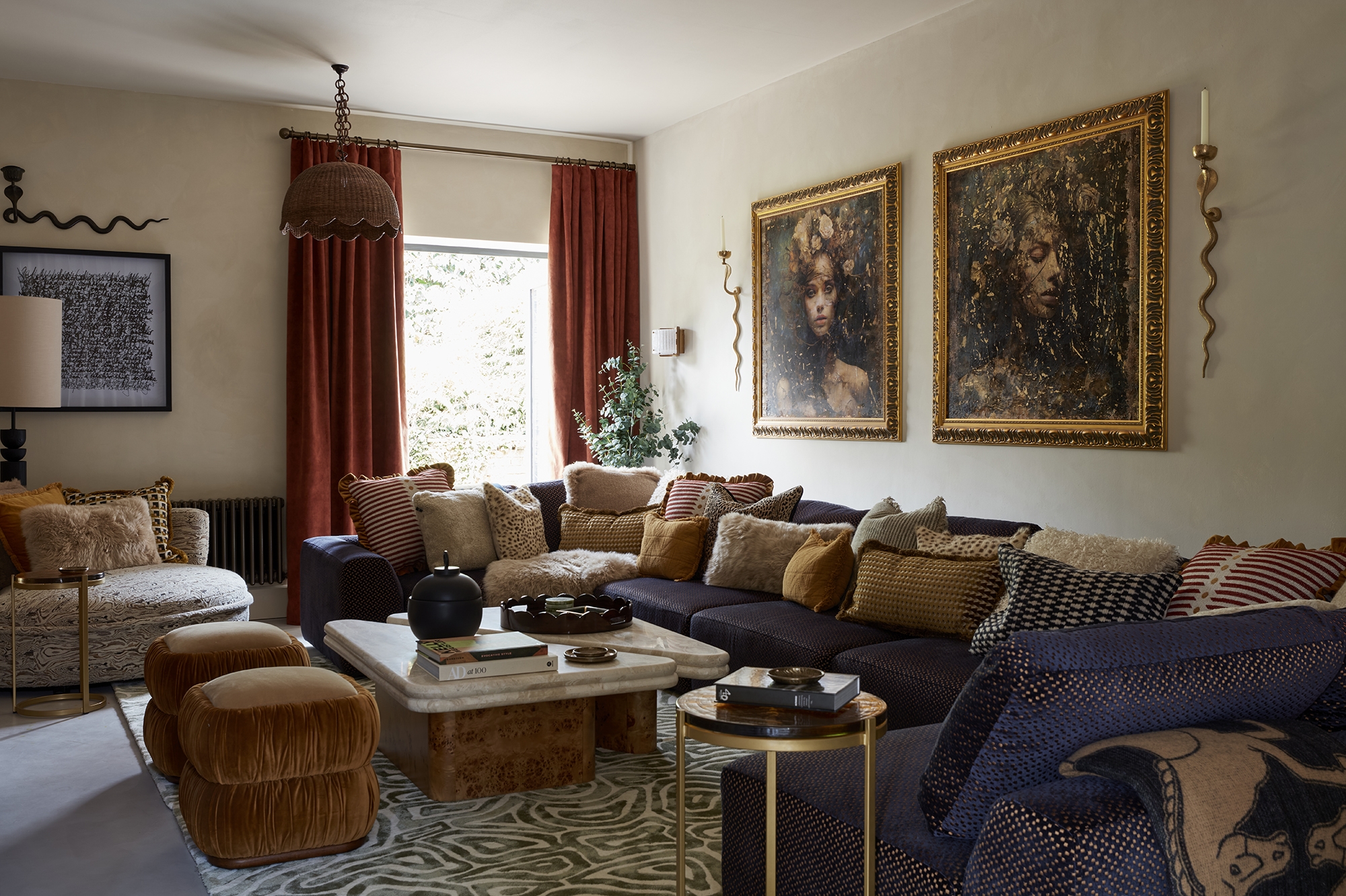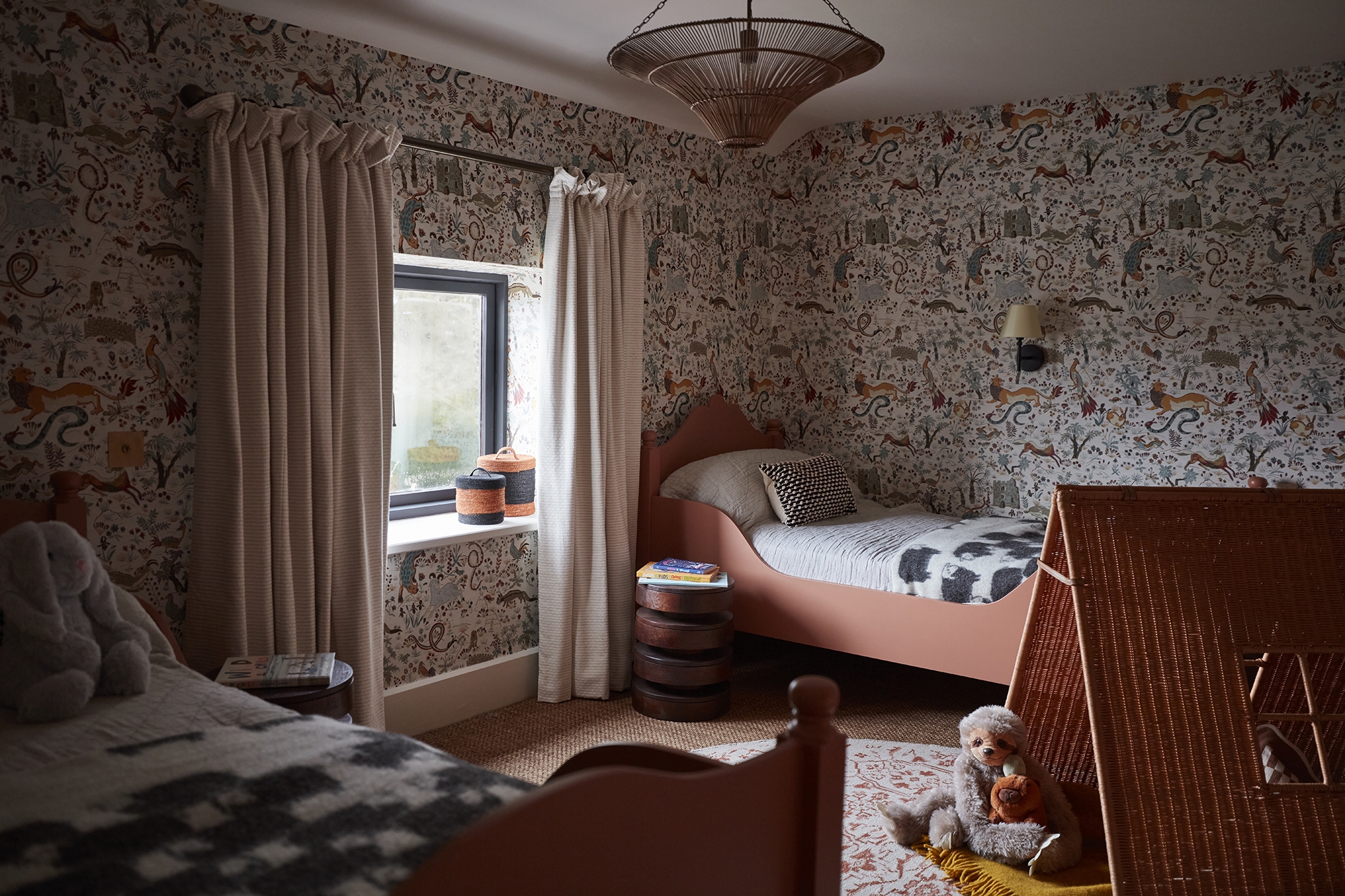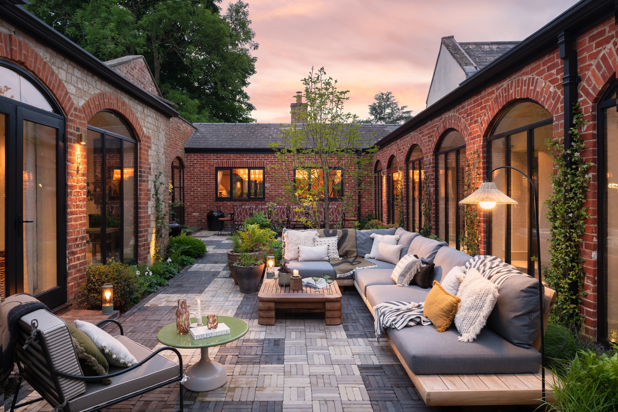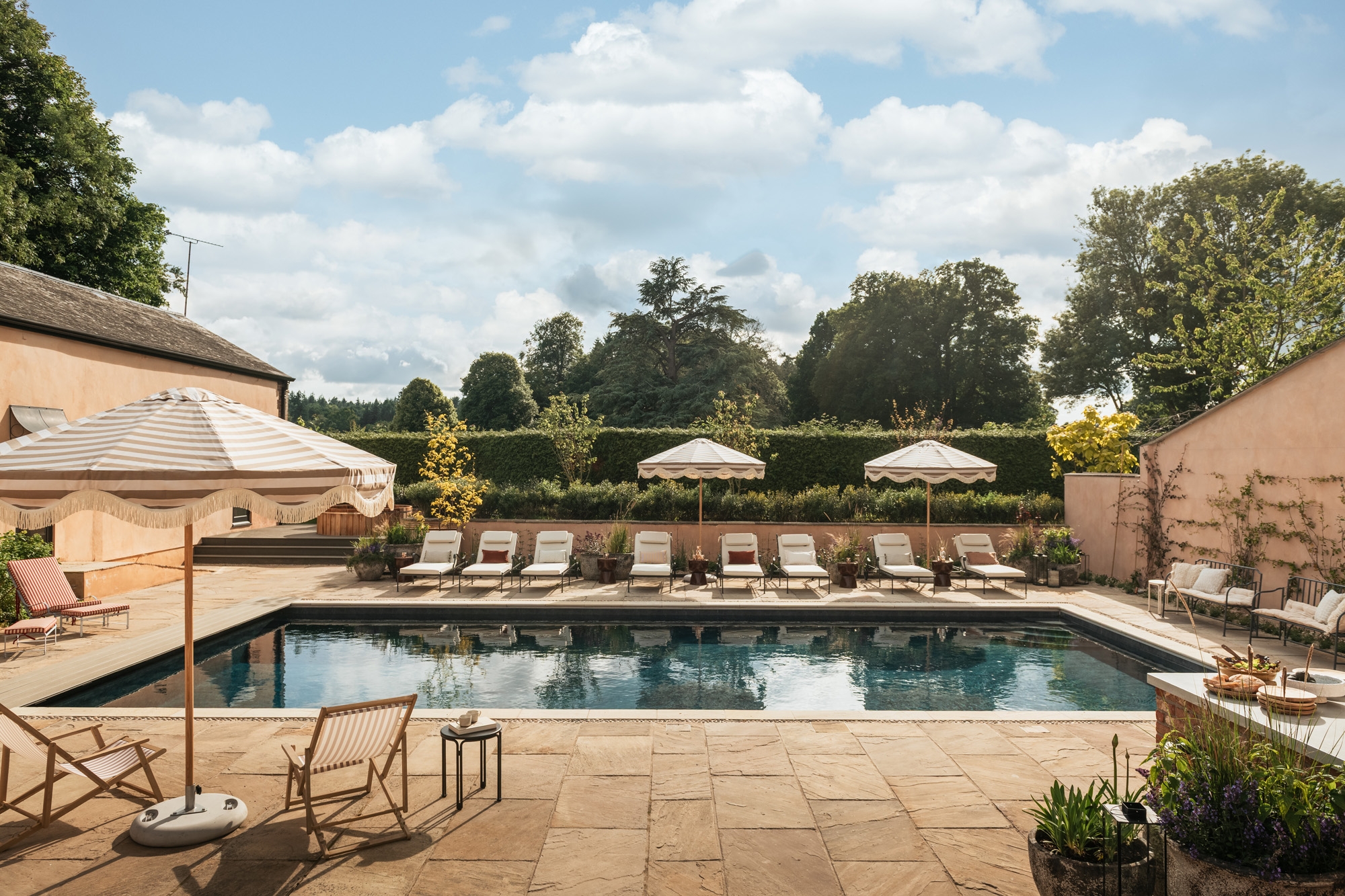 A soulful countryside retreat reinvented from a Victorian stable block in the UK's rural Wiltshire. Created for large family gatherings, celebratory weekends and memory-making escapes. Interior designed to wrap its arms around you, with tactile, layered spaces full of warmth, character and playful charm. The vast kitchen and 24-seat group dining hall set the scene for feasting and connection, while the cinema snug, courtyard terraces and lounges offer quieter retreat. Every bedroom, family suite and bathroom is designed differently, for an eclectic guest discovery experience. Limewashed walls and vintage wallpapers, bespoke beds, chaises and banquettes in velvet, leather and timber. Artisan tiles, charred-timber cabinetry, hand-forged hardware, custom rugs and decorative lighting add richness and storytelling throughout. A soulful, design-led country retreat blending laid-back luxury, crafted detail and the spirit of togetherness. Designed to be accessible, with a raspberry bunk-bed room and child-friendly inner courtyard. Elsewhere, a tennis court, swimming pool, outdoor kitchen, hot tub and 4 acres of gardens to play hide and seek in. Heartfelt nteriors from the inside out.