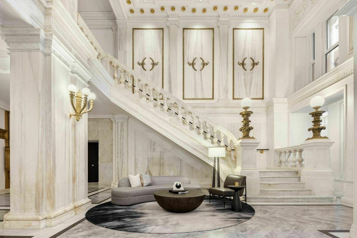 108 Leonard is an elegant, landmarked condominium conversion in Tribeca. Originally built in 1894, this McKim, Mead & White architectural masterpiece now contains more than 150 residences behind its meticulously restored Italian Renaissance Revival façade. The building’s grand scale, rich ornamentation, and historic proportions are paired with contemporary interiors.