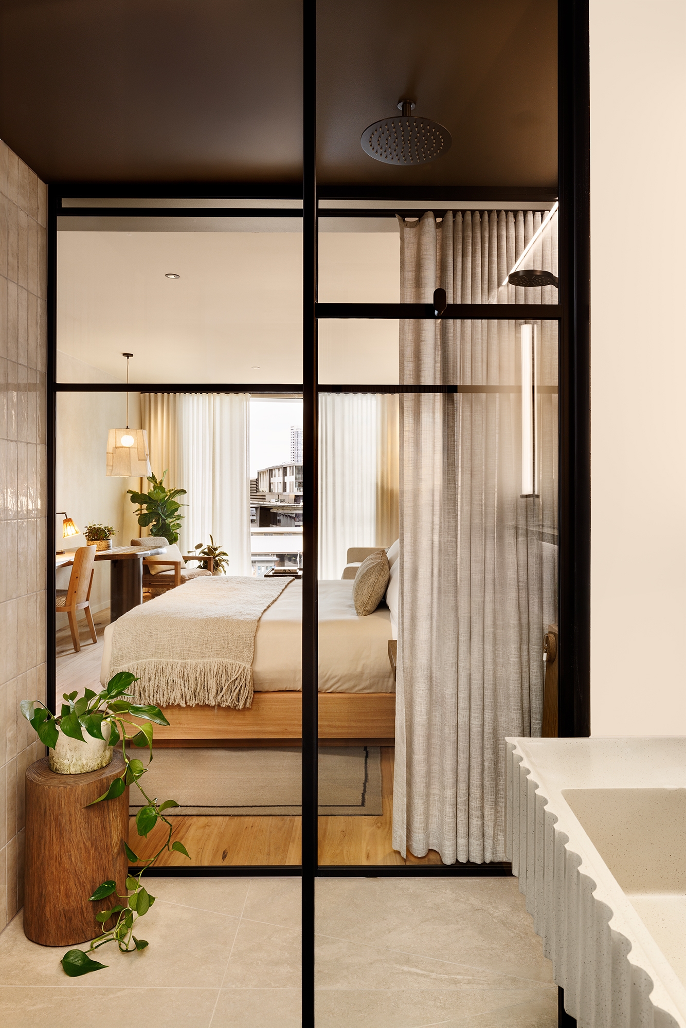 Spaces such as the arcade, Crane Bar & Lounge and its restaurant unfold as sensory journeys, combining greenery, reclaimed textures and daylight to evoke calm and connection. An art program throughout the hotel explores renewal, ecology and heritage, linking the Yarra’s story to its environment.