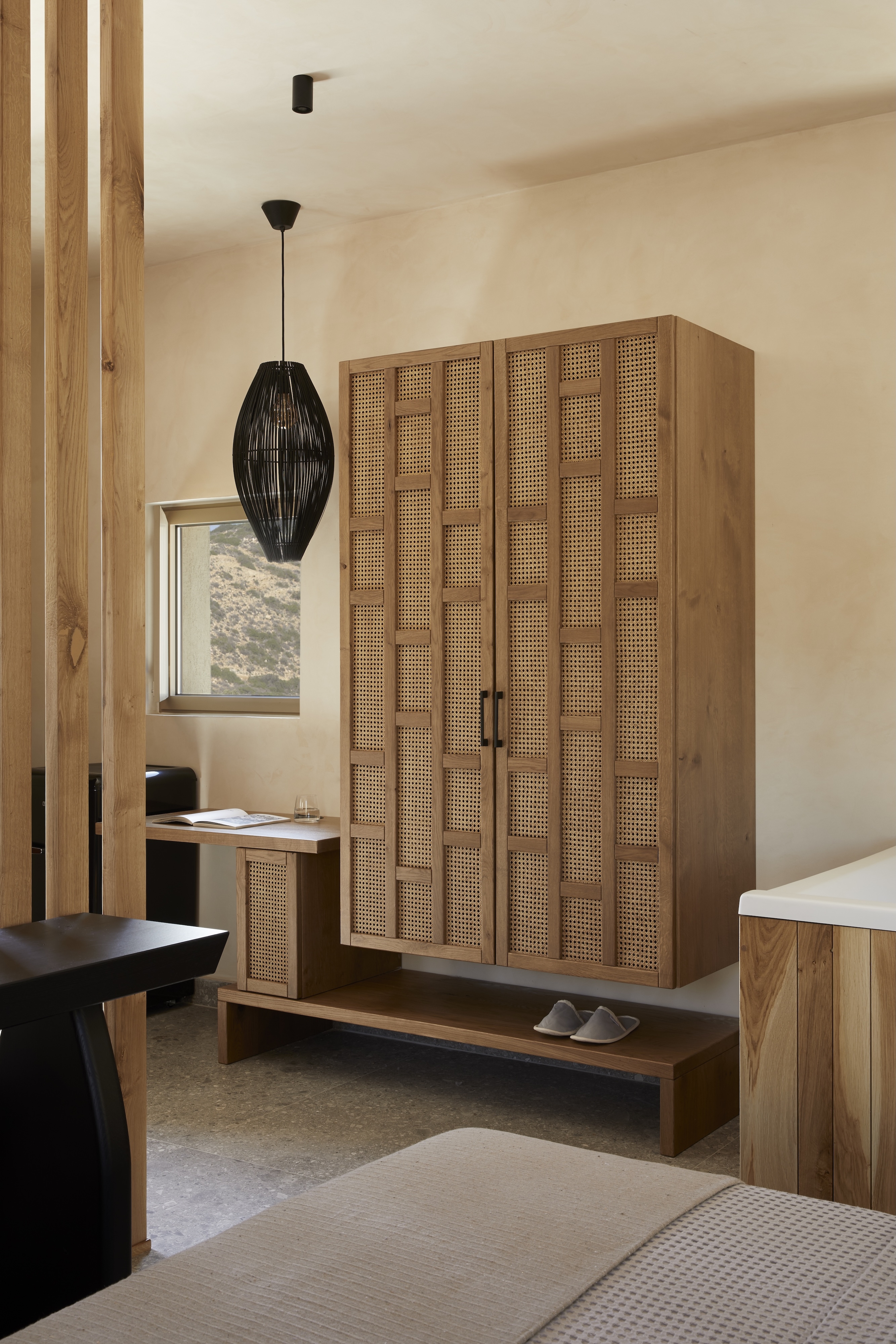 This contemporary hospitality project in southern Crete applies a wabi sabi–influenced design approach focused on refined simplicity and material honesty. The suites, conceived as coherent island homes, ensure architecture, interiors, and landscape adhere to one restrained, site-responsive language.