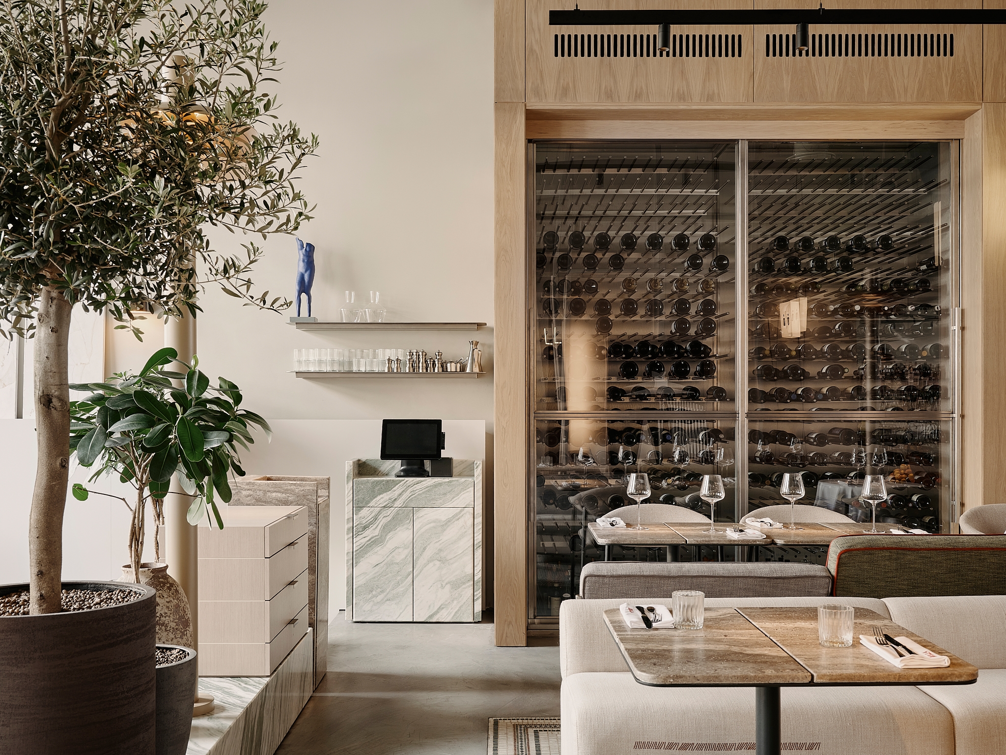 The name DI NULLA translates as “no problem!” — a phrase with a light, playful, and slightly cheeky spirit that lies at the heart of the concept and is reflected throughout the interior. DI NULLA is designed as an everyday place, free from formalities and dress codes, where guests can stop by for a solo breakfast, meet friends for lunch, or gather with family for dinner. What matters is not the occasion, but the feeling of ease and enjoyment.