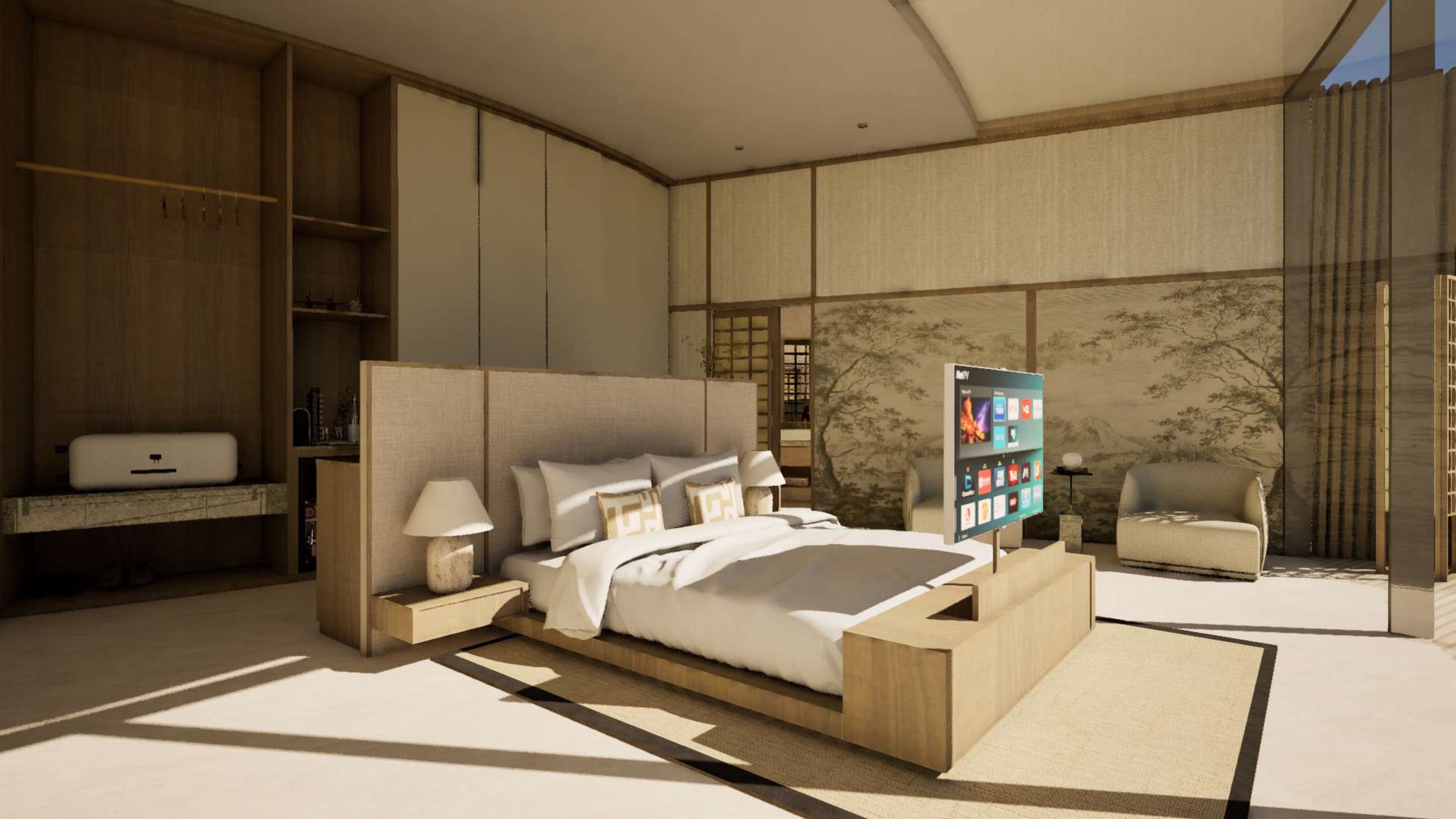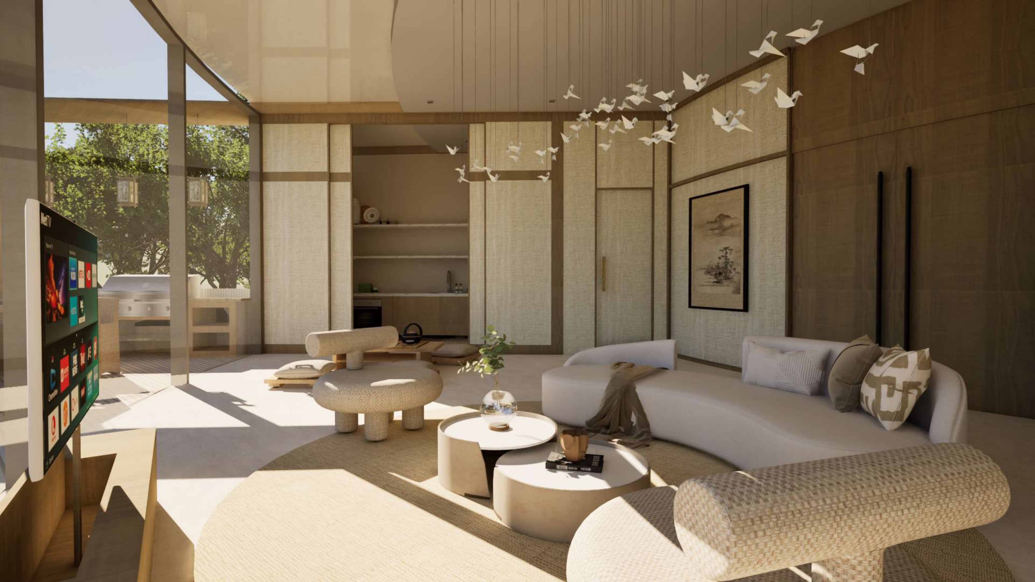 In a world reshaped by uncertainty, the need for spaces that adapt, nurture, and restore has never been more essential. Ogi Villas take their name from the Japanese folding fan, a symbol of elegance, movement, and change. Like the delicate gesture of opening a fan, these villas are designed to unfold with intention, offering guests a space that flows with their needs—quietly and gracefully. Inspired by traditional Japanese architecture and rituals, Ogi Villas fuse ancient wisdom with contemporary innovation. They are modular sanctuaries where each moment of the day can be curated: from slow mornings in a private outdoor onsen to focused work in a transformed living zone, to restful evenings surrounded by nature and soft light.