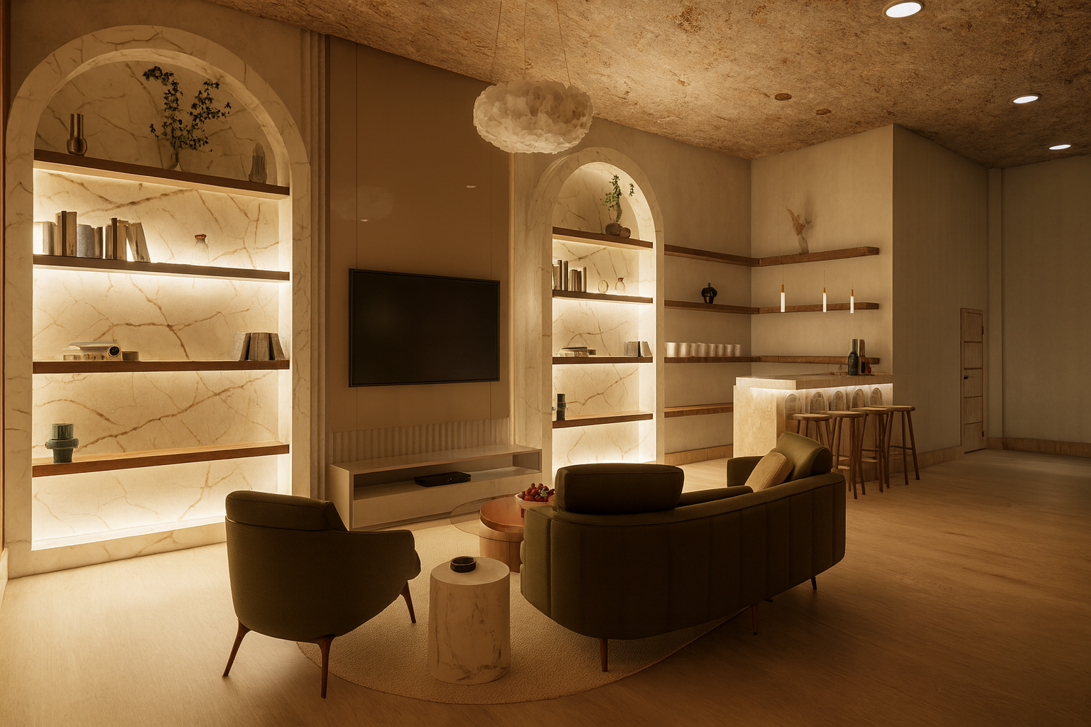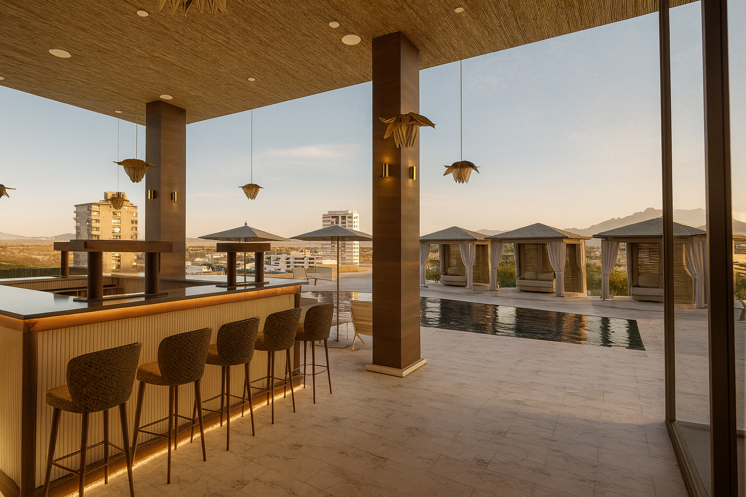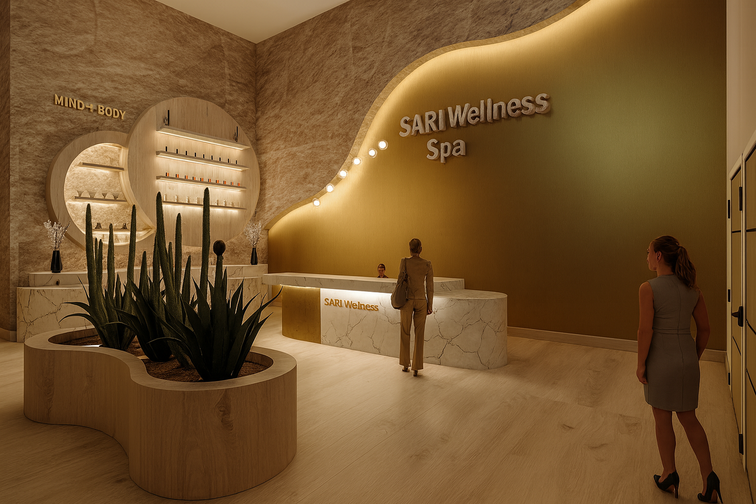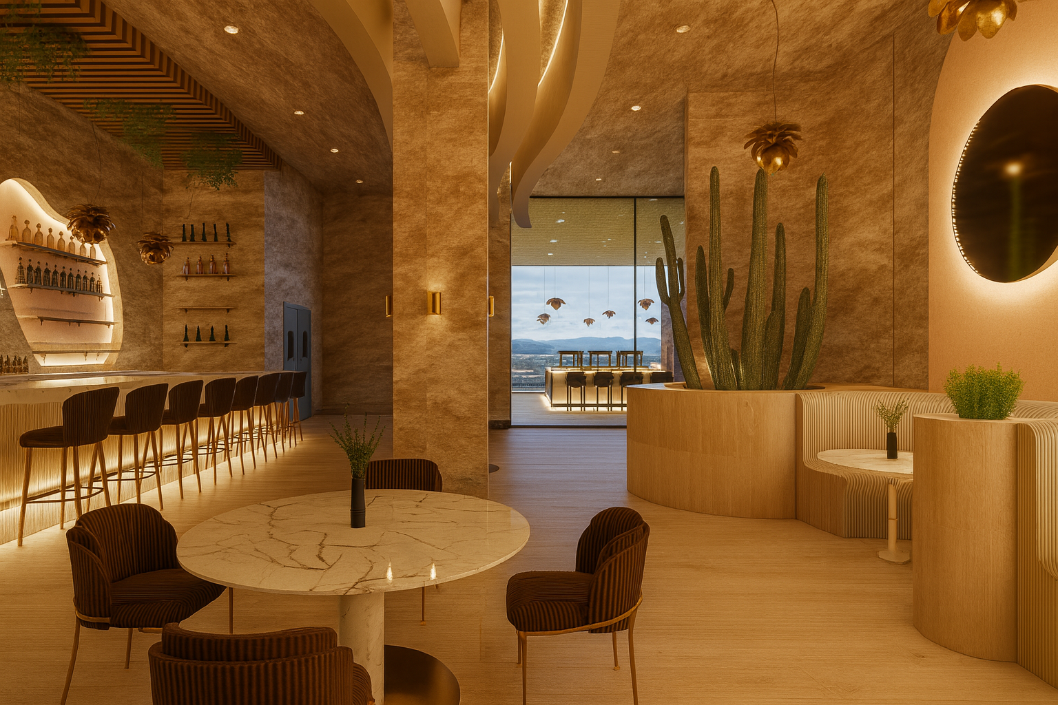 Le Désert Doré is a wellness focused luxury hospitality design located within the AC Marriott Hotel in Scottsdale, AZ. Inspired by French, Mediterranean, and Southwestern influences, the project creates a calm and restorative environment using natural light, warm desert tones, and organic materials.