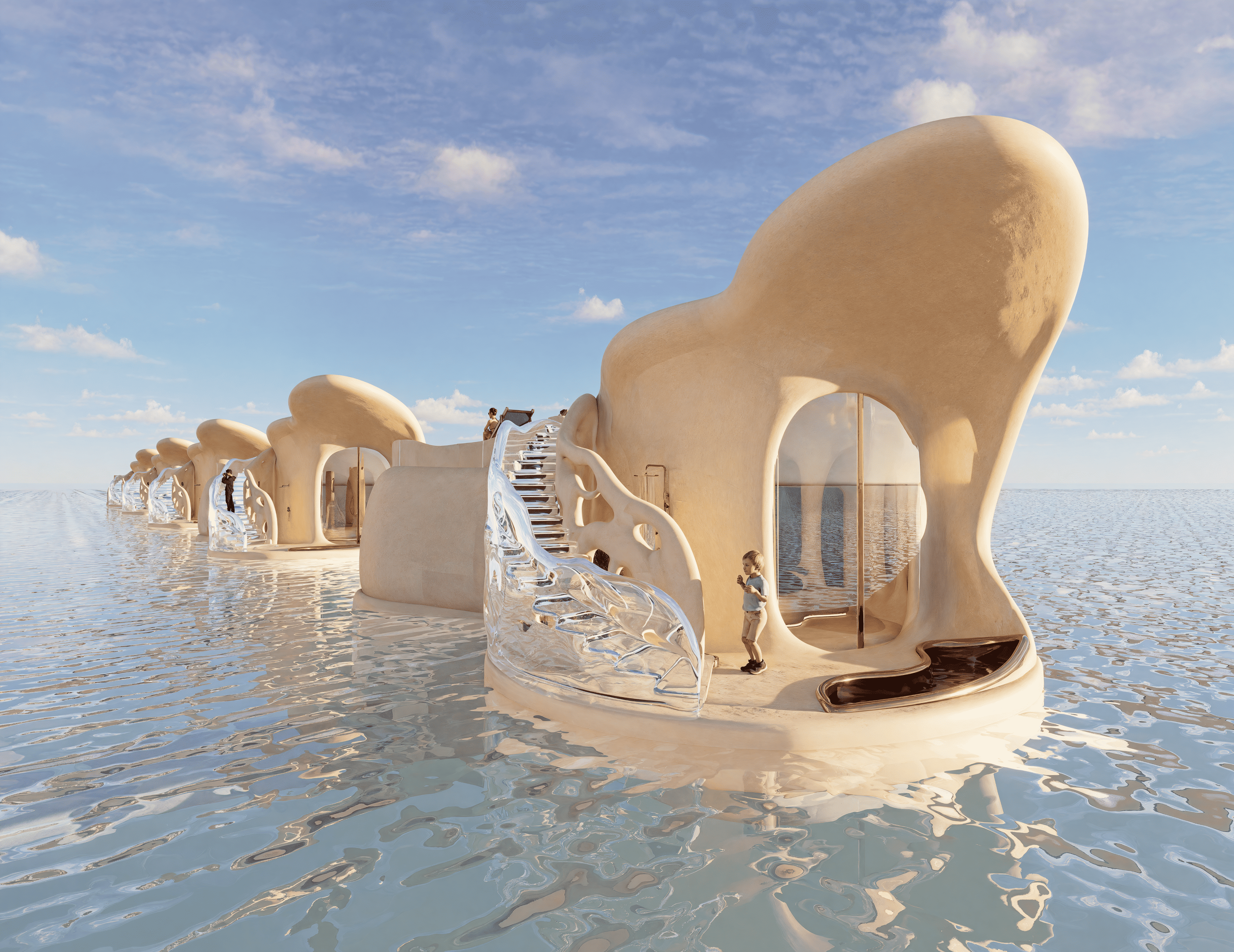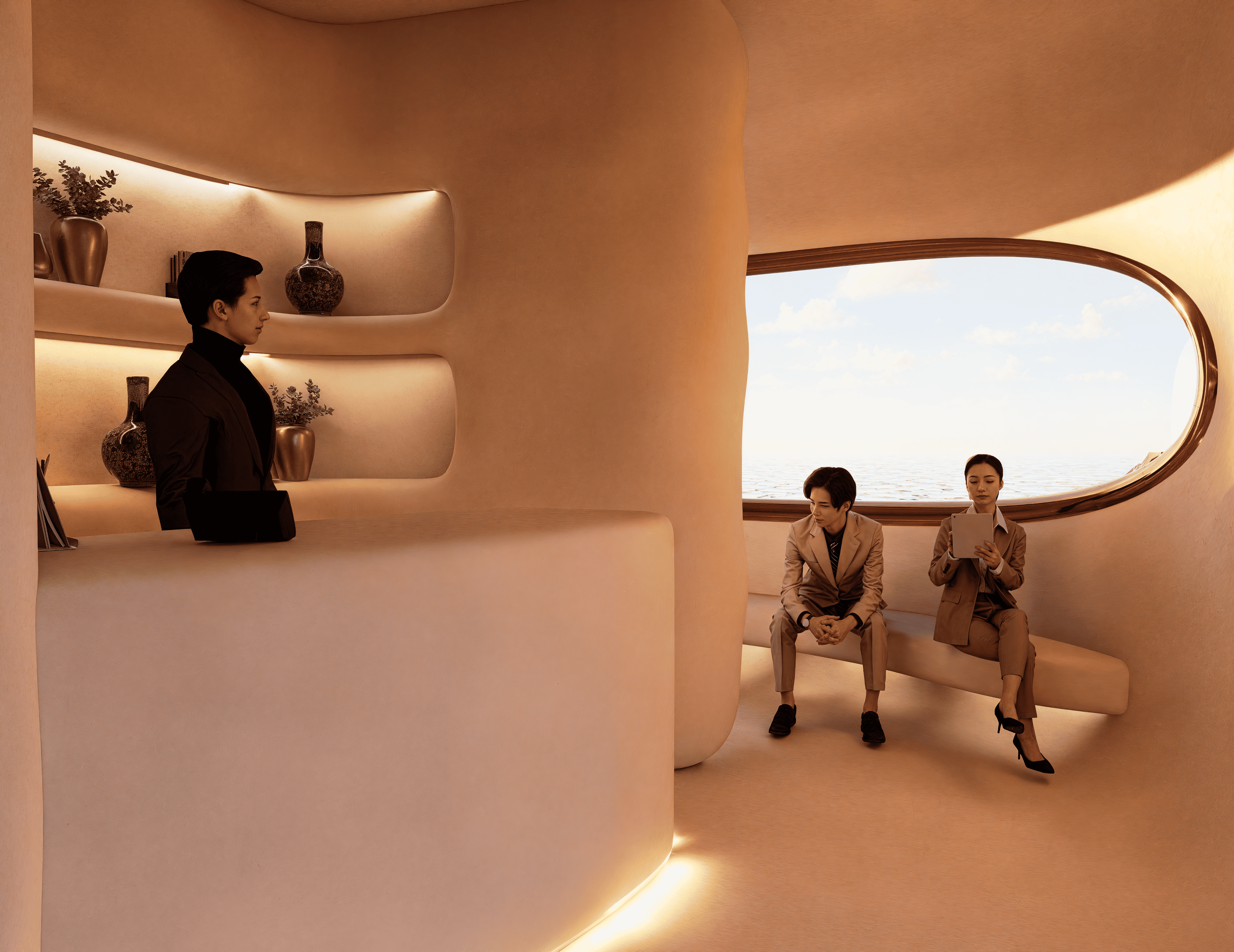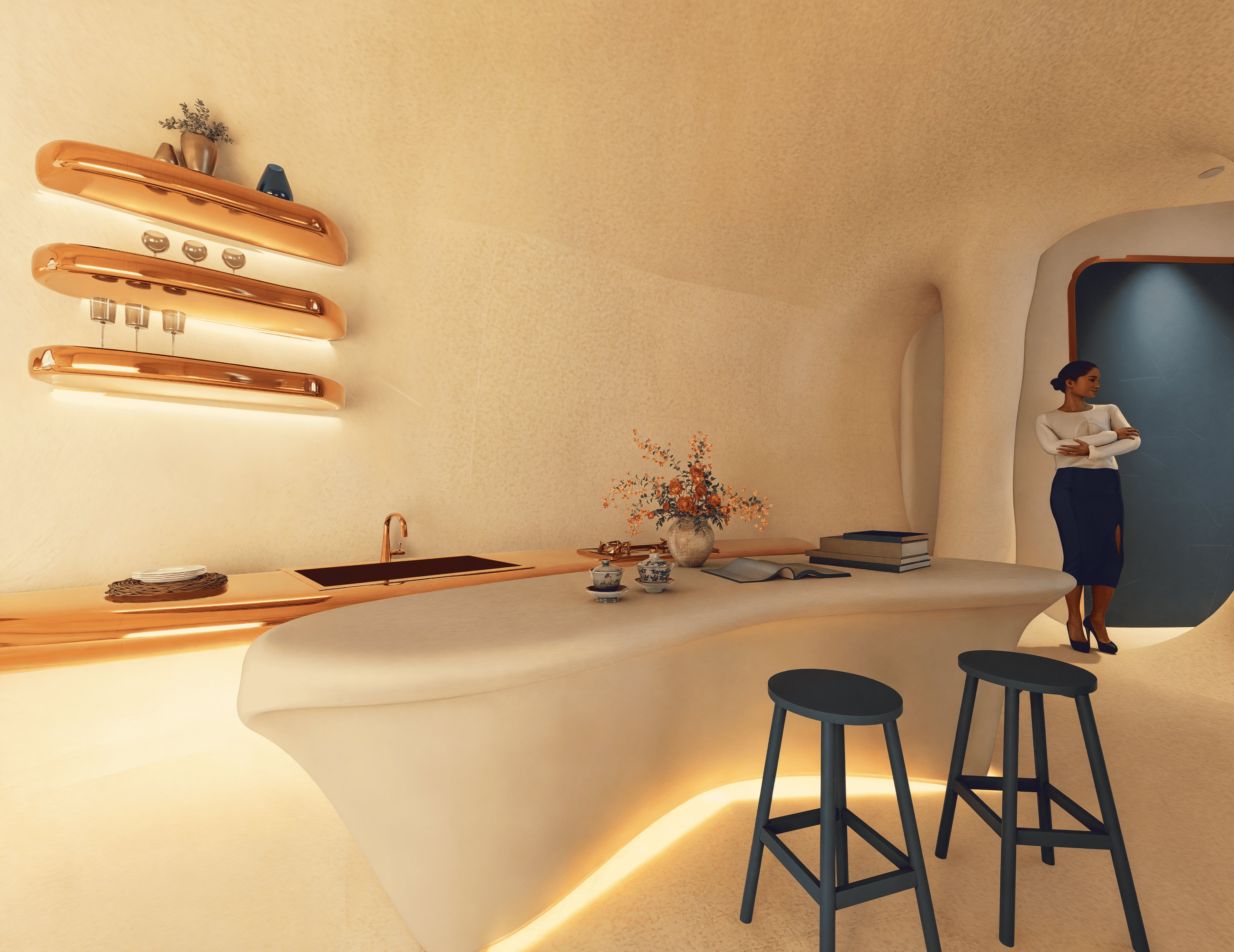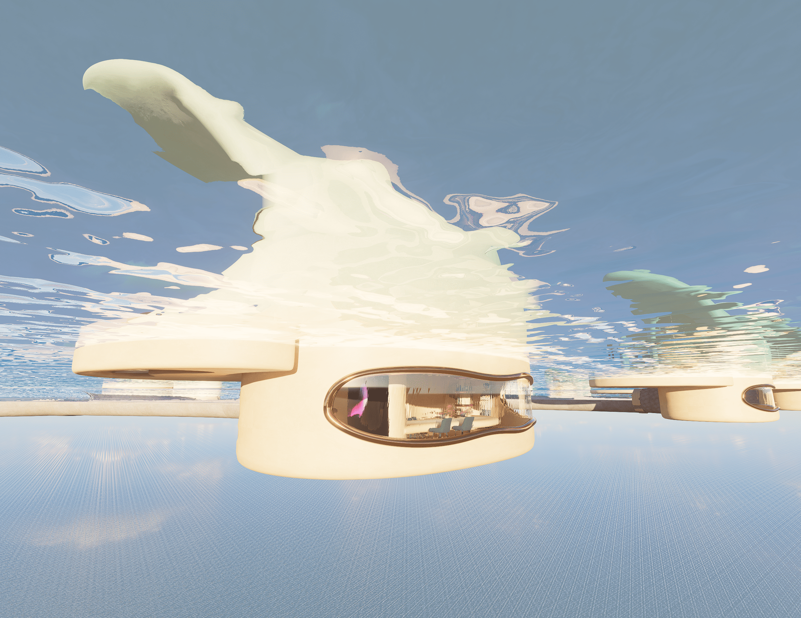 No two souls are alike—so why should two spaces be? “Eterna” is a redefinition of hospitality at sea, where every curve is carved not by hand, but by metaphor. Inspired by the timeless force of water, the design mimics how it shapes caves—eroding, sculpting, revealing. Guests descend into a world of intimacy through an underwater tunnel, echoing the path of flowing water. Each room becomes a personal cavern—raw yet refined, immersive yet grounded—offering tailored experiences through spatial rhythm, light play, and material tactility. From sensorial textures to sculptural lighting, the space flows like nature itself—curved, organic, and without corners—mirroring the erosion of time and water that carves every cave uniquely. Here, the suite is not merely a shelter but an extension of the guest’s inner world. Every room is entirely personalized—no two experiences are ever the same—because the architecture doesn’t just host you; it listens, adapts, and becomes you. Eterna invites guests to surrender to silence, fluidity, and the slow luxury of being seen—through a sustainable, soulful design that is timeless in spirit and boldly reimagines the future of immersive hospitality.