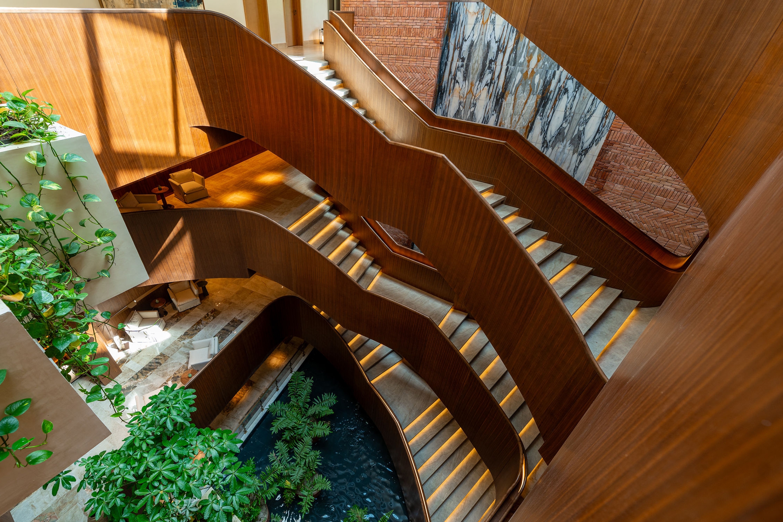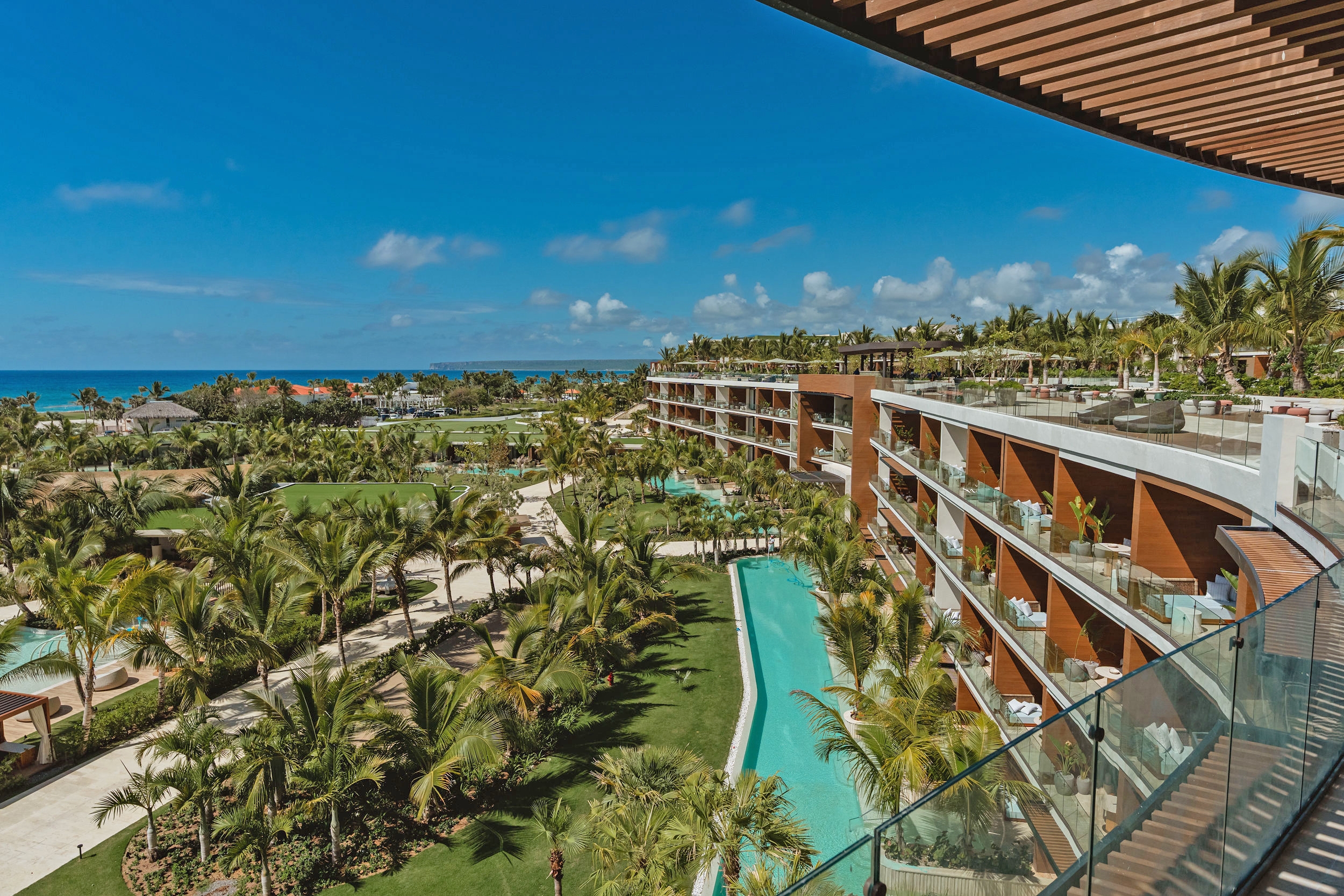 The St.Regis Cap Cana Resort redefines Caribbean luxury through a bold, context-driven design born from a bold and ambitious brief: to create an unprecedented resort experience in one of the most privileged and irreplicable coastal locations. Inspired by Jack Nicklaus’s Punta Espada Golf Course and the site’s natural geometry, the resort features a dogleg-shaped composition of staggered, angled volumes that seamlessly blend into the landscape using coral stone, wood, and travertine. With 200 rooms and 70 residences, the layout avoids conventional forms to enhance views, privacy, and immersion in nature. Interior gardens, skylights, and water features create fluid indoor-outdoor transitions, ensuring guests are constantly surrounded by light, greenery, and curated experiences. More than a resort, the architecture itself becomes the attraction—harmonizing with its environment while offering effortless access to pools, dining, wellness, and amenities.
