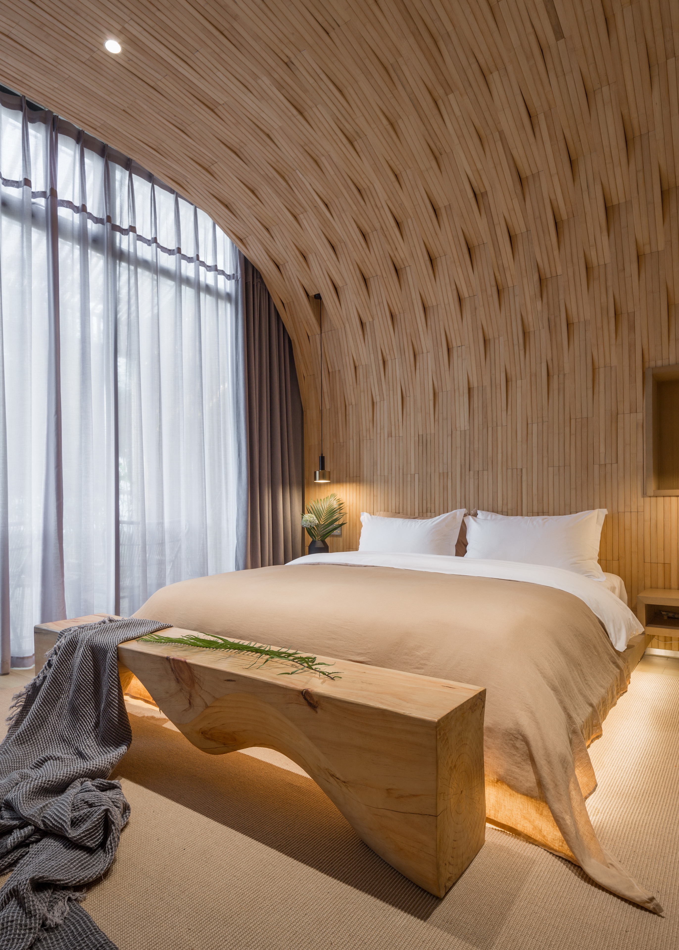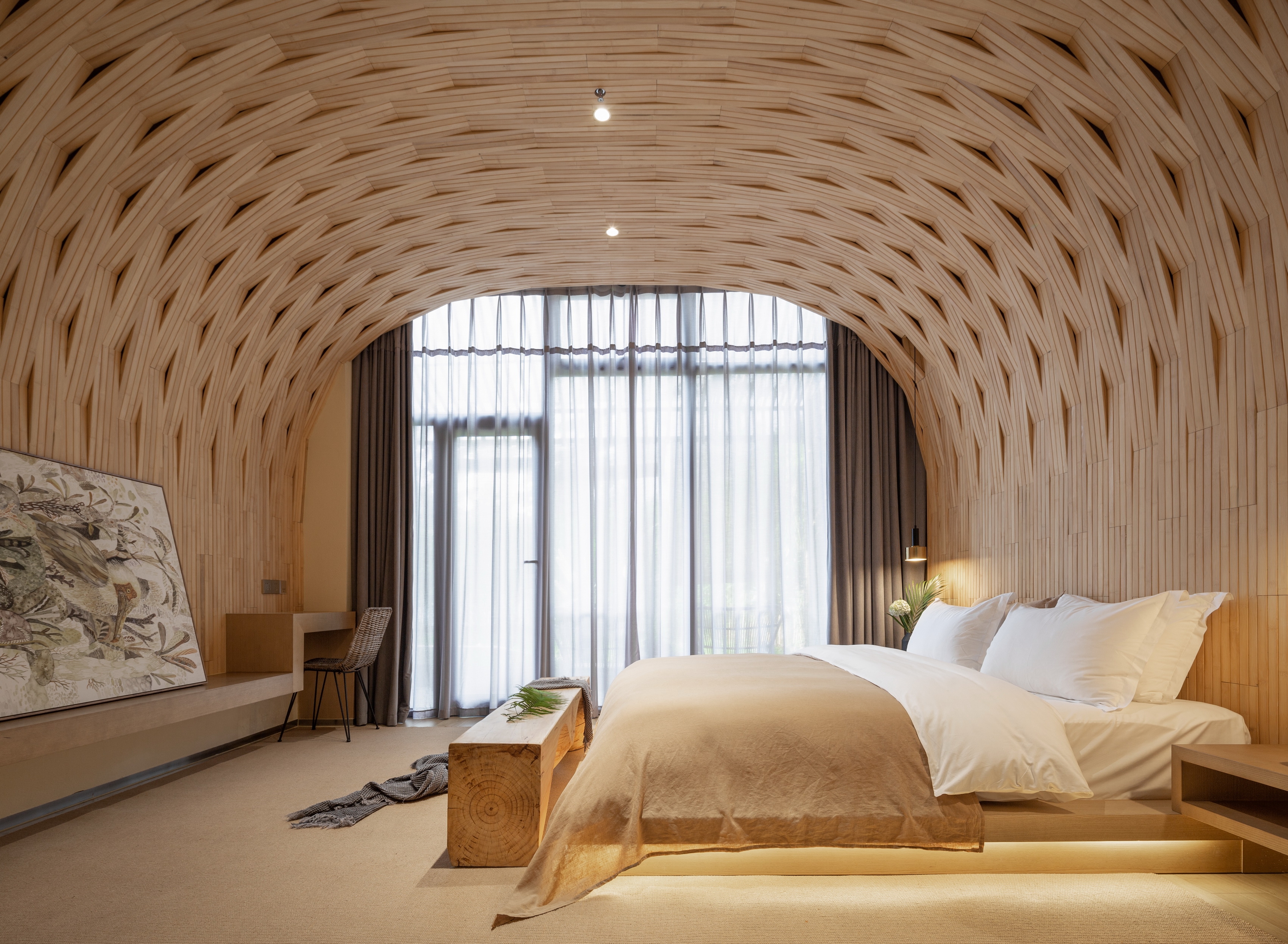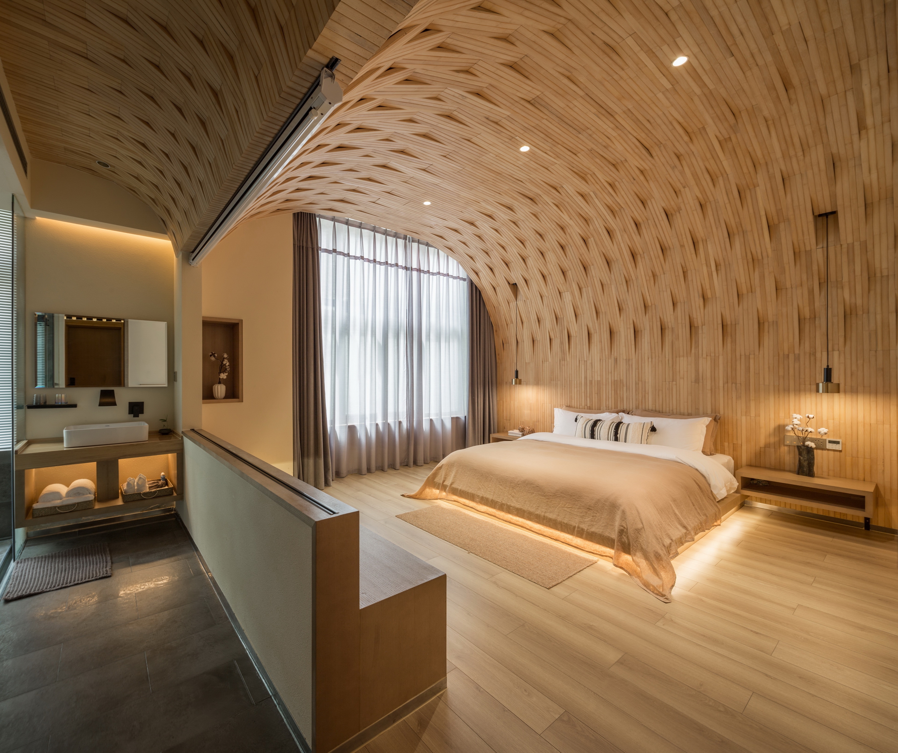 I plan to express space only through the different texture of bamboo. The interior of the room is made of bamboo strips, and bamboo skins, like building blocks, bamboo weaving is arched,forming the unique skin of each space. The top of the corridor is constructed with original bamboo, which is like shuttling through the time tunnel of bamboo forest. Bamboo weaving modeling of hall stairs and the the shadow of bamboo cast on the wall with the help of light forming a picture like the sunlight through the bamboo leaves in the bamboo forest.